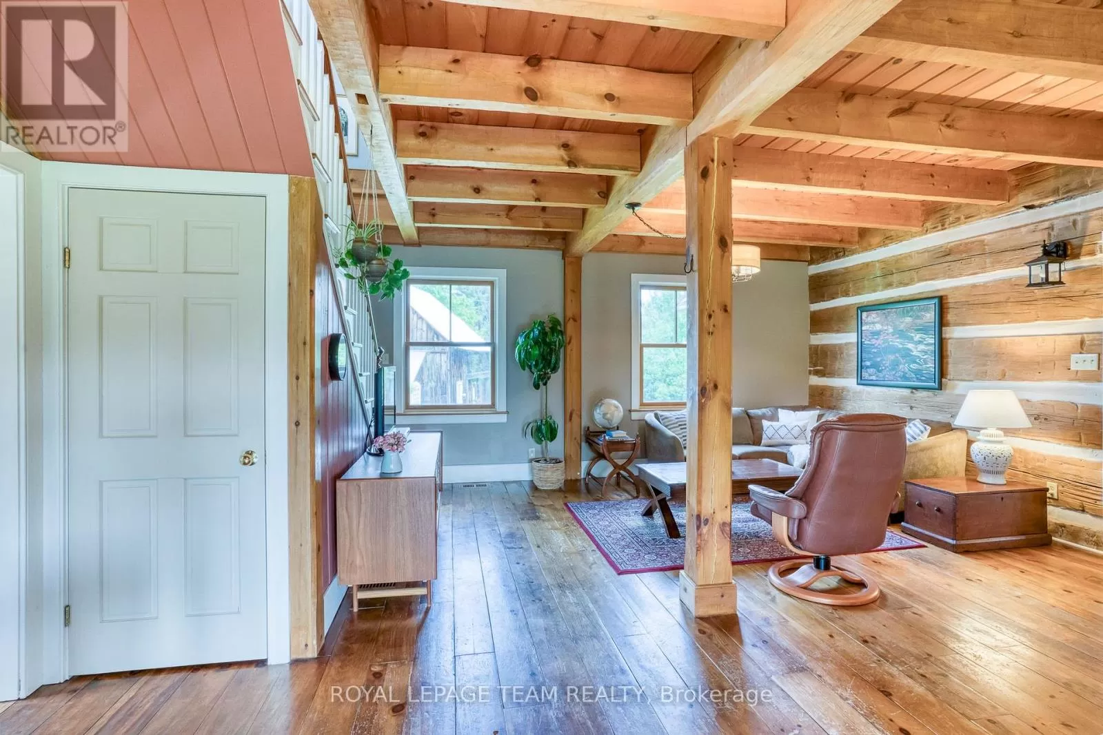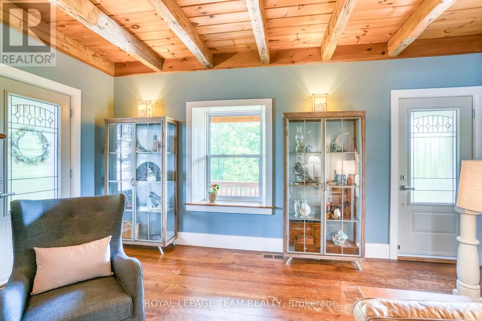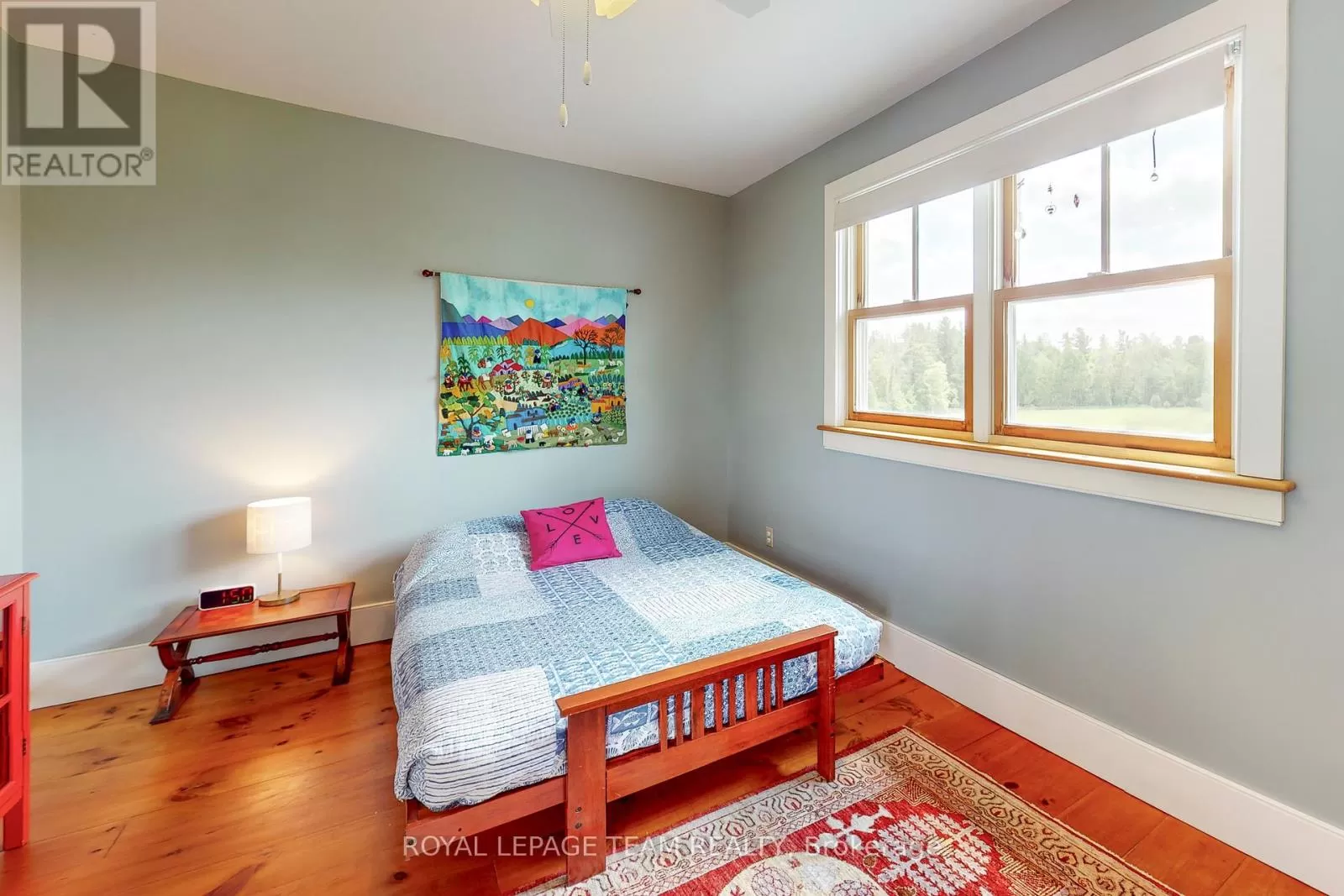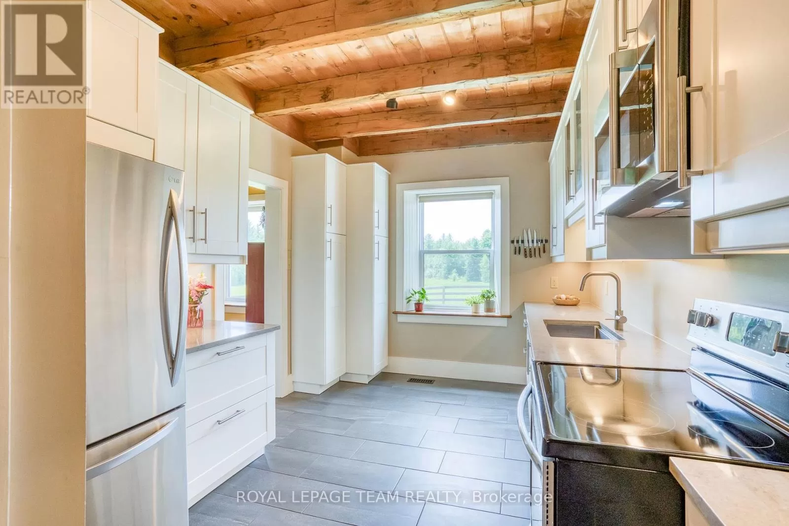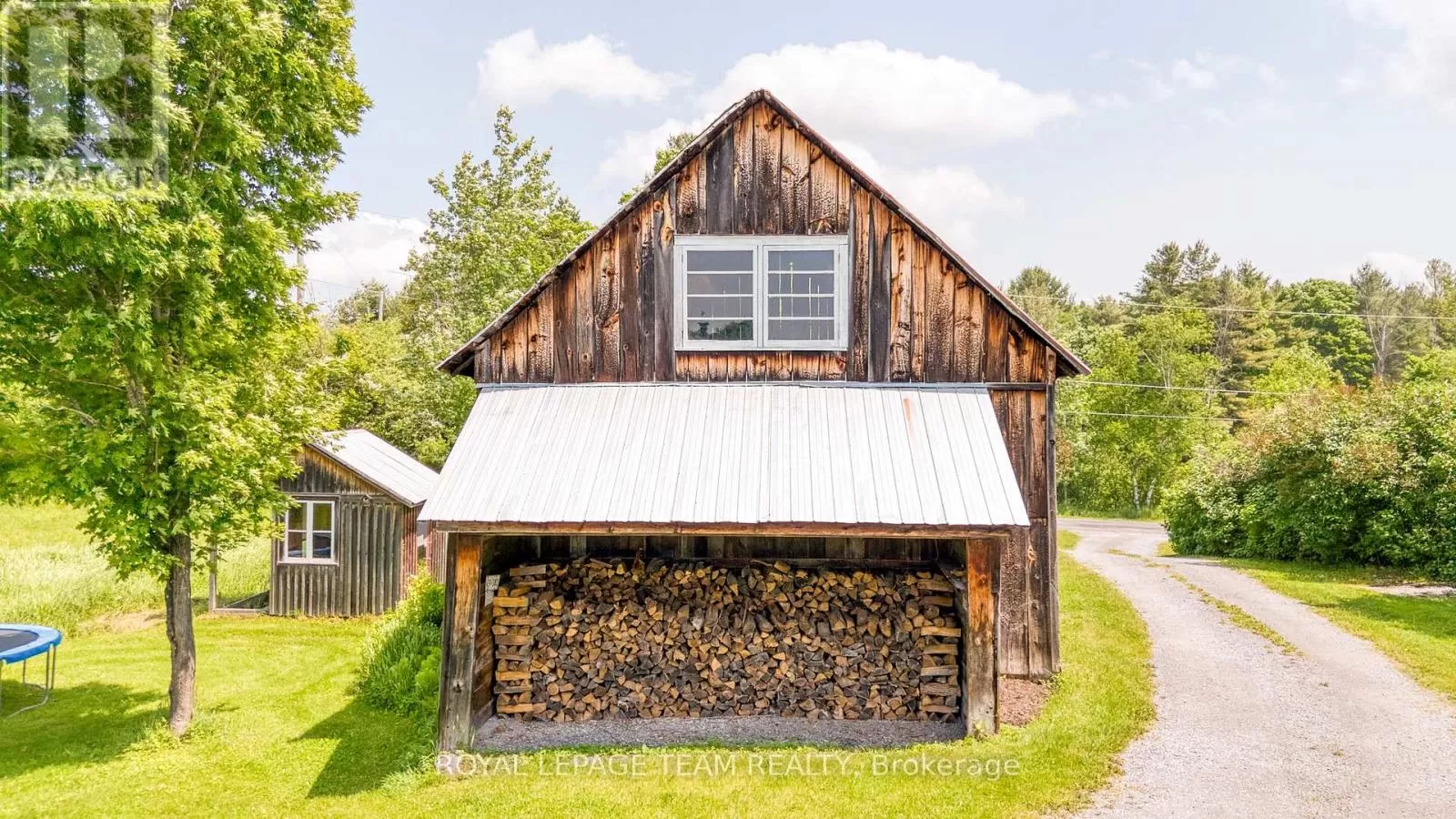 Cross Streets: Bellamy Mills rd and ramsay Con 3 C. ** Directions: Tatlock Rd to Bellamy Mills Rd then left ontl Ramsay Con 3 CM. ONE OF A KIND WITH INSTANT CURB APPEAL SET ON 94 ACRES!! Originally an 1800s farmhouse which was dismantled & meticulously rebuilt + an addition in the 1990s. You will be impressed with the charm and character plus the quality upgrades. The handy mudroom/foyer with tile floor is the ideal place to greet family & friends. Recently updated kitchen is complete with quartz counters and tile floors + a sunny window overlooking your backyard. Both the dining room & living room have wide plank floors & beamed ceilings. From the living room you have direct access to your wrap around veranda. The perfect place to have your morning coffee & listen to the birds!! The family room showcases an exposed log wall, wide plank floors & a cozy wood stove. From the family room you have direct access to your sun room offering a peaceful relaxing view overlooking your back fields. A handy two-piece bathroom is conveniently located on the main floor. Upstairs you will find three spacious bedrooms with pine floors The primary bedroom offers a walk-in closet. With Fiber Internet & the office area it is an ideal place for those that work from home. Modern 5-piece bathroom with double sinks, a soaker tub & a separate shower stall. Excellent out bldgs including two separate detached garages both offering extra storage space & room for your special projects & hobbies. Oh and don't forget the fresh eggs from your own chicken coop!! The acreage offers the perfect combination of open fields, forest and even a pond next to the house! You will have year-round enjoyment with hiking & 4-wheeling in the summer, cross-country skiing, snowshoeing & snowmobiling in the winter. Recent upgrades roof, furnace and wood stove 2016, windows 2018, two doors 2019, kitchen and both bathrooms 2021, veranda 2023. Utilities hydro approx $190/mo, propane approx $190/mo, wood 3 chords/yr. Located on a peaceful country road with easy access. 15 min to Almonte, 1 hr to downtown Ottawa, min to Clayton General Store. (id:27476)