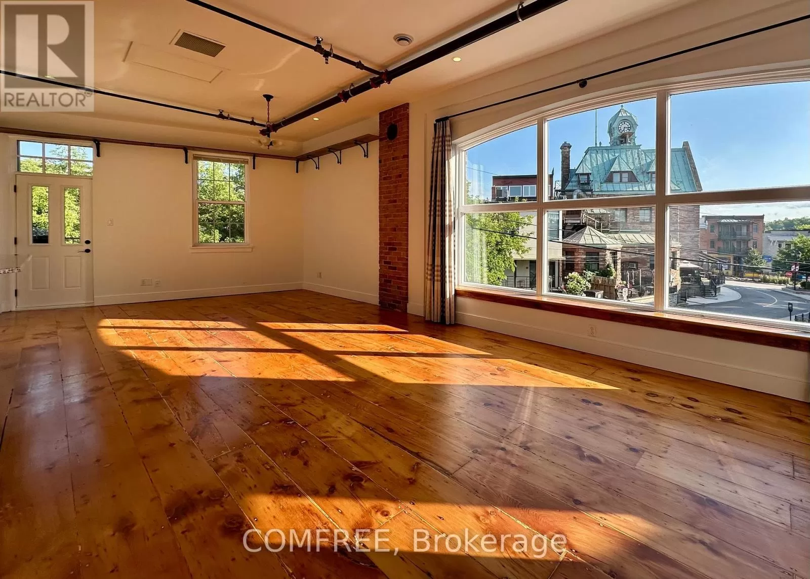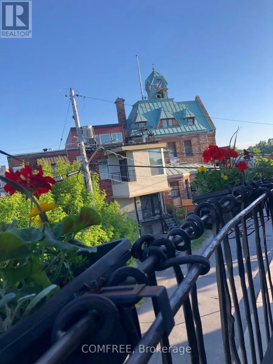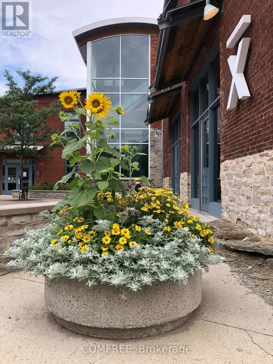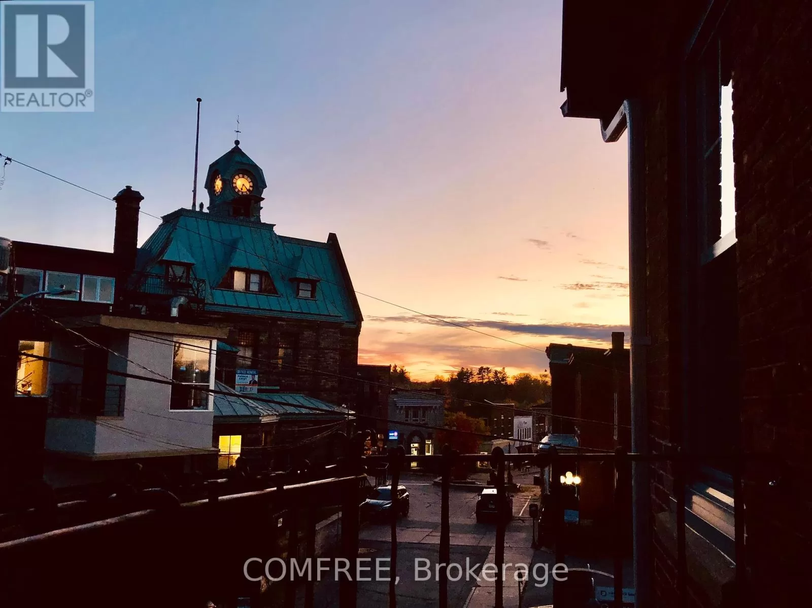 Cross Streets: Mills St and Bridge St. ** Directions: see map. This gorgeous second storey condo unit at Thoburn Mill is your new home in the heart of historic downtown Almonte.Massive panoramic living-room window overlooks shops, restaurants & cafes. Light-filled primary bedroom and guest room offer inspiring views of 19th century architecture. Granite kitchen counters, heritage pine floors and exposed brick walls. 10 ft. ceilings. Large welcoming foyer with another panoramic window overlooking downtown. Artistic wrought iron balcony overlooking Little Bridge Street for morning coffee and people watching. Primary bedroom with Juliette balcony overlooking trees, recreation trail and Mississippi River Concerts and plays around the corner. Waterfront pub and picturesque riverwalk out the condo's back door. Outdoor bike racks. Dock your kayaks next to the building. Dedicated outdoor parking. Mature building, pet-friendly, great for a retired single or a working / retired couple. The unit has a guest room, and an office/craft room with its own key-code door beside primary bedroom. Condo corporation has ample reserve fund and no history of "special assessments". Water, and gas (which powers stove, on-demand water heater and rooftop furnace/air conditioner) utilities are included in condo fees. There is an inside lift up to second level of building at front entrance, then it's a few steps up to unit 200 from the lift. The unit is currently unoccupied and freshly painted in gallery white so you can move in at any time. Carefree urban lifestyle in a culturally rich heritage-designated Ottawa Valley setting that's a 20-minute drive to Kanata and a 35-minute drive to Ottawa, or don't drive at all and walk (or cycle, or paddle) to everything you need! (id:27476)