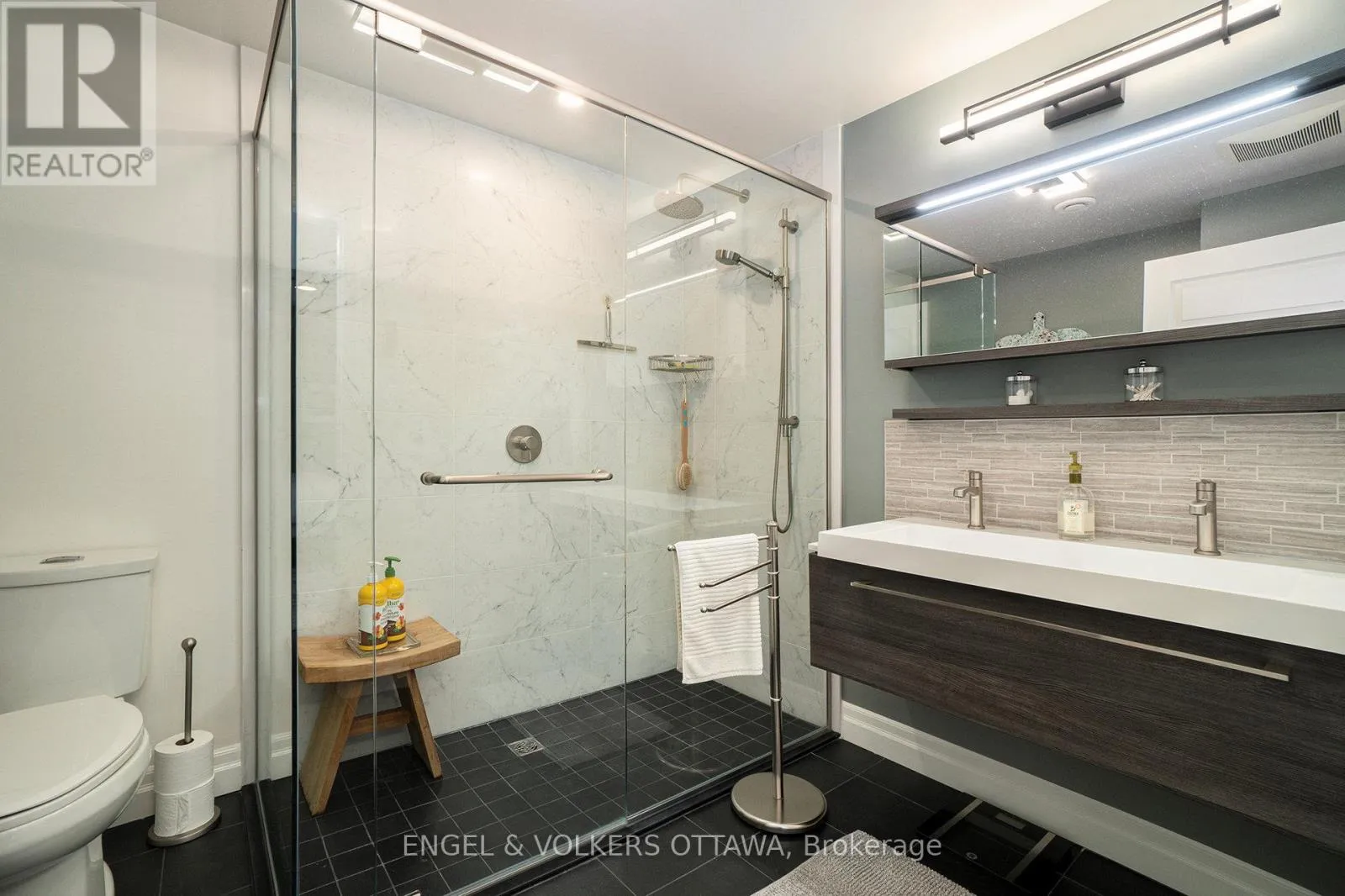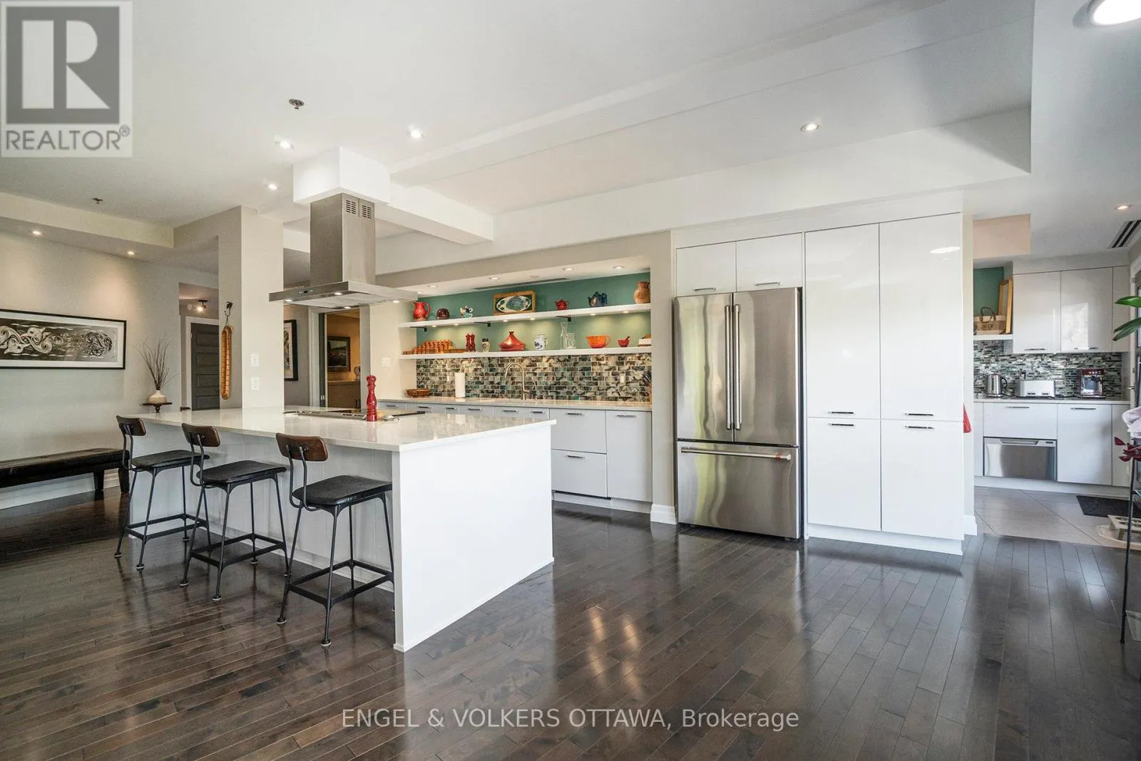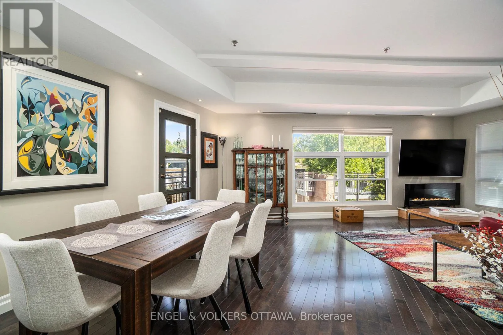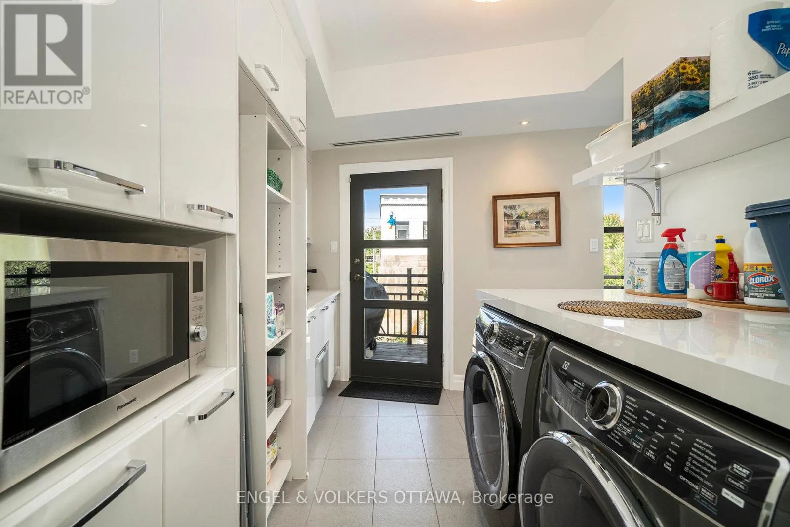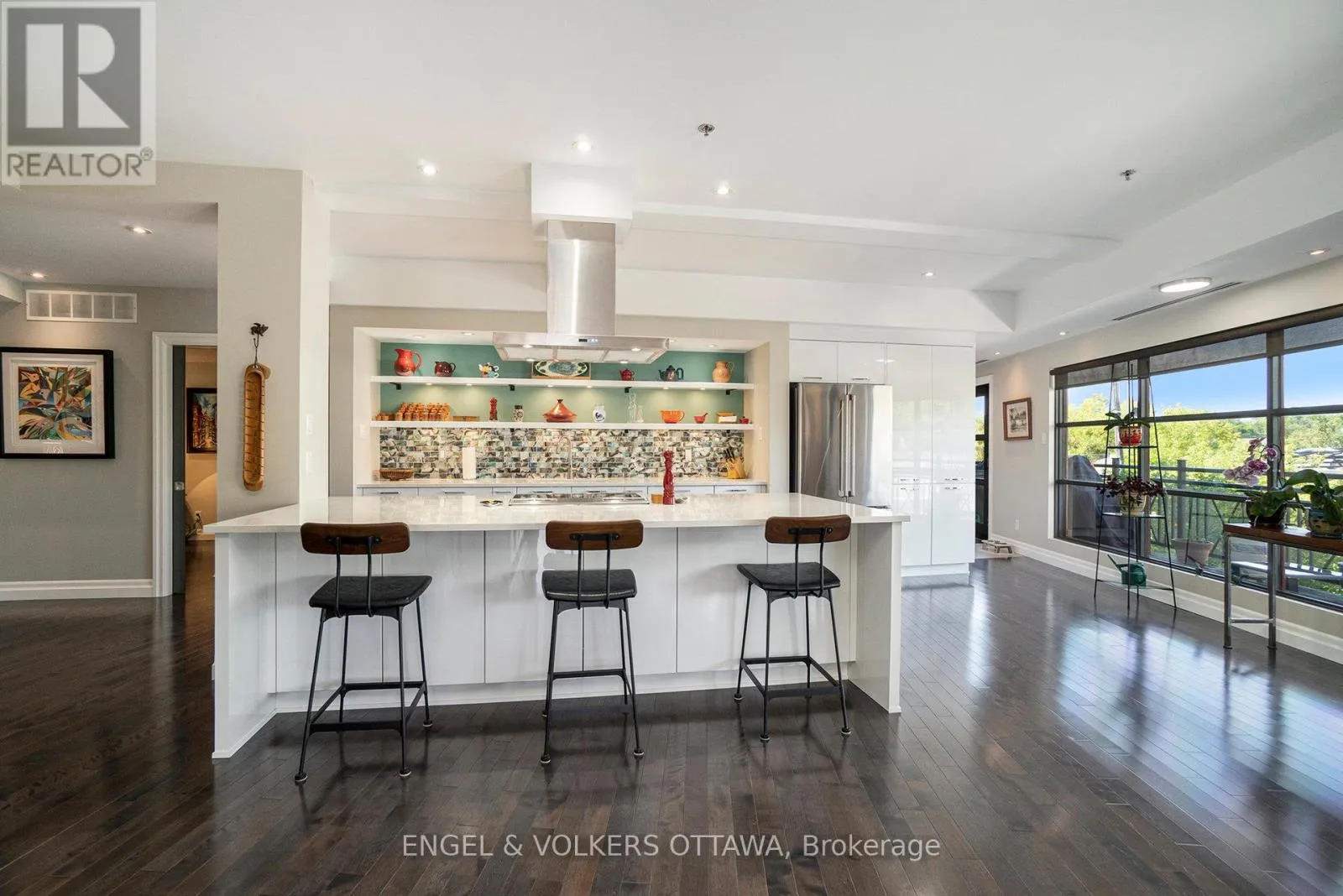 Cross Streets: Almonte St & Mill St. ** Directions: From Almonte St, turn onto Mill St. Welcome to this one-of-a-kind condo in the Victoria Woolen Mill in the heart of Almonte's historic district. With over $50K of improvements added in 2024-25, the unit's spacious foyer is filled with charm, featuring a stone accent wall, deep window ledges, and ceramic tile that flows seamlessly into elegant hardwood flooring carried throughout the home. Floor-to-ceiling windows and two large private balconies capture the home's most remarkable feature - a stunning and almost surreal view of the Mississippi Rivers Grand Falls. The showpiece kitchen is designed by Montreal luxury brand Miralis, and features quartz countertops, a striking island with a designer hood fan, a premium brand fridge and five-burner induction range, and sleek German hardware with pull-out storage solutions. The top-of-the-line Bosch dishwasher blends seamlessly into the custom cabinetry, while open shelving, a vibrant backsplash, and bright pot lighting combine style and functionality. The living and dining areas flow effortlessly together, with custom millwork offering both display shelving and abundant storage. High ceilings and recessed lighting enhance the open, airy ambiance. A thoughtfully designed pantry houses premium Electrolux laundry machines, additional cabinetry, a folding counter, and even a Fisher & Paykel dishwasher drawer. A full bathroom with shower and vanity, along with an adjoining storage room, completes this functional wing. The primary suite features double closets, unique architectural curves, and a beautifully renovated ensuite - complete with slate tile, heated floors, a rain shower, and a Canadian-made double vanity. The second bedroom, currently used as an office, offers privacy with a pocket door and flexible use as a guest space. With its rare combination of historic charm, modern luxury, and close proximity to award-winning businesses such as Hummingbird Chocolate Factory and Vodkow-Dairy Distillery, this residence is more than a home - it's a lifestyle. (id:27476)