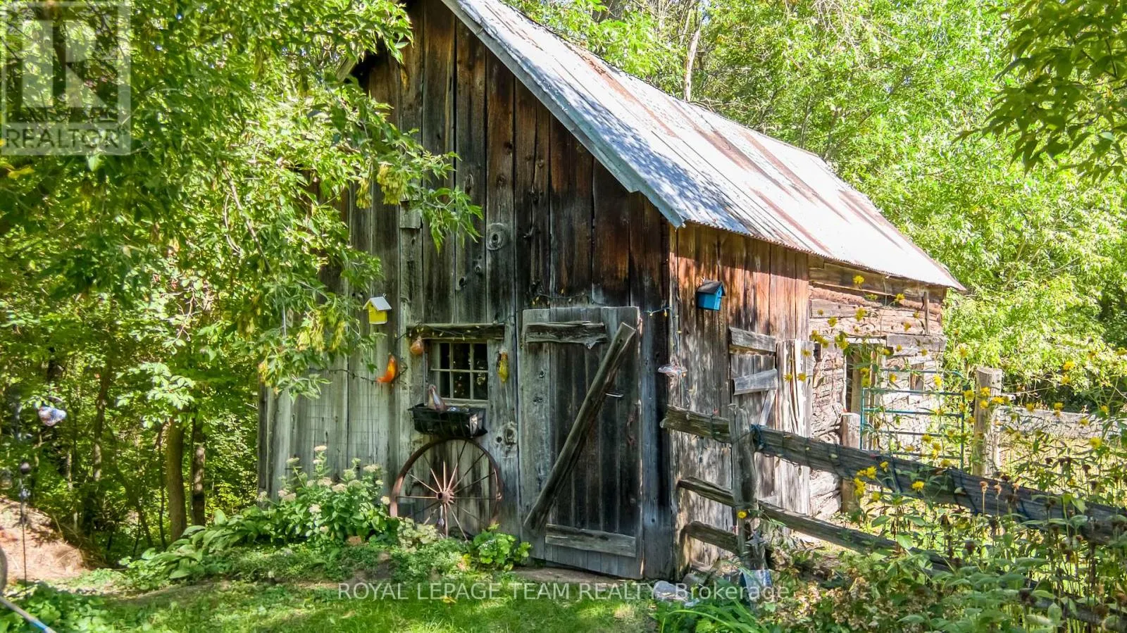 Cross Streets: Waba Rd and Con 10. ** Directions: From Hwy 417, exit 169 Kinburn Side Rd and follow to Pakenham. Cross bridge and turn left onto Cty Rd 29 then right onto Waba Rd at gas station. Follow to Con 10 and turn right. Property is on the right. Charming doesn't begin to describe this property. This one bedroom log home is right out of the pages of a Disney fairytale. Relax on the gingerbread front porch or wander down and put your feet into the shallow portion of Waba Creek or take a dip in the deeper swimming hole. The property extends onto the far side of the creek to ensure your privacy. There's also a screened gazebo for your outdoor enjoyment. Beautifully treed with rolling lawns and rustic outbuildings, there is also a cleared field ideal for livestock. Inside you will find the original building with exposed log walls and open beamed ceiling as well as a modern eat-in kitchen with a dining bay featuring spectacular views of your private paradise. Upstairs the loft style bedroom has plenty of closet space and a 4 pc bath. The basement level is home to a cozy family room with wood stove, and a bright bay window. This level is also home to a 2pc bath, laundry and large storage area. In addition to all this, check out the 28 ft x 30 ft heated workshop. Ideal for the hobbyist, artist or crafts person in the family. Close to the historic village of Pakenham as well as a short drive to the town of Arnprior and about a 15 minute drive to Hwy 417. (id:27476)