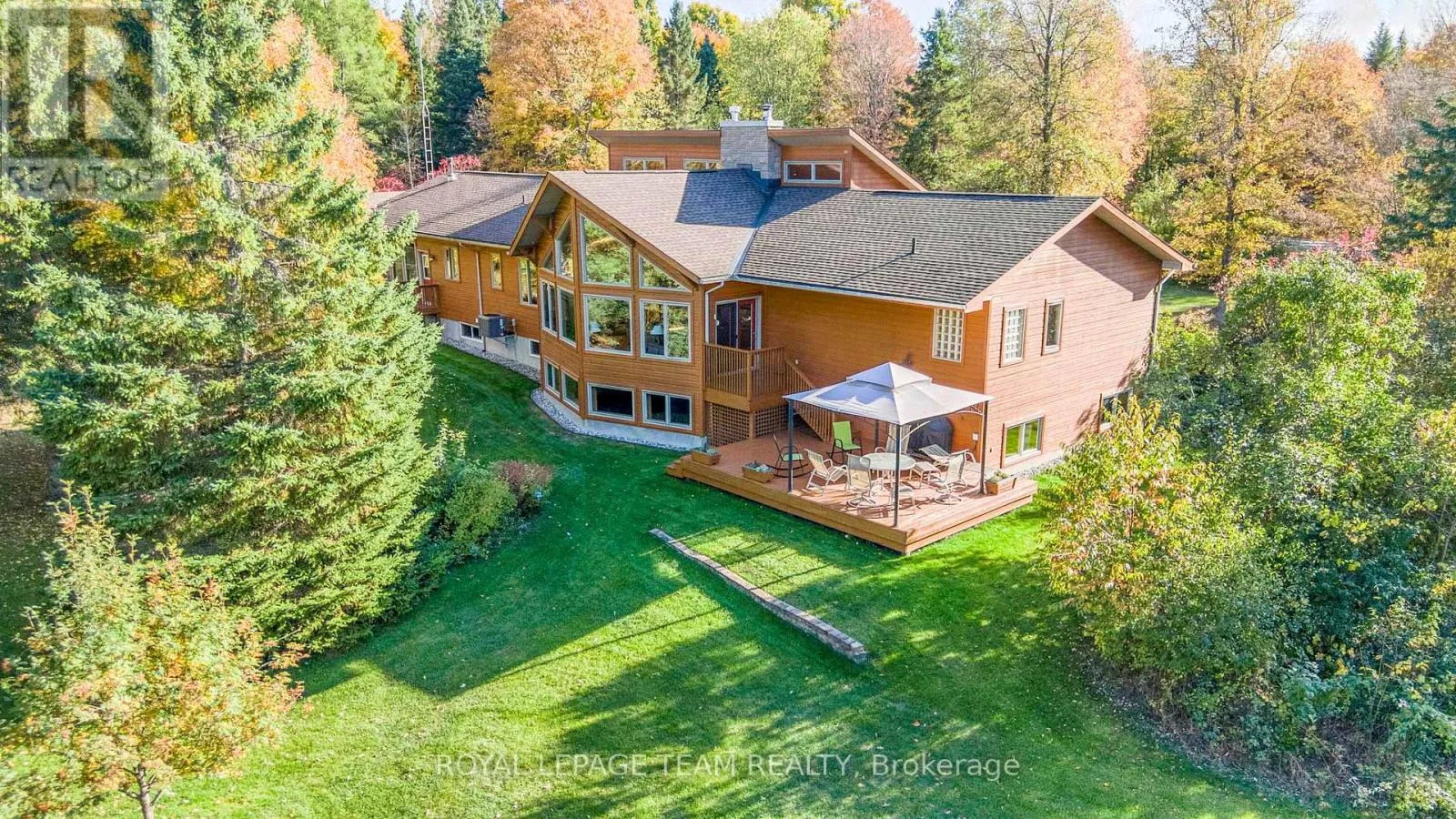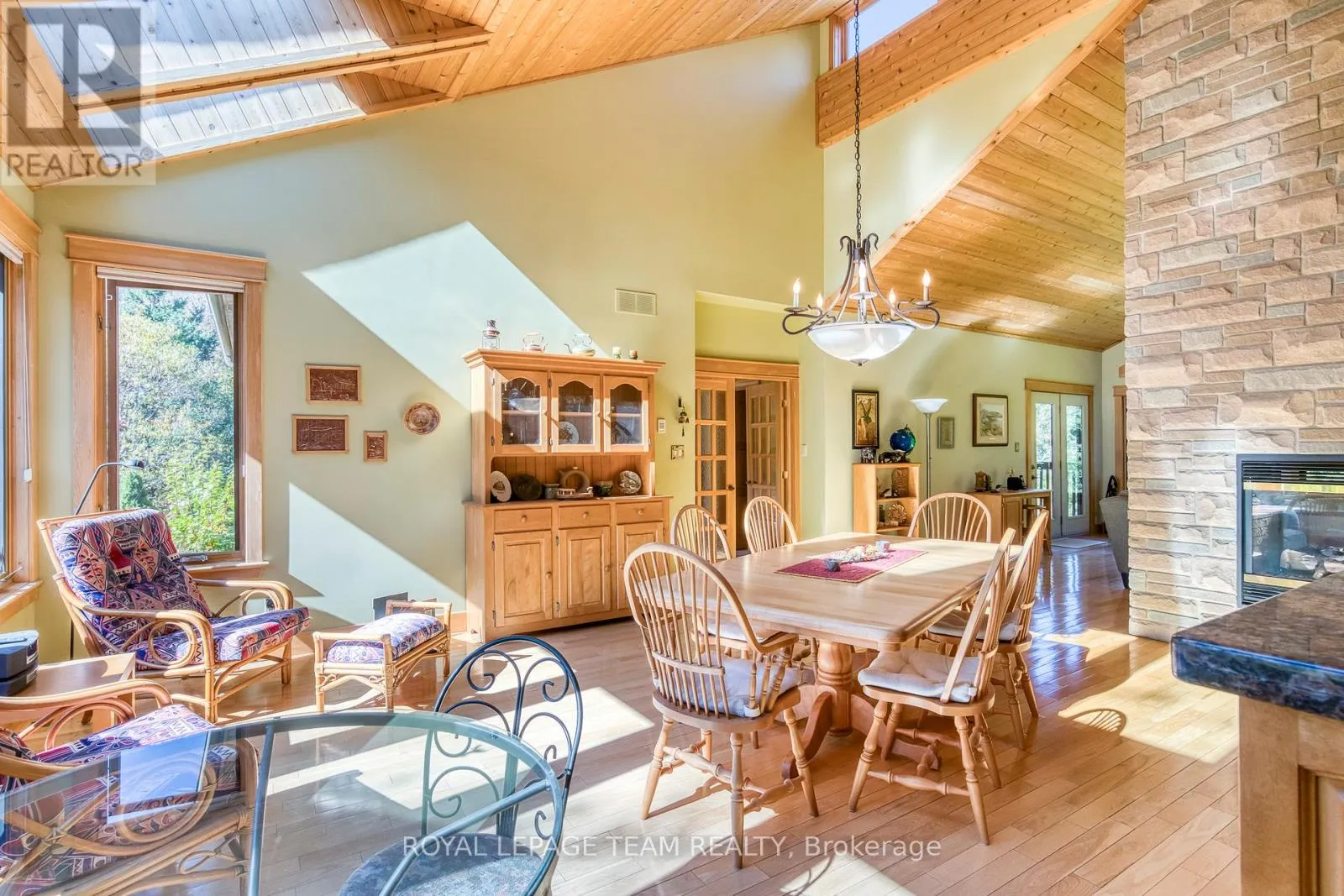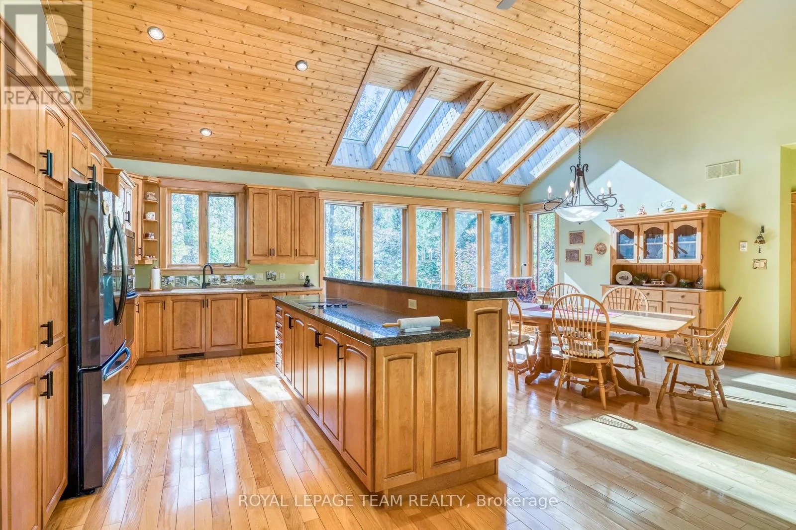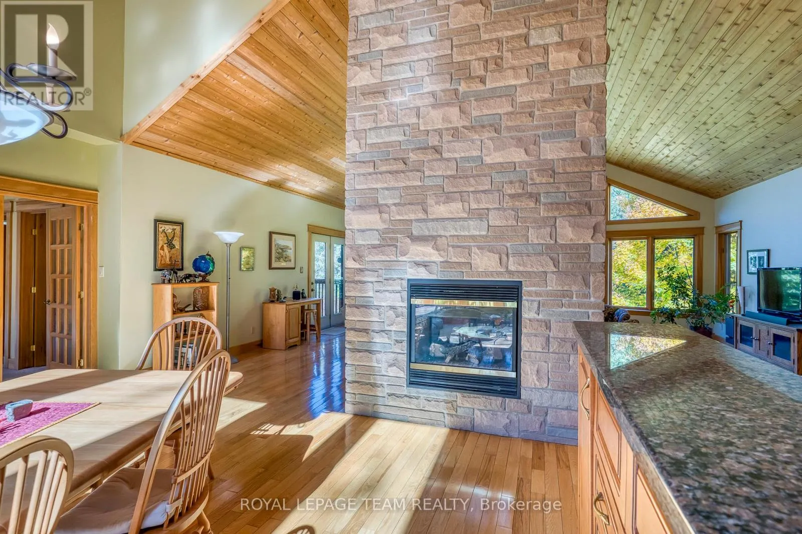 Cross Streets: Wolf Grove Rd and Con 3 A. ** Directions: Wolf grove Road, west of Almonte. Turn left onto Ramsay Con 3 A. S-T-R-E-T-C-H O-U-T Impressive custom built bungalow which shows pride of ownership!! Wide welcoming foyer to greet your guests. SPECTACLAR open concept kitchen, dining room and living room with soaring vaulted ceilings and a two sided gas fireplace!!, Huge windows allows the sunshine to pour in. There is direct access from the living room to a huge deck overlooking your peaceful, private back yard. A perfect place for your next family BBQ. Loads of room for the whole family with 3 + 2 bedrooms and 3 bathrooms. The primary bedroom is complete with two walk in closets + a 5 piece ensuite You are sure to appreciate the 4 season sunroom + the main floor laundry. Both bathrooms on the main floor have heated floors. You will be impressed with the lower level which features 9 ft ceilings, heated floors and huge sun filled windows. The family room with a cozy wood stove is the ideal place to enjoy family gatherings. You will also find a full 4 piece bathroom, workshop and utility room + loads of storage space. The two car garage has inside access to the main level and direct access to the workshop in the lower level. A perfect place to work on your crafts and hobbies. The detached 24ft x 40ft garage provides 2 more parking spaces + room for tools and equipment. The Generac will give you peace of mind no matter what kind of weather you experience. The 80 acres offers you plenty of "room to roam" with miles of trails. Ideal for hiking, walking, cross cross country skiing, snowshoeing+++. Year round enjoyment. Peaceful setting with easy access. Check out the drone video (id:27476)