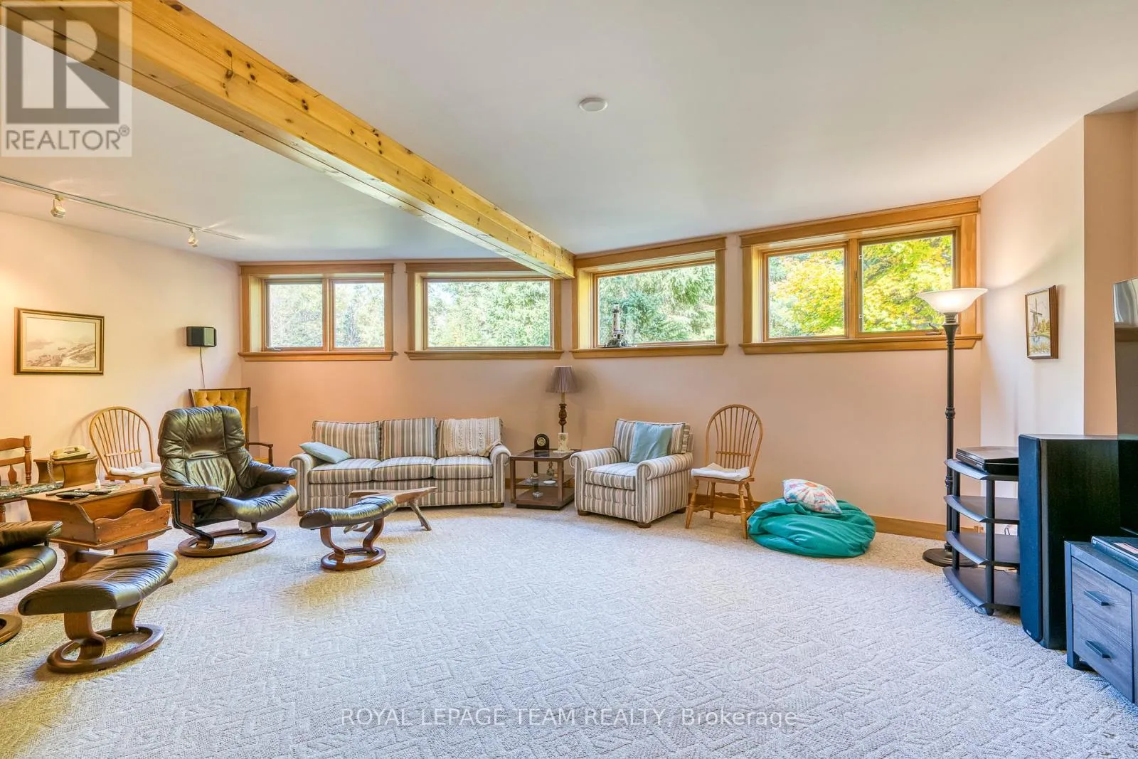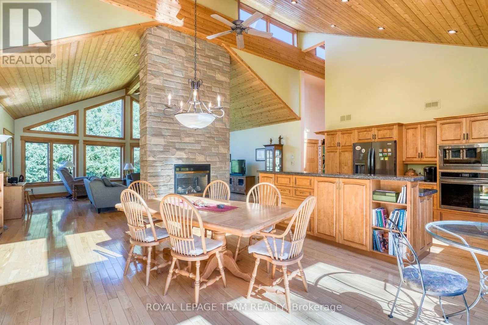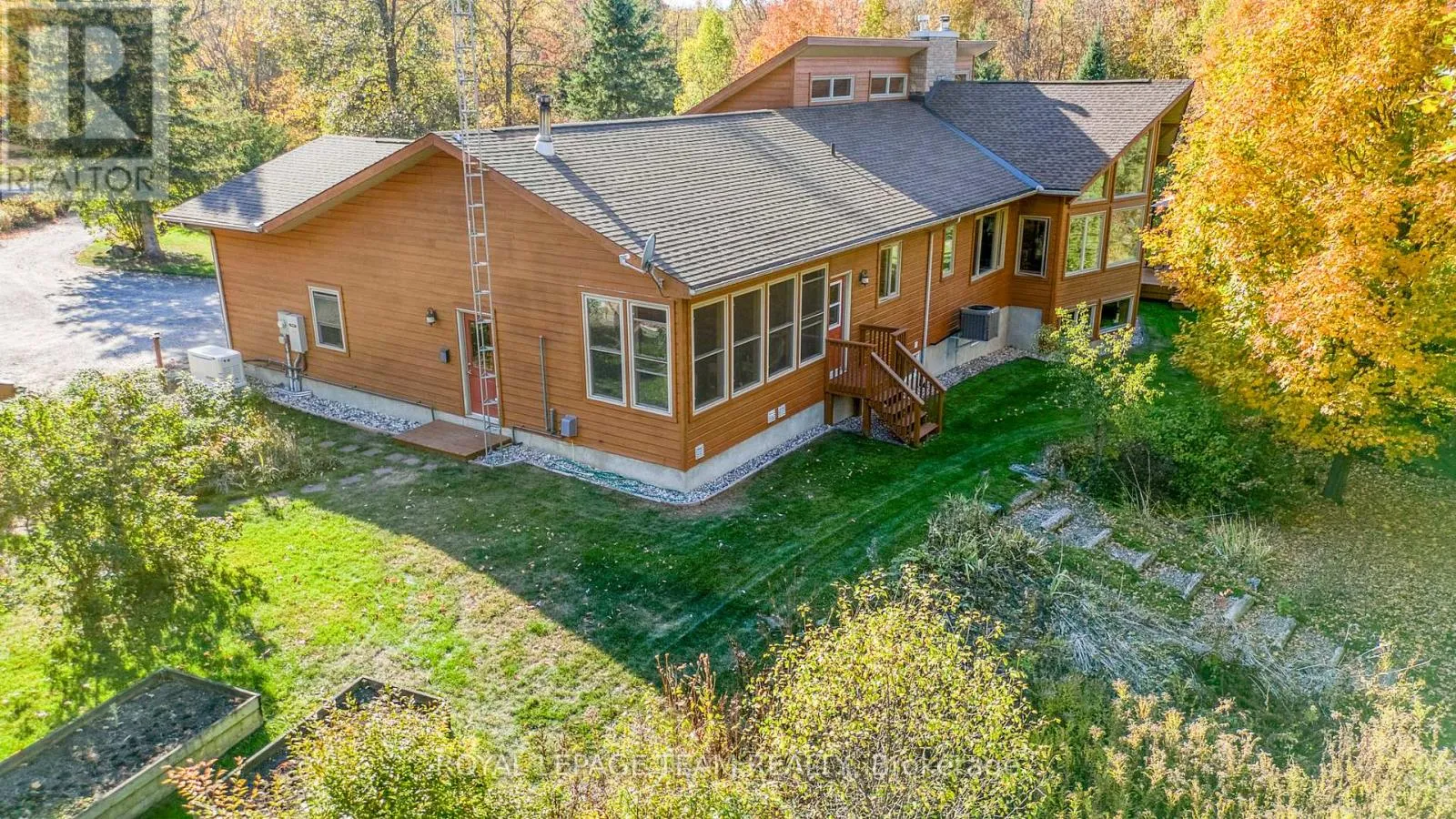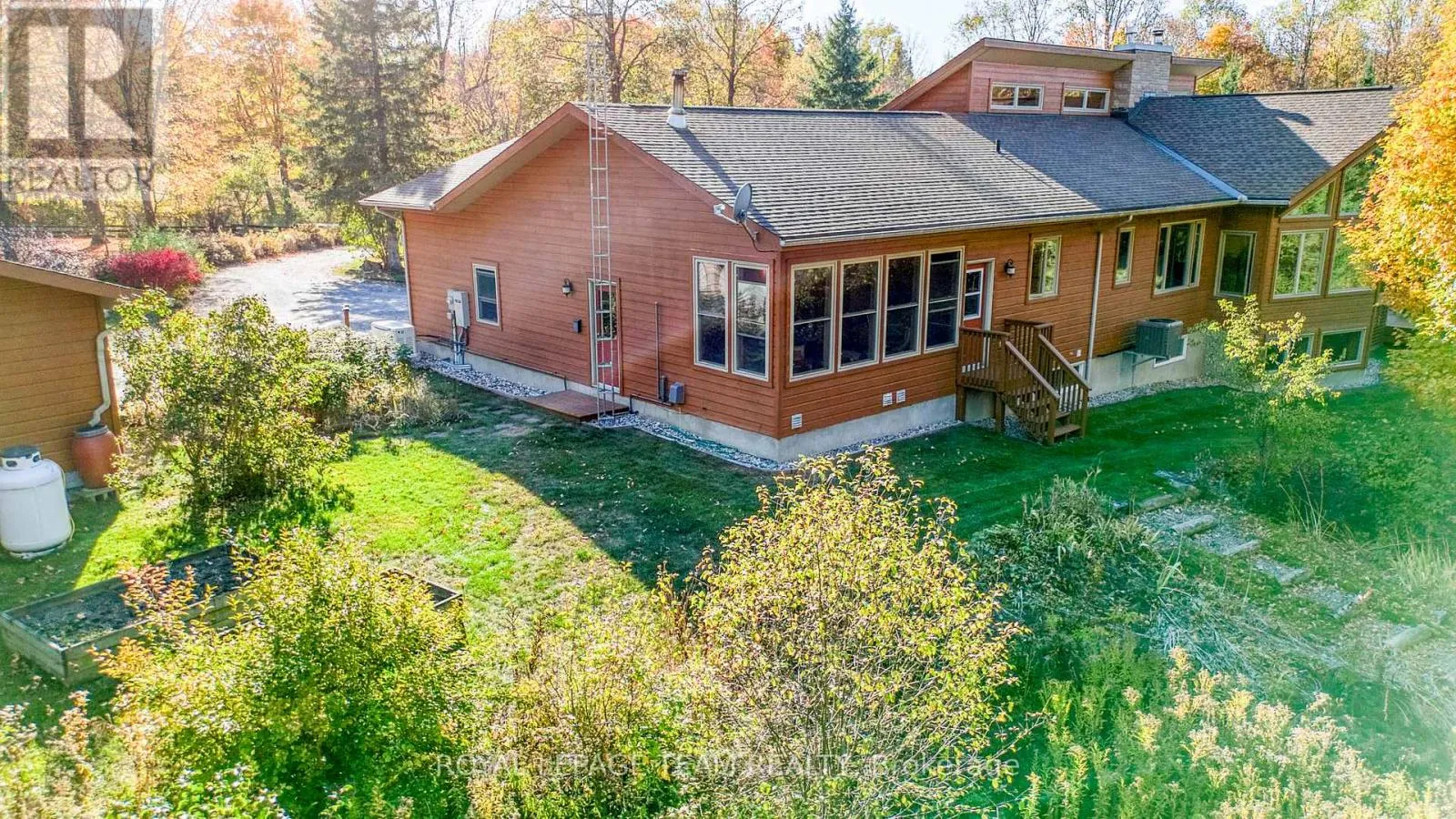 Cross Streets: Wolf Grove Rd and Con 3 A. ** Directions: Wolf grove Road, west of Almonte. Turn left onto Ramsay Con 3 A. S-T-R-E-T-C-H O-U-T Impressive custom built bungalow which shows pride of ownership!! Wide welcoming foyer to greet your guests. SPECTACLAR open concept kitchen, dining room and living room with soaring vaulted ceilings and a two sided gas fireplace!!, Huge windows allows the sunshine to pour in. There is direct access from the living room to a huge deck overlooking your peaceful, private back yard. A perfect place for your next family BBQ. Loads of room for the whole family with 3 + 2 bedrooms and 3 bathrooms. The primary bedroom is complete with two walk in closets + a 5 piece ensuite You are sure to appreciate the 4 season sunroom + the main floor laundry. Both bathrooms on the main floor have heated floors. You will be impressed with the lower level which features 9 ft ceilings, heated floors and huge sun filled windows. The family room with a cozy wood stove is the ideal place to enjoy family gatherings. You will also find a full 4 piece bathroom, workshop and utility room + loads of storage space. The two car garage has inside access to the main level and direct access to the workshop in the lower level. A perfect place to work on your crafts and hobbies. The detached 24ft x 40ft garage provides 2 more parking spaces + room for tools and equipment. The Generac will give you peace of mind no matter what kind of weather you experience. The 80 acres offers you plenty of "room to roam" with miles of trails. Ideal for hiking, walking, cross cross country skiing, snowshoeing+++. Year round enjoyment. Peaceful setting with easy access. Check out the drone video (id:27476)