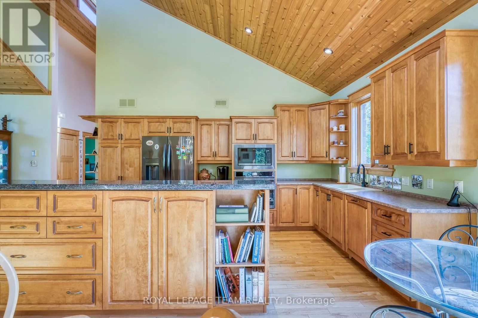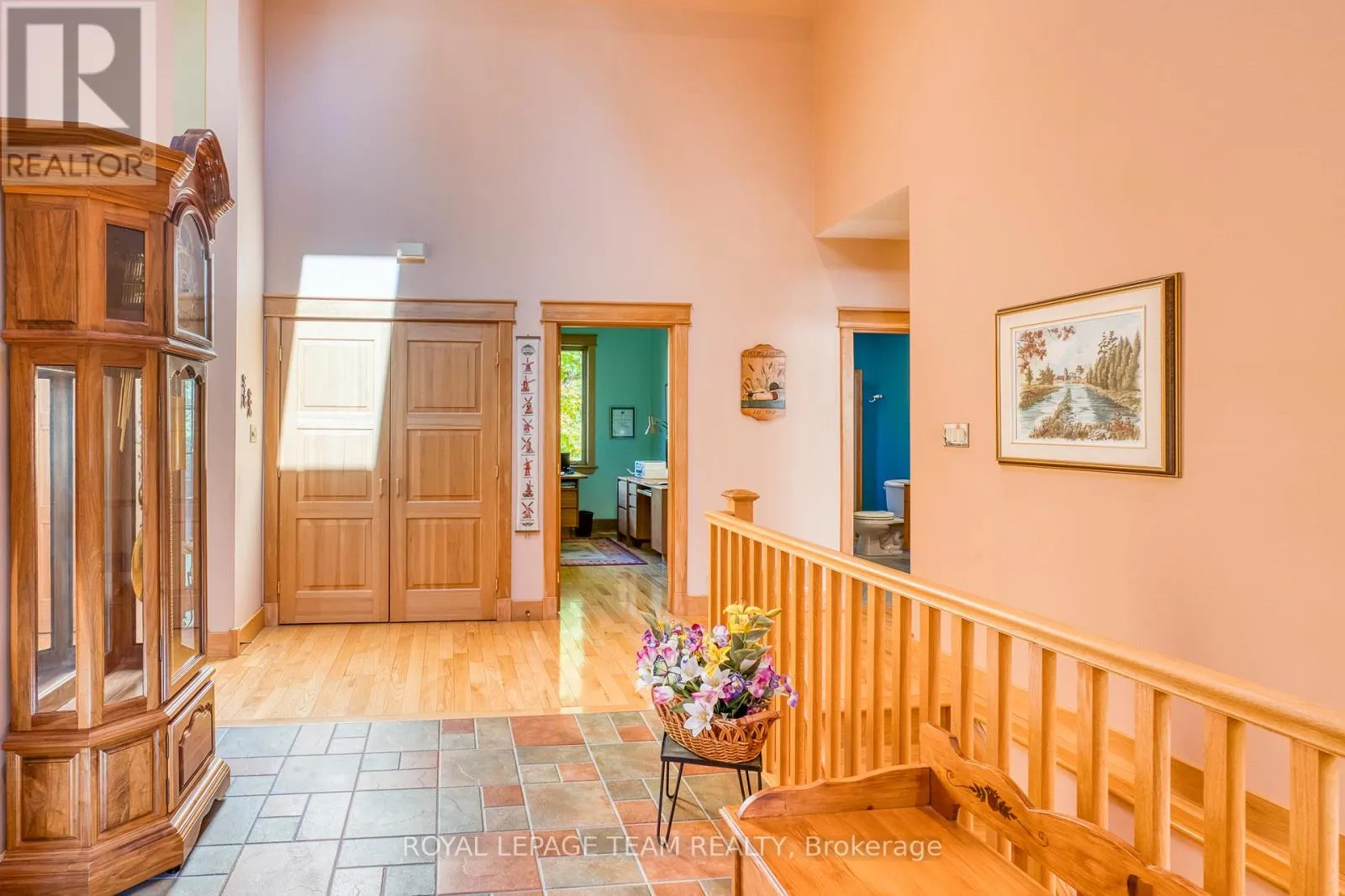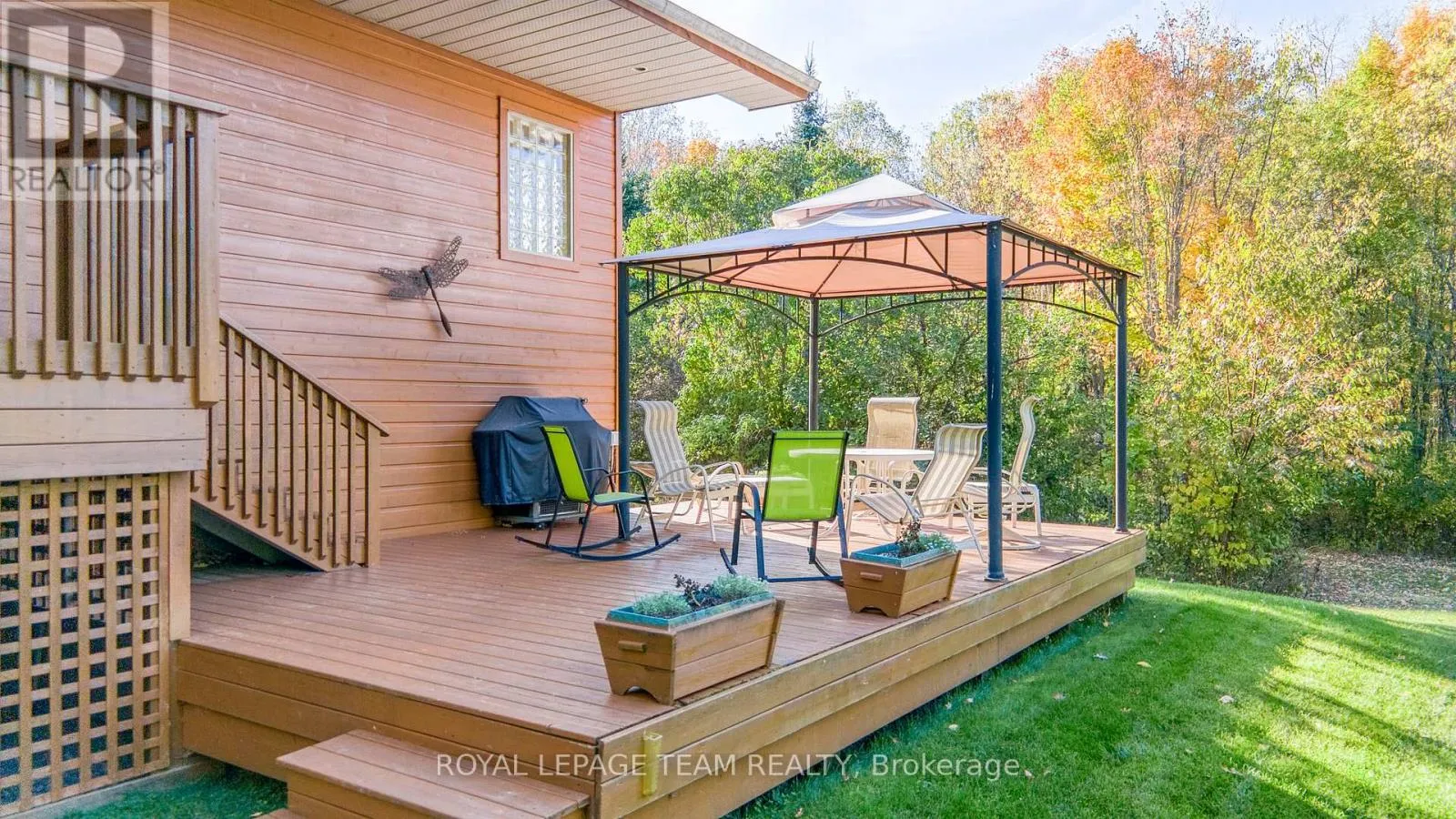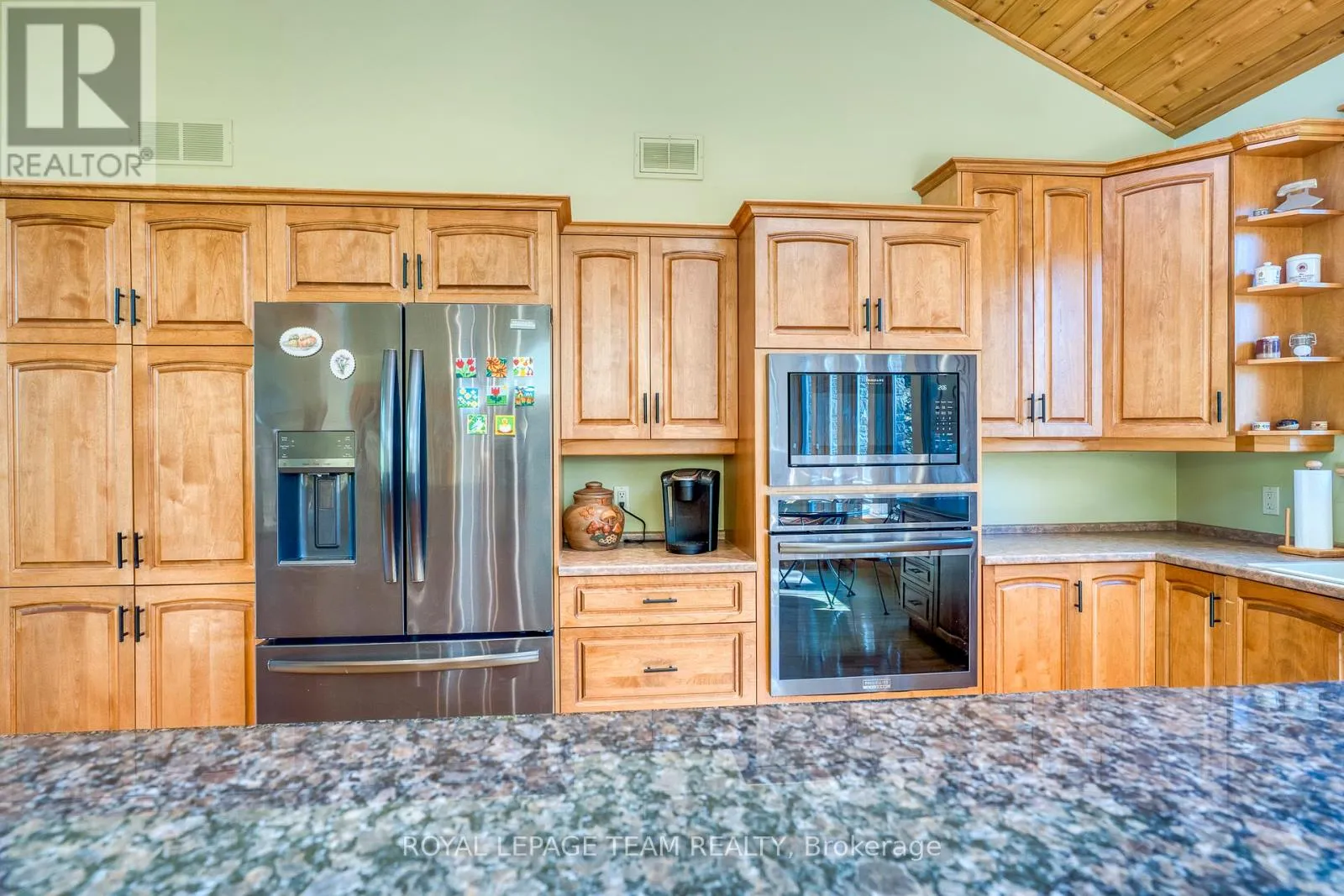 Cross Streets: Wolf Grove Rd and Con 3 A. ** Directions: Wolf grove Road, west of Almonte. Turn left onto Ramsay Con 3 A. S-T-R-E-T-C-H O-U-T Impressive custom built bungalow which shows pride of ownership!! Wide welcoming foyer to greet your guests. SPECTACLAR open concept kitchen, dining room and living room with soaring vaulted ceilings and a two sided gas fireplace!!, Huge windows allows the sunshine to pour in. There is direct access from the living room to a huge deck overlooking your peaceful, private back yard. A perfect place for your next family BBQ. Loads of room for the whole family with 3 + 2 bedrooms and 3 bathrooms. The primary bedroom is complete with two walk in closets + a 5 piece ensuite You are sure to appreciate the 4 season sunroom + the main floor laundry. Both bathrooms on the main floor have heated floors. You will be impressed with the lower level which features 9 ft ceilings, heated floors and huge sun filled windows. The family room with a cozy wood stove is the ideal place to enjoy family gatherings. You will also find a full 4 piece bathroom, workshop and utility room + loads of storage space. The two car garage has inside access to the main level and direct access to the workshop in the lower level. A perfect place to work on your crafts and hobbies. The detached 24ft x 40ft garage provides 2 more parking spaces + room for tools and equipment. The Generac will give you peace of mind no matter what kind of weather you experience. The 80 acres offers you plenty of "room to roam" with miles of trails. Ideal for hiking, walking, cross cross country skiing, snowshoeing+++. Year round enjoyment. Peaceful setting with easy access. Check out the drone video (id:27476)
