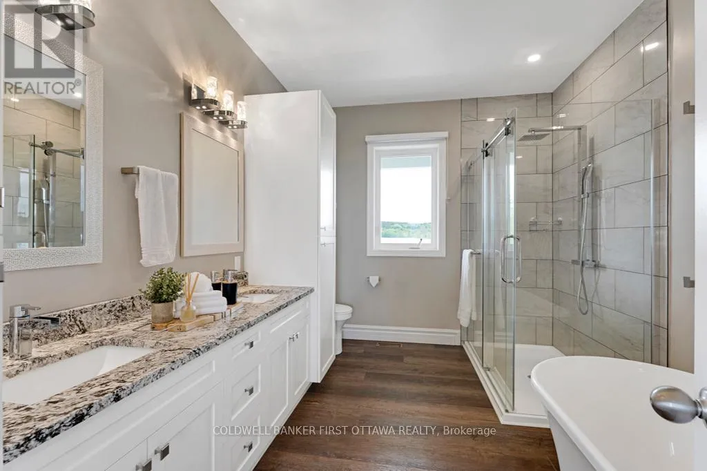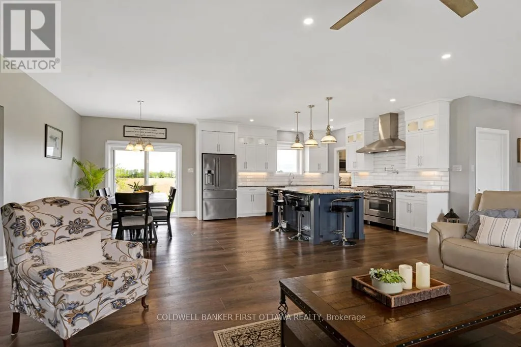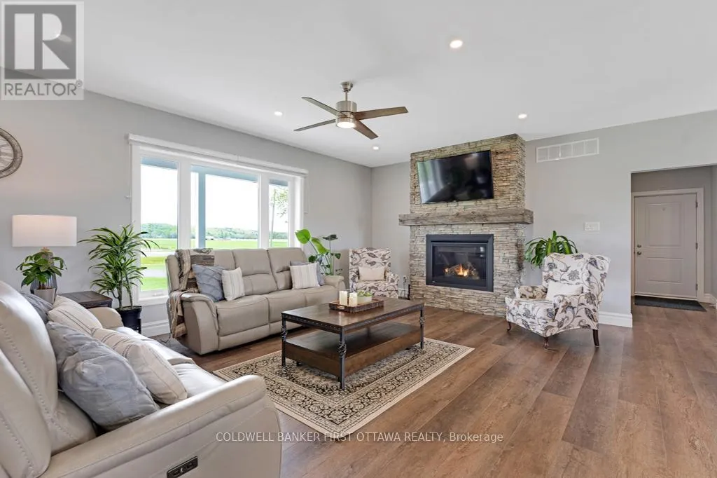 Cross Streets: Waba Road. ** Directions: From Ottawa, Hwy 417 north. Exit at Kinburn Side Road (Pakenham). Left on Kinburn Side Road. At T junction, left County Road 29. In Pakenham, right on Waba Road to Pin #800. New 2022 bungalow with upscale quality and curb appeal on 1.5 country acres, just outside the friendly village of Pakenham. Welcoming Trex verandah is first of many desired features this superior-built 3 bedroom, 2 full bathroom home offers. Sunny spacious open plan with 9' ceilings. Luxury vinyl plank floors flow thru main level. Livingroom showcases Nantucket Eldorado stone fireplace that has propane insert with big glass face and reflective back, creating mesmerizing fire. Custom Dell windows have wide sills due to thickness of upgraded insulated ICF walls. Dining area patio doors to patio. Kitchen sparkles with all its modern detailing including Alaska solid wood cabinets, under counter lighting, beveled subway backsplash and upper glass display cabinets with interior dimmer lights. You also have built-in charging station for electronics. The family chef will appreciate Zline propane stove with pot filler and electric double ovens plus, grand island-breakfast bar. Impressive Butler's pantry has granite counters, Alaskan cabinets, microwave nook and coffee station with pot filler. The spa primary suite retreat has large windows for peaceful country views; walk-in closet with tiered rods, cabinets and pot lights. The 5-pc ensuite's cabinets flank two-sink granite vanity; two-person soaker tub with floor mounted waterfall faucet; glass shower body spray & rain head. Two more bedrooms, 4-pc bathroom, laundry room and mud room. Lower level polished concrete floor in expansive family room and rec room plus, sliding barn door to exercise room. Lower level partly finished, awaiting your finishing plans. Hot water on demand. Hookup for a portable generator. Attached heated insulated 3-car has finished drywall and overhead propane heater; inside entry to both main and lower levels. Large vegetable garden. Bell high-speed. Cell service. On municipal maintained road with curbside garbage pickup and school bus route. 10 mins to Pakenham golf course & ski hill. 25 mins Kanata (id:27476)