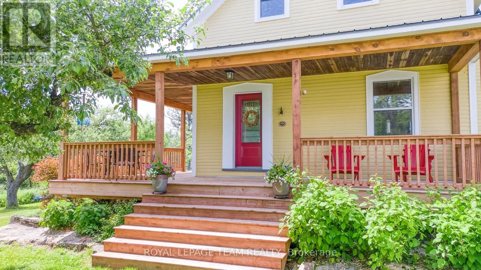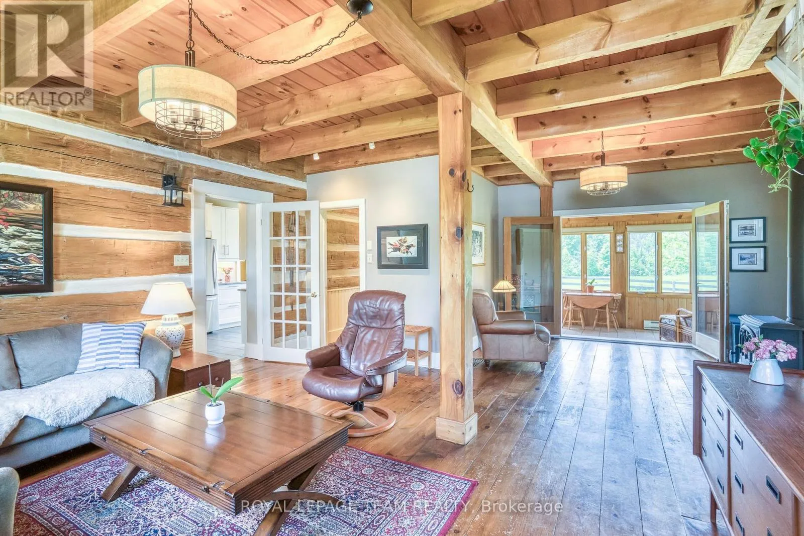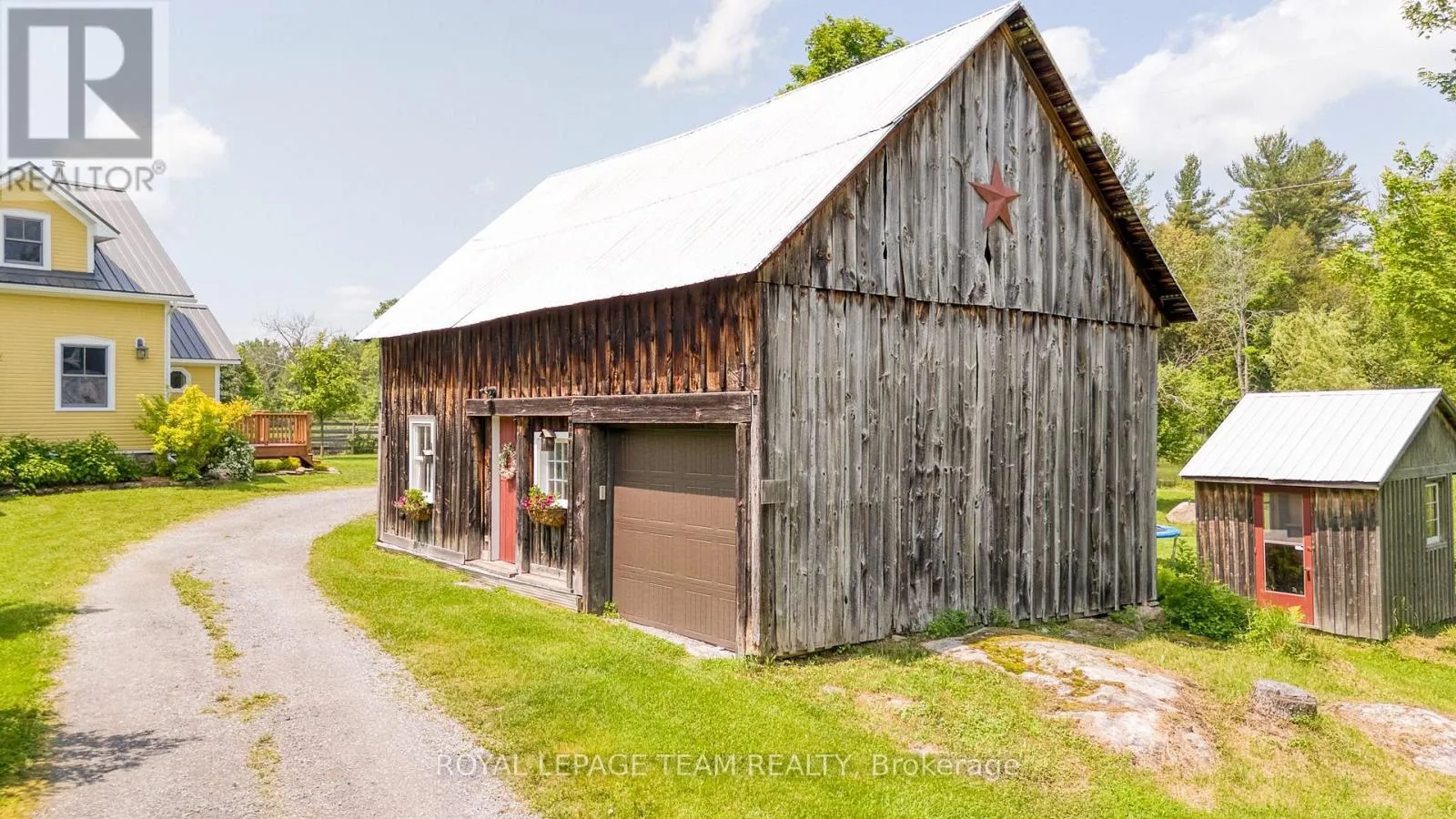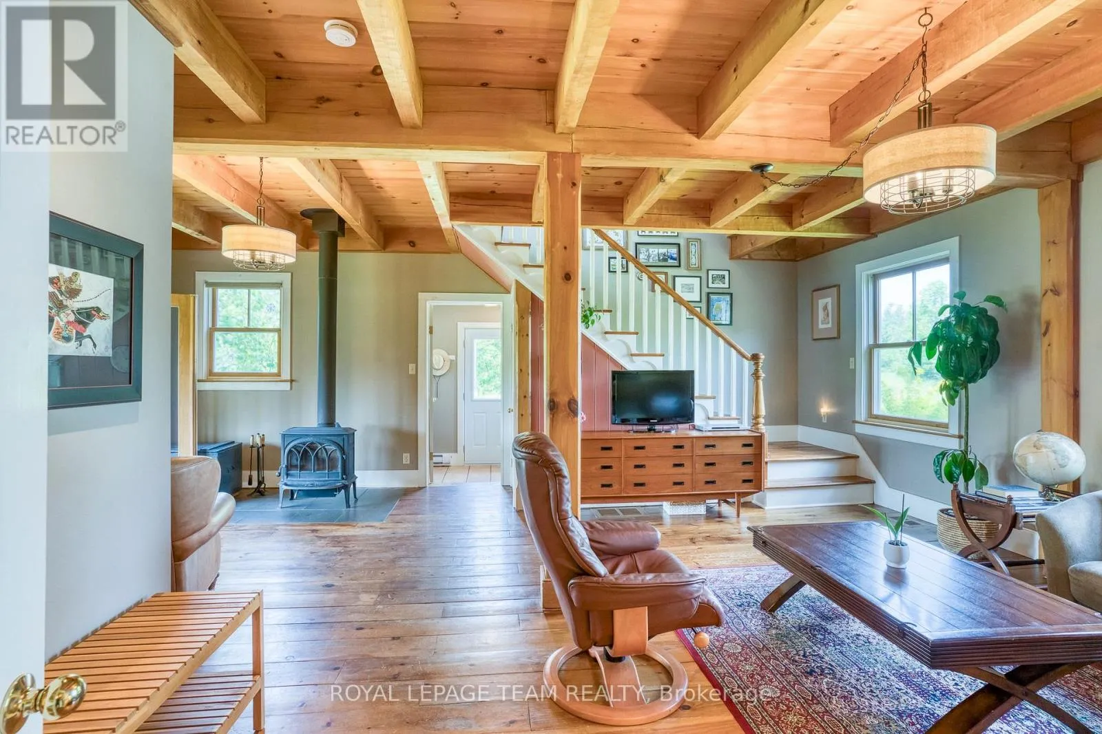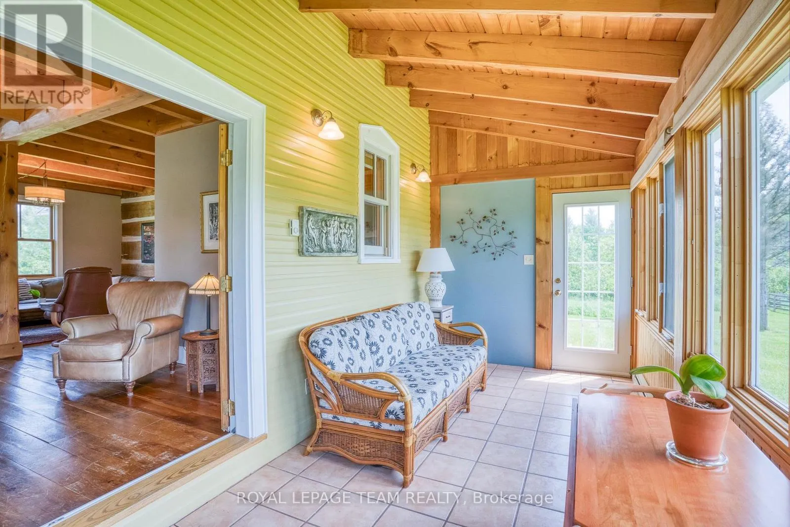 Cross Streets: Bellamy Mills rd and ramsay Con 3 C. ** Directions: Tatlock Rd to Bellamy Mills Rd then left onto Ramsay Con 3 C. ONE OF A KIND WITH INSTANT CURB APPEAL SET ON 94 ACRES!! Originally an 1800s farmhouse which was dismantled & meticulously rebuilt + an addition in the 1990s. You will be impressed with the charm and character plus the quality upgrades. The handy mudroom/foyer with tile floor is the ideal place to greet family & friends. Recently updated kitchen is complete with quartz counters and tile floors + a sunny window overlooking your backyard. Both the dining room & living room have wide plank floors & beamed ceilings. From the living room you have direct access to your wrap around veranda. The perfect place to have your morning coffee & listen to the birds!! The family room showcases an exposed log wall, wide plank floors & a cozy wood stove. From the family room you have direct access to your sun room offering a peaceful relaxing view overlooking your back fields. A handy two-piece bathroom is conveniently located on the main floor. Upstairs you will find three spacious bedrooms with pine floors The primary bedroom offers a walk-in closet. With Fiber Internet & the office area it is an ideal place for those that work from home. Modern 5-piece bathroom with double sinks, a soaker tub & a separate shower stall. Excellent out bldgs including two separate detached garages both offering extra storage space & room for your special projects & hobbies. Oh and don't forget the fresh eggs from your own chicken coop!! The acreage offers the perfect combination of open fields, forest and even a pond next to the house! You will have year-round enjoyment with hiking & 4-wheeling in the summer, cross-country skiing, snowshoeing & snowmobiling in the winter. Recent upgrades roof, furnace and wood stove 2016, windows 2018, two doors 2019, kitchen and both bathrooms 2021, veranda 2023. Utilities hydro approx $190/mo, propane approx $190/mo, wood 3 chords/yr. Located on a peaceful country road with easy access. 15 min to Almonte, 1 hr to downtown Ottawa, min to Clayton General Store. (id:27476)