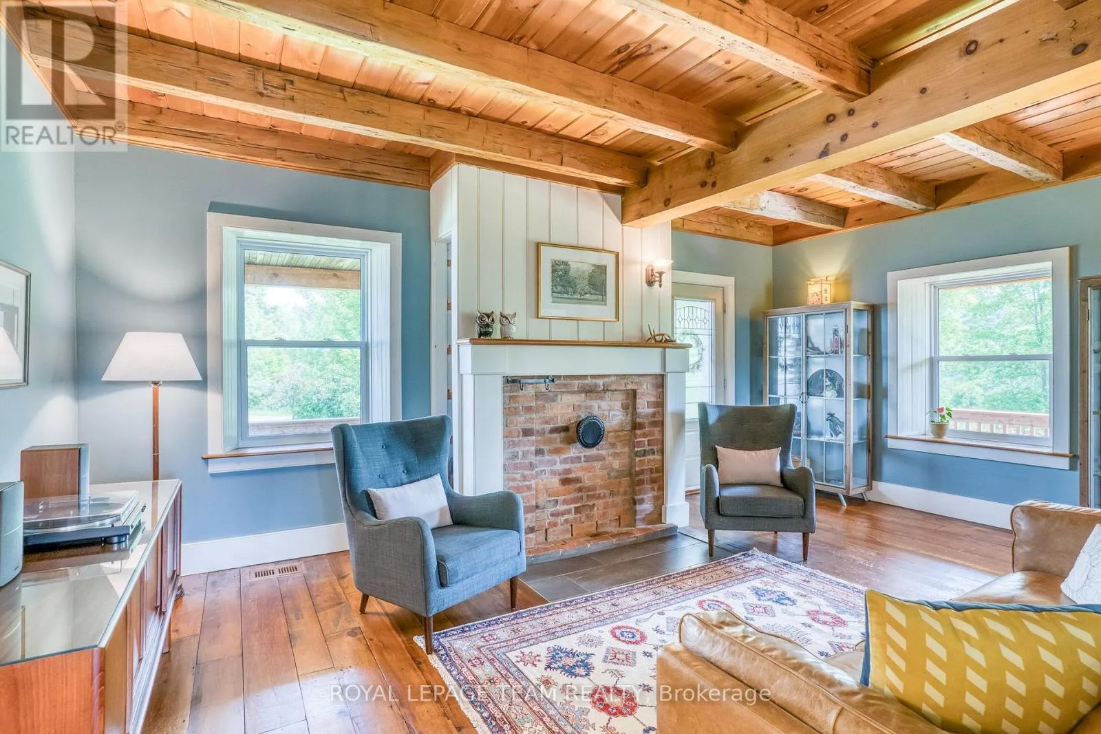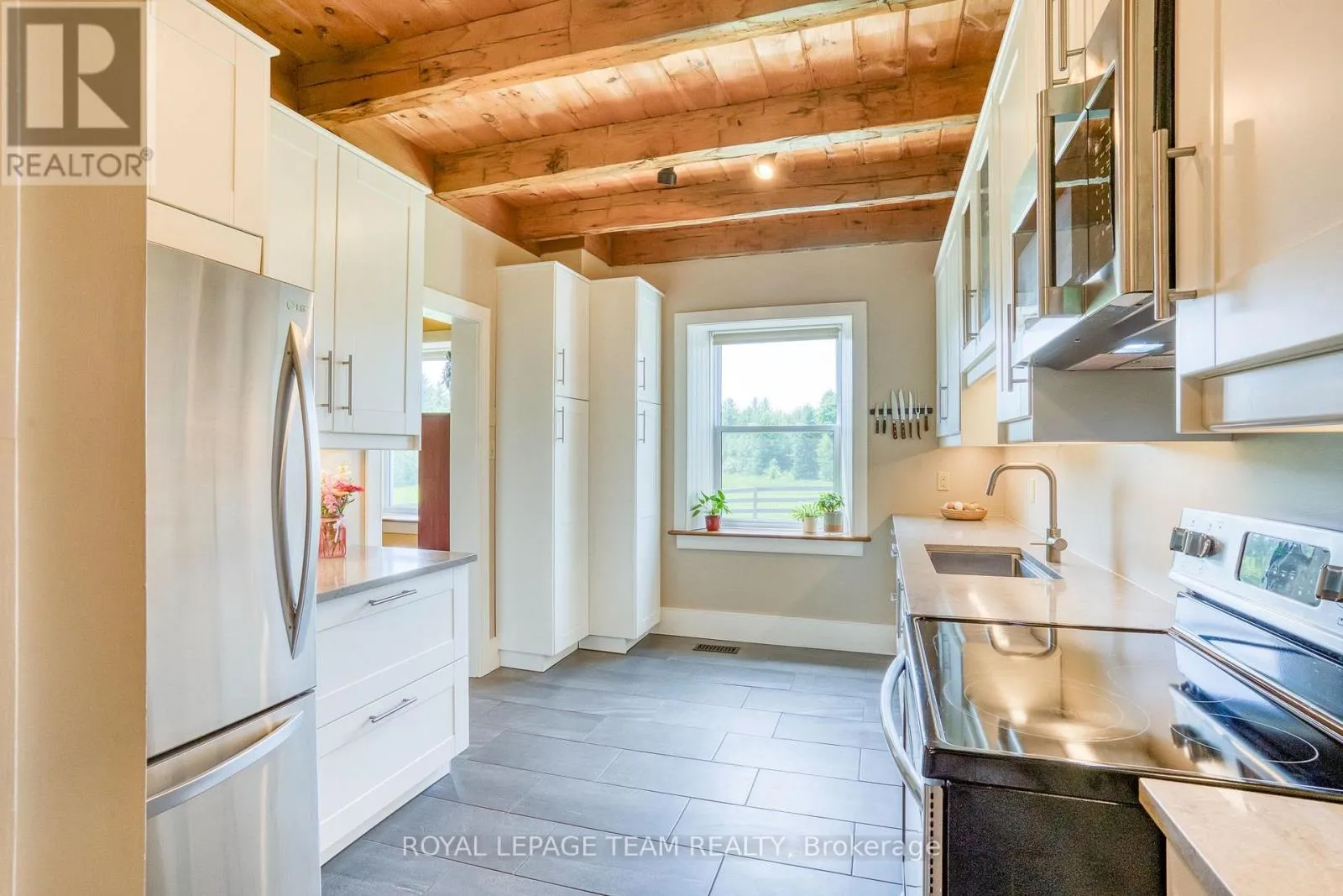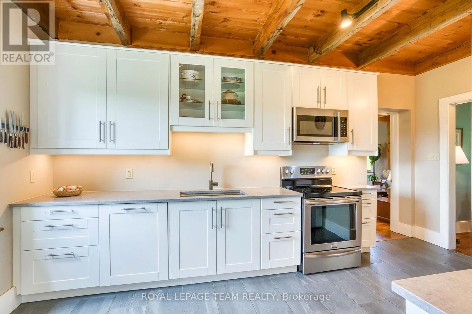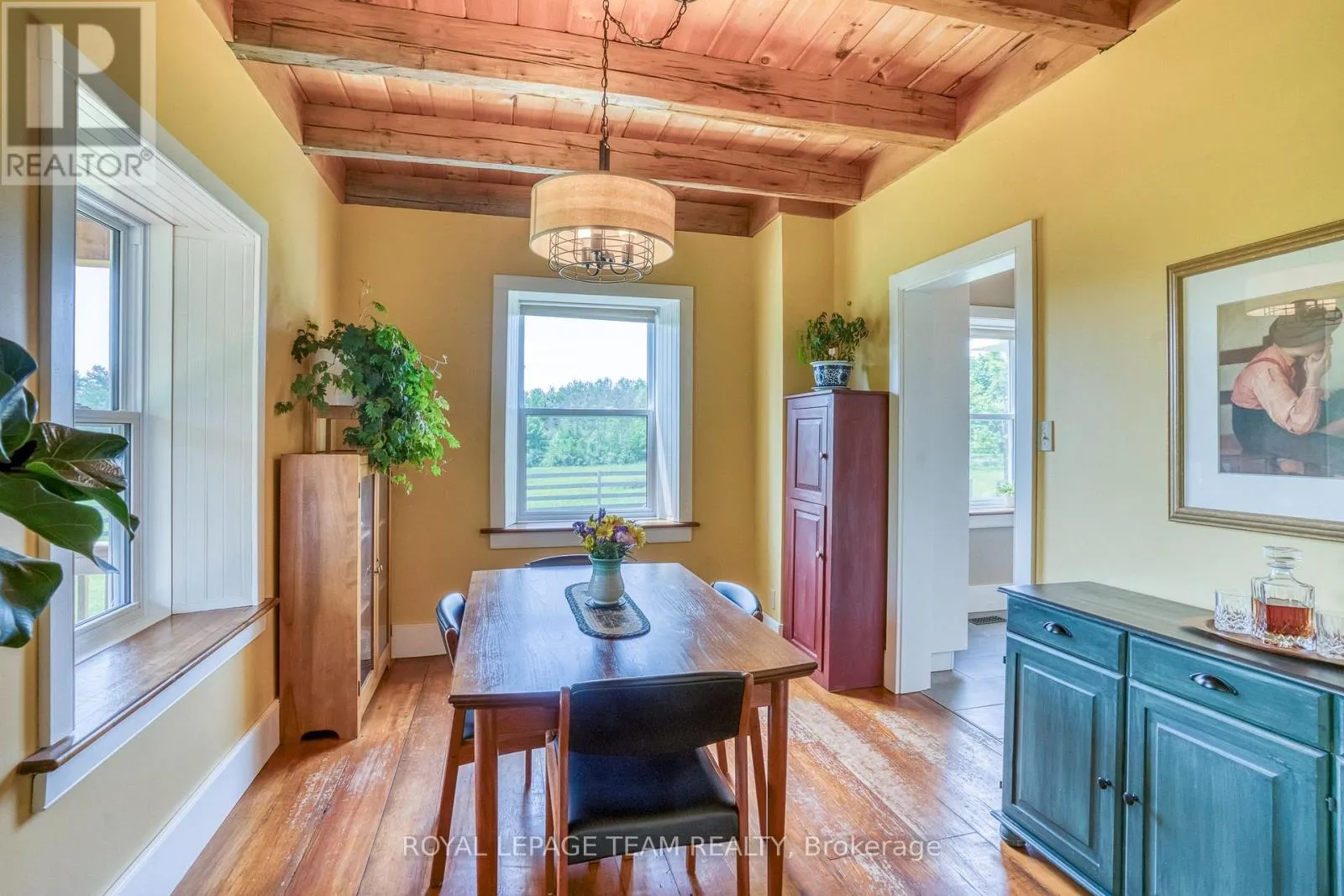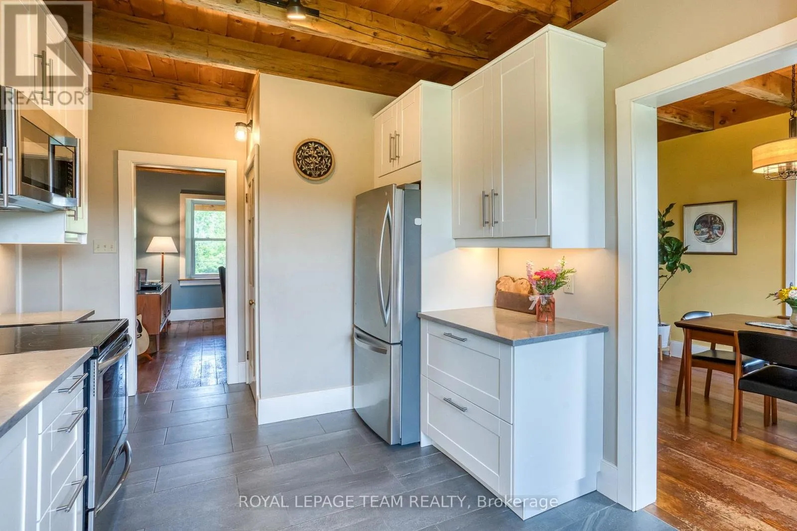 Cross Streets: Bellamy Mills rd and ramsay Con 3 C. ** Directions: Tatlock Rd to Bellamy Mills Rd then left onto Ramsay Con 3 C. ONE OF A KIND WITH INSTANT CURB APPEAL SET ON 94 ACRES!! Originally an 1800s farmhouse which was dismantled & meticulously rebuilt + an addition in the 1990s. You will be impressed with the charm and character plus the quality upgrades. The handy mudroom/foyer with tile floor is the ideal place to greet family & friends. Recently updated kitchen is complete with quartz counters and tile floors + a sunny window overlooking your backyard. Both the dining room & living room have wide plank floors & beamed ceilings. From the living room you have direct access to your wrap around veranda. The perfect place to have your morning coffee & listen to the birds!! The family room showcases an exposed log wall, wide plank floors & a cozy wood stove. From the family room you have direct access to your sun room offering a peaceful relaxing view overlooking your back fields. A handy two-piece bathroom is conveniently located on the main floor. Upstairs you will find three spacious bedrooms with pine floors The primary bedroom offers a walk-in closet. With Fiber Internet & the office area it is an ideal place for those that work from home. Modern 5-piece bathroom with double sinks, a soaker tub & a separate shower stall. Excellent out bldgs including two separate detached garages both offering extra storage space & room for your special projects & hobbies. Oh and don't forget the fresh eggs from your own chicken coop!! The acreage offers the perfect combination of open fields, forest and even a pond next to the house! You will have year-round enjoyment with hiking & 4-wheeling in the summer, cross-country skiing, snowshoeing & snowmobiling in the winter. Recent upgrades roof, furnace and wood stove 2016, windows 2018, two doors 2019, kitchen and both bathrooms 2021, veranda 2023. Utilities hydro approx $190/mo, propane approx $190/mo, wood 3 chords/yr. Located on a peaceful country road with easy access. 15 min to Almonte, 1 hr to downtown Ottawa, min to Clayton General Store. (id:27476)