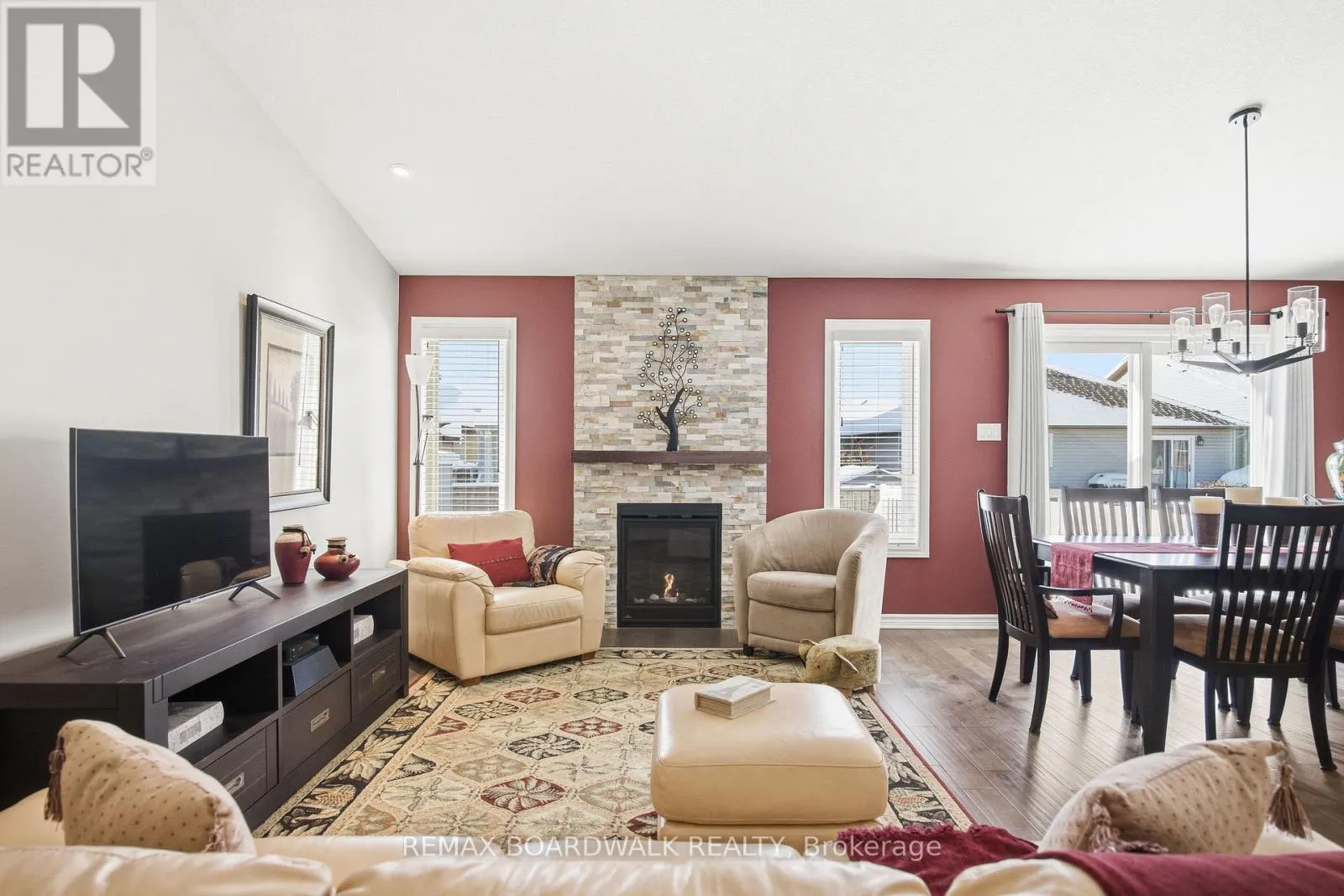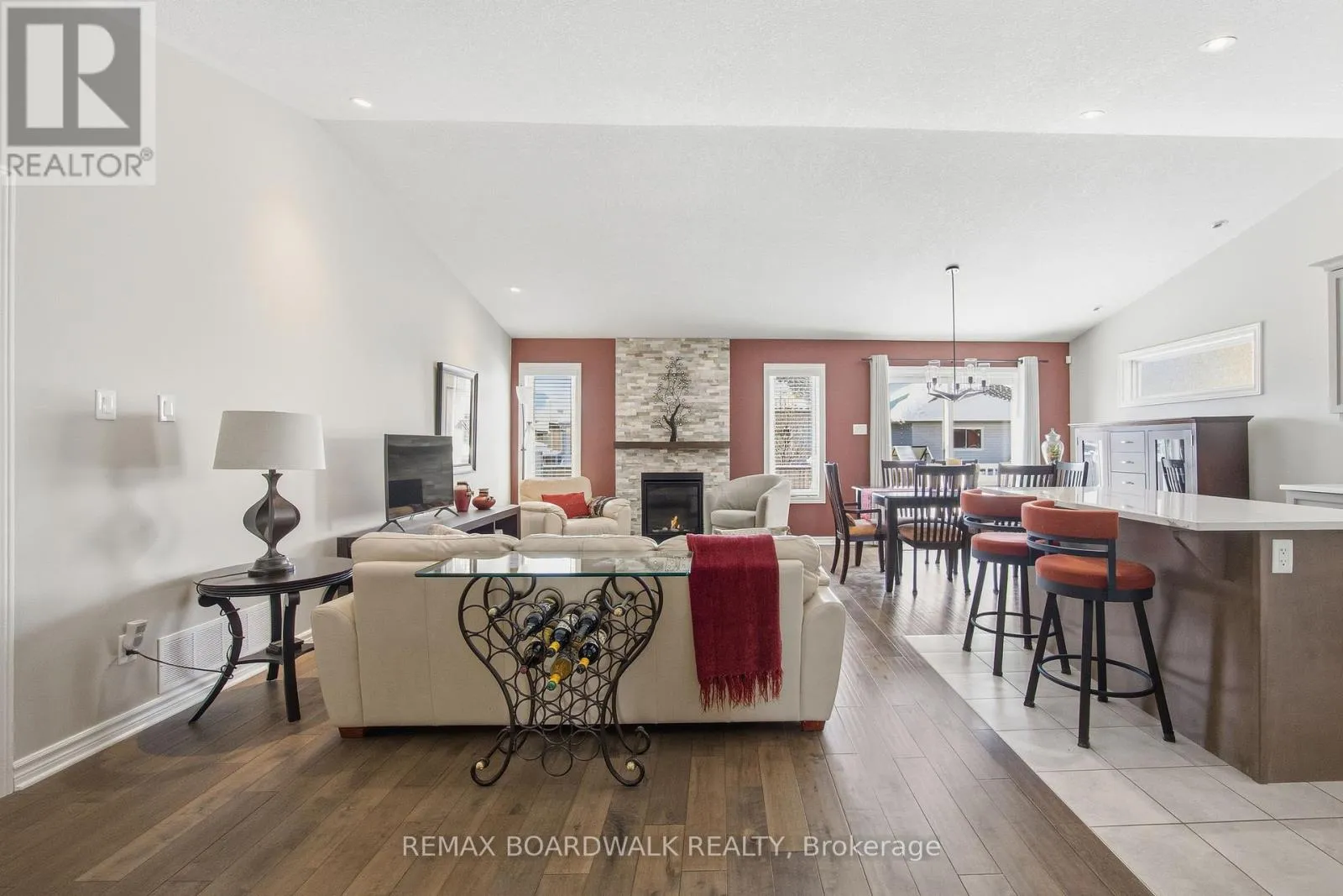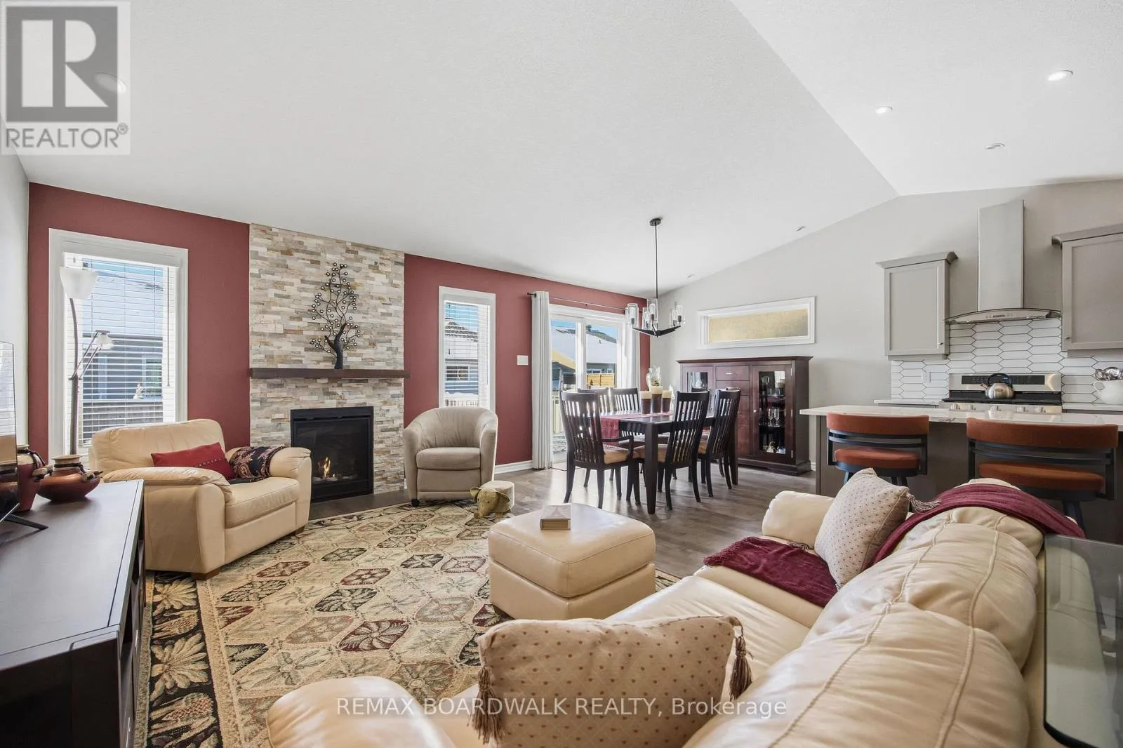 Cross Streets: Honeyborne St and McKenny St. ** Directions: Ottawa Street to Sadler, right on Honeyborne St, left on McKenny St. Beautiful bungalow located in Mill Run, one of Almonte's most sought-after communities, where pride of ownership is evident throughout. This thoughtfully designed 2+2 bedroom, 3 full bathroom home offers a bright, open-concept layout ideal for both everyday living and entertaining. Vaulted ceilings create an inviting sense of space in the main living area, complemented by rich hardwood floors and a cozy gas fireplace. The custom kitchen is truly the heart of the home, featuring ample cabinetry, stainless steel appliances, a large island with seating, and an impressive walk-in pantry. The primary suite has been redesigned to provide additional space and comfort, complete with a generous walk-in closet and a well-appointed 4-piece ensuite. A convenient main-level laundry room enhances the home's seamless flow. The finished lower level offers abundant additional living space, including a spacious recreation room with gas fireplace, a full bathroom, and two large bedrooms-perfect for guests, extended family, fitness room or a home office setup. This home also provides exceptional storage and peace of mind with a standby home generator. Step outside to enjoy a zero-maintenance yard and a professionally built shed, ideal for easy living. Situated in a prime location within walking distance to grocery stores, pharmacy, coffee shops and hardware store. Minutes to Almonte and its charming boutiques, cafés, and restaurants. This exceptional home blends comfort, convenience, and community, offering refined, low-maintenance living with vibrant small-town charm. (id:27476)