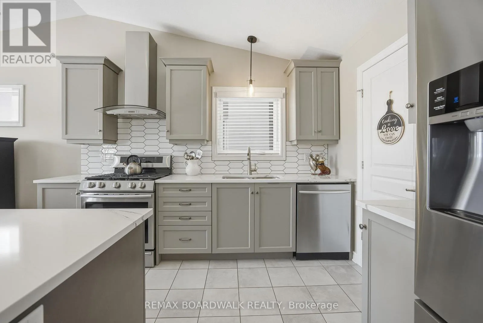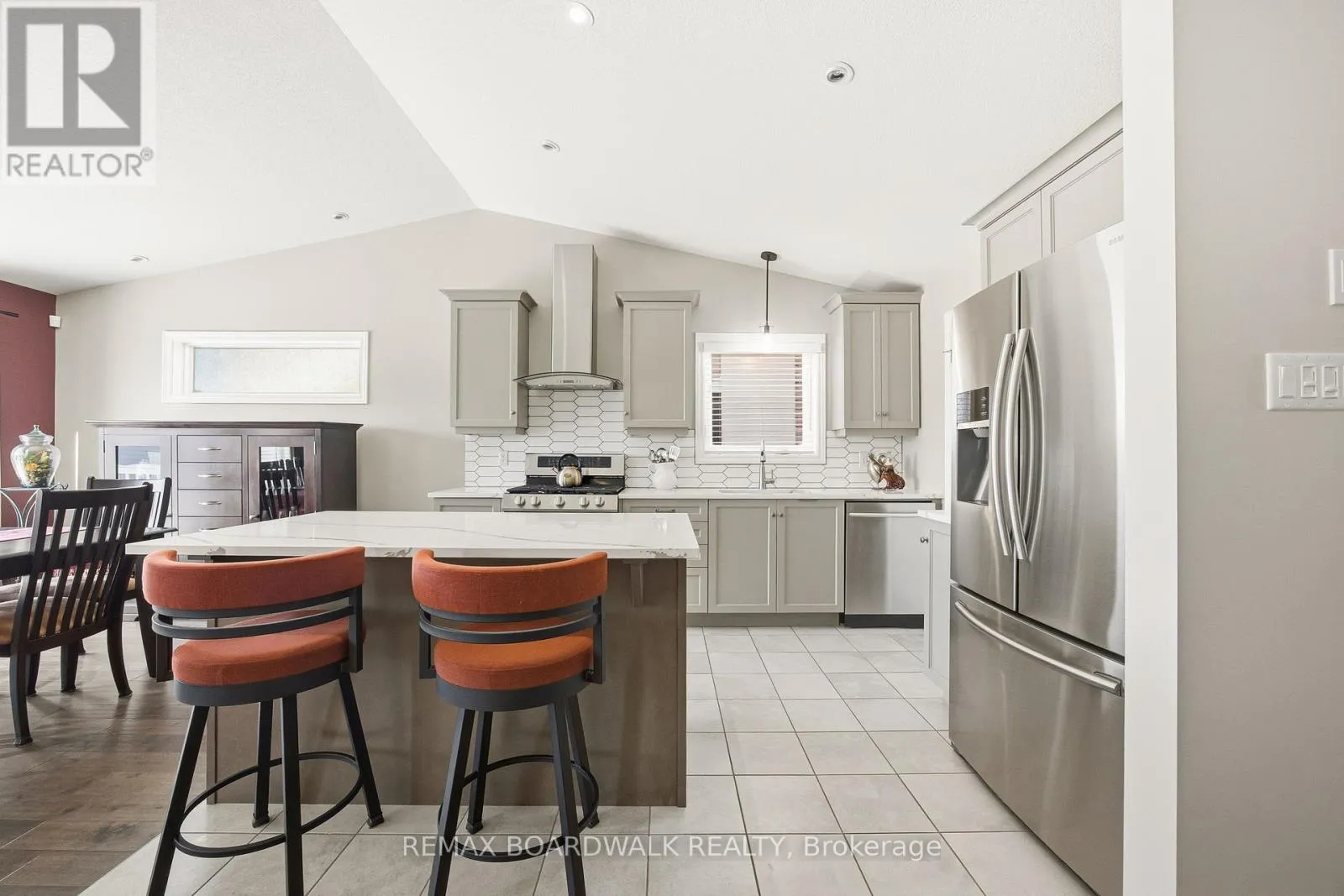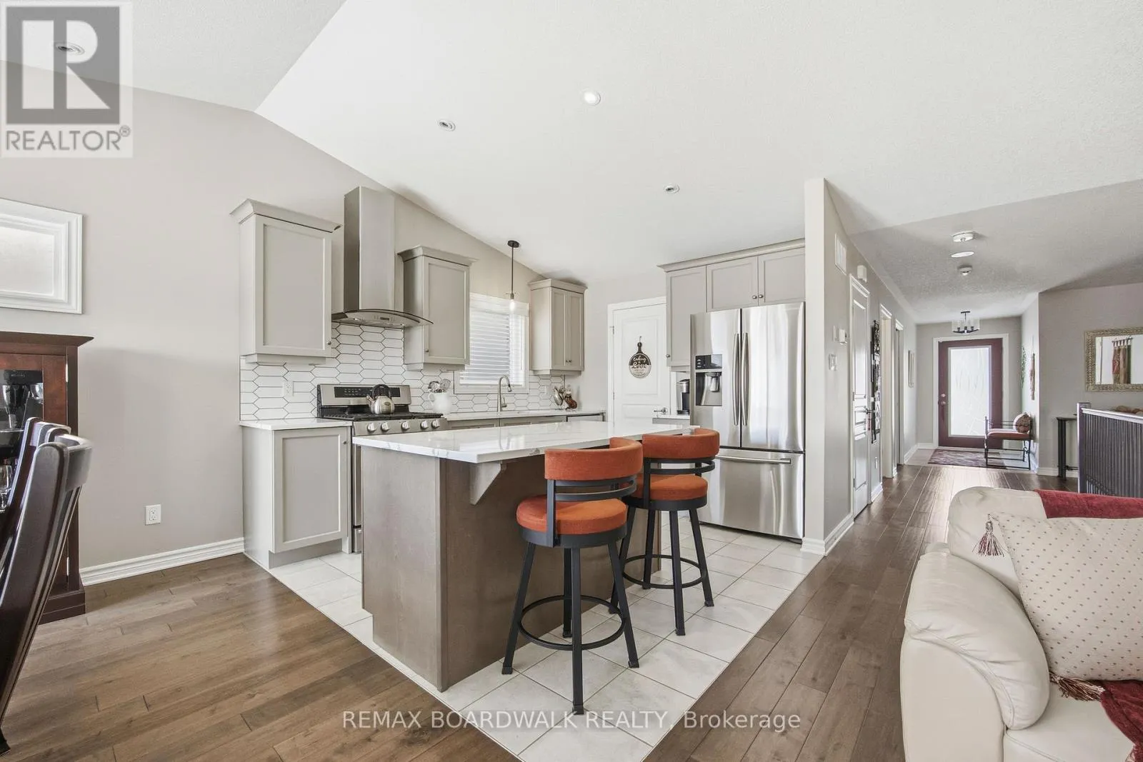 Cross Streets: Honeyborne St and McKenny St. ** Directions: Ottawa Street to Sadler, right on Honeyborne St, left on McKenny St. Beautiful bungalow located in Mill Run, one of Almonte's most sought-after communities, where pride of ownership is evident throughout. This thoughtfully designed 2+2 bedroom, 3 full bathroom home offers a bright, open-concept layout ideal for both everyday living and entertaining. Vaulted ceilings create an inviting sense of space in the main living area, complemented by rich hardwood floors and a cozy gas fireplace. The custom kitchen is truly the heart of the home, featuring ample cabinetry, stainless steel appliances, a large island with seating, and an impressive walk-in pantry. The primary suite has been redesigned to provide additional space and comfort, complete with a generous walk-in closet and a well-appointed 4-piece ensuite. A convenient main-level laundry room enhances the home's seamless flow. The finished lower level offers abundant additional living space, including a spacious recreation room with gas fireplace, a full bathroom, and two large bedrooms-perfect for guests, extended family, fitness room or a home office setup. This home also provides exceptional storage and peace of mind with a standby home generator. Step outside to enjoy a zero-maintenance yard and a professionally built shed, ideal for easy living. Situated in a prime location within walking distance to grocery stores, pharmacy, coffee shops and hardware store. Minutes to Almonte and its charming boutiques, cafés, and restaurants. This exceptional home blends comfort, convenience, and community, offering refined, low-maintenance living with vibrant small-town charm. (id:27476)