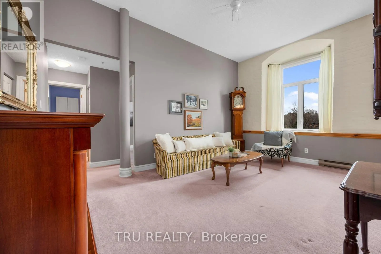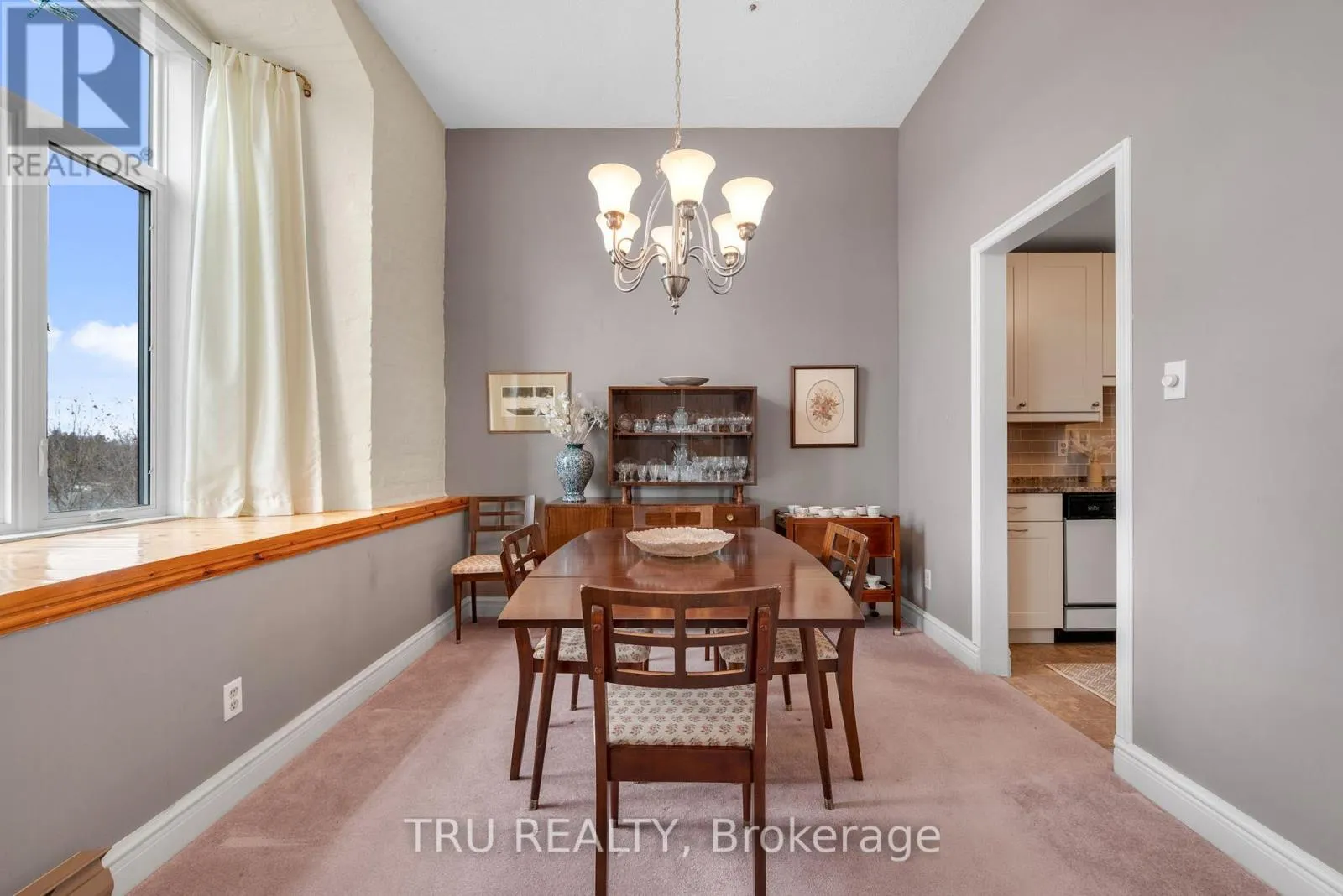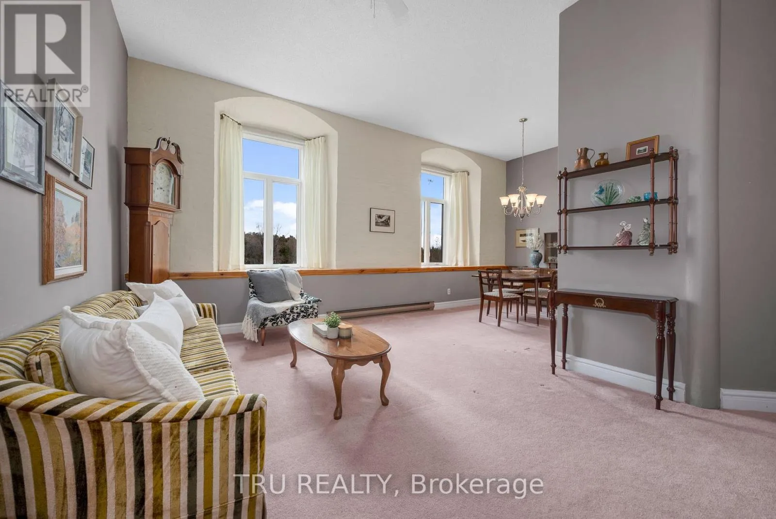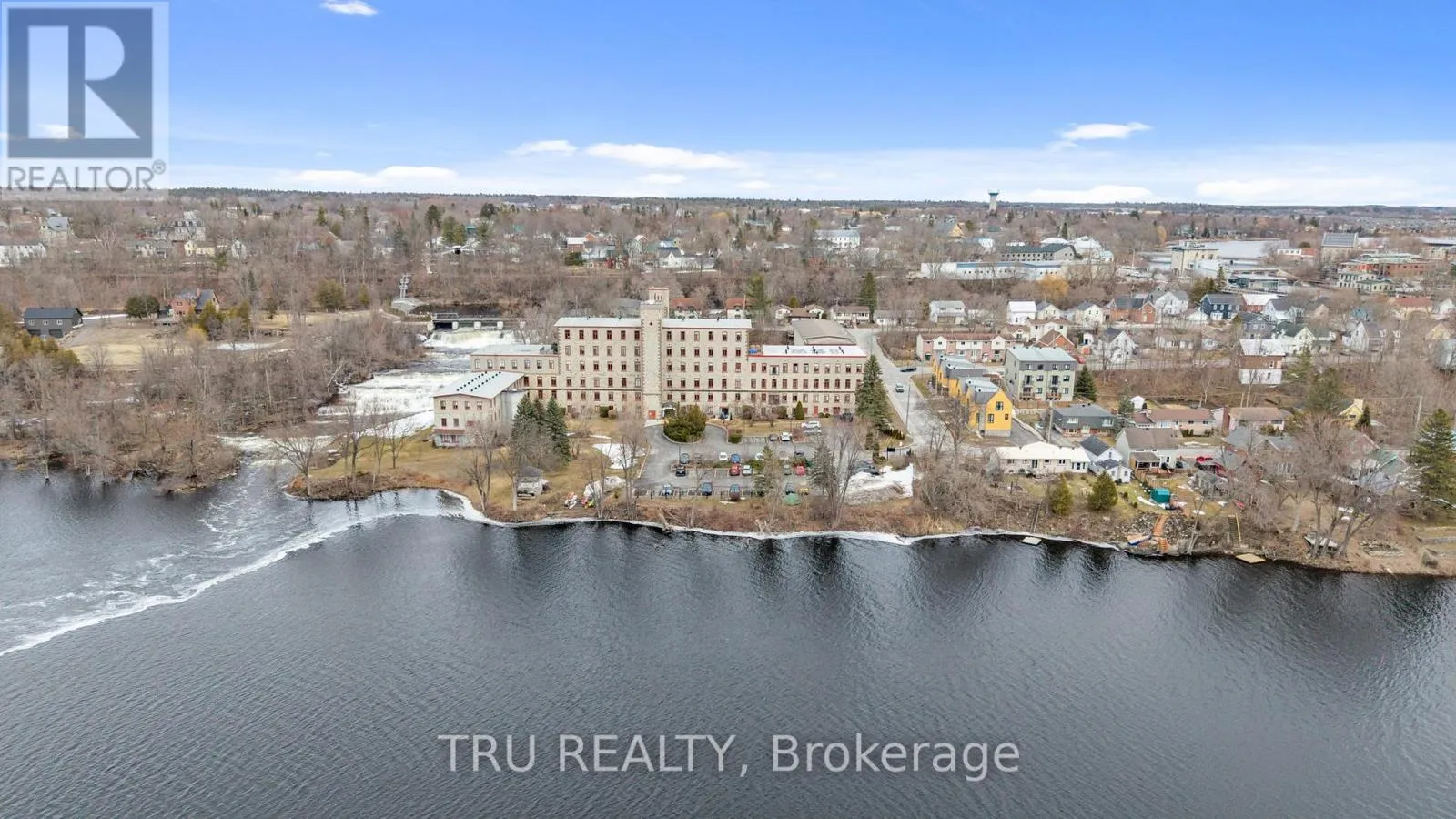 West off 417 March Rd Exit toward Almonte. Right on Mary St. Left on Rosamond St E. Welcome to 1 Rosamond Street, Unit #308 - an exceptional 1-bedroom plus den condo within the Rosamond Woollen Mill in the heart of Almonte! Once a thriving 19th-century textile mill overlooking the Mississippi River, this remarkable stone building has been thoughtfully transformed into a collection of stunning loft-style residences.This unique home showcases soaring ceilings, exposed architecture, and an open-concept layout that merges the building's rich heritage with modern comfort. Expansive windows capture unobstructed river views, creating a serene and inspiring atmosphere. The updated kitchen cabinetry adds a stylish, contemporary touch to this historic setting.The sun-drenched primary bedroom offers a peaceful retreat, while the versatile den is perfect for a guest space or home office. With two bathrooms, ground-floor access, and the convenience of parking and a storage locker, every detail has been carefully curated for today's lifestyle. Enjoy riverside living surrounded by Almonte's charm - steps from local cafés, boutique shops, scenic trails, and the Mississippi Valley Textile Museum, located in the mill's adjoining historic building. (id:27476)