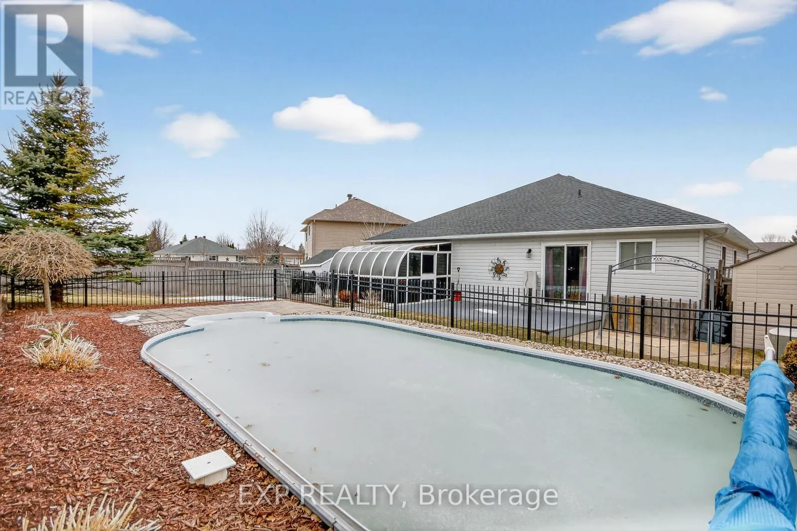 Cross Streets: King Street. ** Directions: In Almonte, drive Perth Street. Turn onto King Street. Turn right onto Metcalfe Drive. Your new home is on the left hand side. Welcome to 126 Metcalfe Drive, set in a quiet, mature neighbourhood in the heart of Almonte - an ideal place to put down roots. This well-maintained 2007 brick and vinyl bungalow offers a thoughtful layout perfect for family living. A bright front foyer leads into the inviting living room, complete with a large bay window, gas fireplace, and hardwood flooring. Adjoining dining room is perfect for family dinners and special occasions. Spacious U-shaped kitchen features two-tone cabinetry, stainless steel appliances, a large pantry, and a breakfast bar with seating for four - ideal for busy mornings or after-school snacks. The adjacent great room offers flexible space for everyday living, with patio doors leading to a 3-season solarium and a fully fenced backyard with a on-ground saltwater pool - ready for summer fun. Main floor also features a practical mudroom with laundry, ample storage, and convenient access to the double attached garage. Three well-sized bedrooms offer comfortable space for the whole family. Primary suite accommodates a king-sized bed and includes a walk-in closet, ensuite with walk-in shower, and direct access to the backyard-perfect for enjoying warm evenings or a midnight swim. Finished basement extends your living space with a large recreation area featuring a wet bar, ideal for entertaining or family movie nights. (Please forgive the Toronto Maple Leafs' paraphernalia.) There's also a home gym (some equipment included), a dedicated kids' play or hockey room, and potential for a fourth bedroom with a nearby powder room. Outside, the fully fenced yard provides a safe and private space for kids and pets to play, complete with an on-ground heated saltwater pool. Located within the sought-after Naismith School catchment and close to parks and amenities, this is a home designed for growing families to enjoy for years to come. (id:27476)