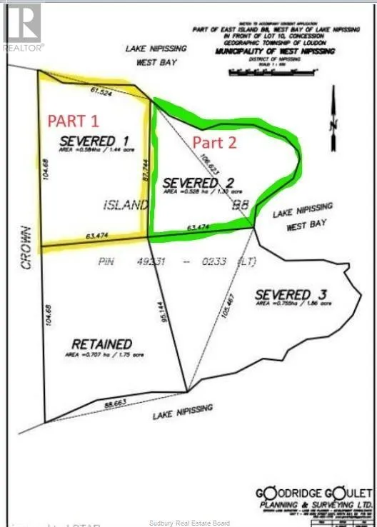 Located on the West Arm of Lake Nipissing. Just under 1.5 acre building lot with over 500' of shoreline and 40+ acres of Crown Land to explore. This 50 acre island has only 4 lots on the island and is just minutes boat ride from several launch areas where parking and boast slips may be arranged. The lots have been recently surveyed and approved for septic systems. Miles of boasting, fishing, safe swimming and the snowmobile trails are right along the island. Shopping and amenities in Noelville are 10 minutes away and Sturgeon Falls is 30 minutes. Whether you're planning on building your dream cottage or just setting up camp, don't miss out on the chance to make this picturesque property our own. Boat dock, parking and showers is $1600 for the season at a nearby resort about 400 meters from the island. (id:27476)