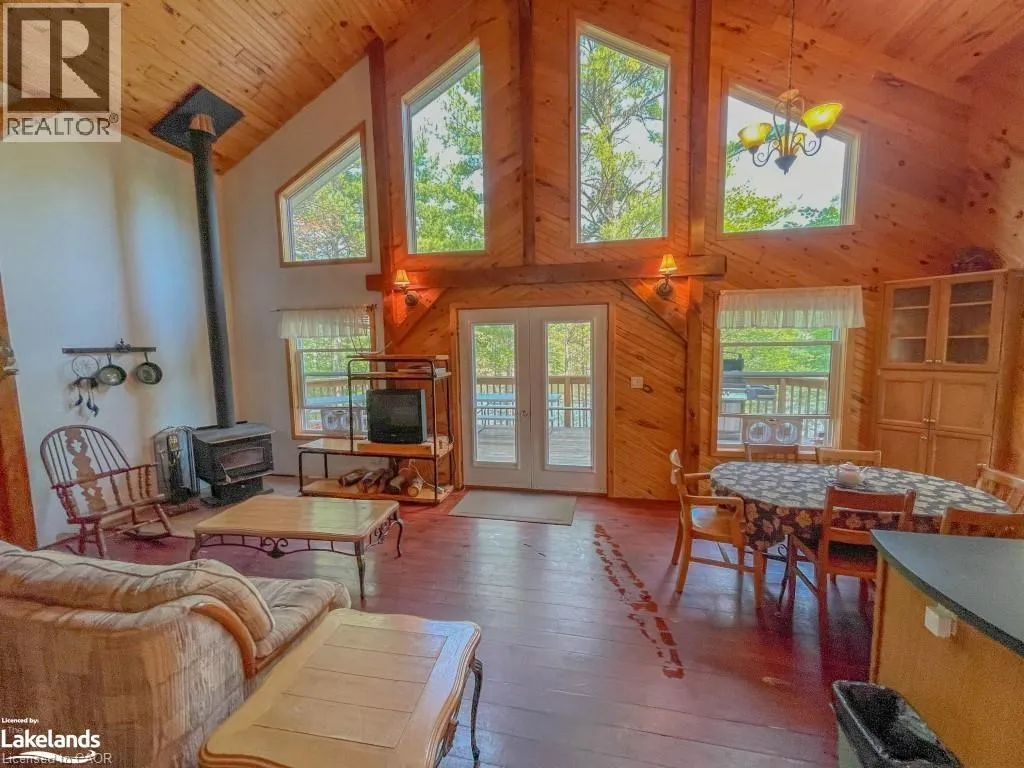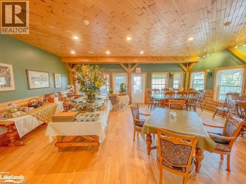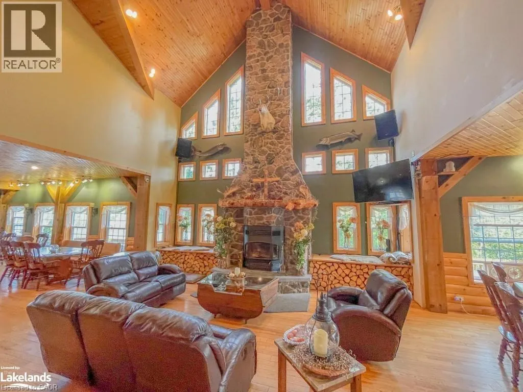 Take highway 400 / 69 north to hwy 64, turn right at Catholic Church in Noelville to follow hwy 64, turn right on Shuswap Rd and follow to Lemieux Rd. Located on the shores of West bay of Lake Nipissing. This beautiful resort sits in 35 acres of land Approx. 954 feet of lake front shoreline. Excluding the great lakes, lake Nipissing is the 3rd largest lake in Ontario, Canada with over 400km of scenic shoreline and peppered with islands. There are 7 winterized and custom built cabins fully equipped with refrigerator, store, coffee maker, microwave, oven, and private deck with gas barbecues for each. Three are 3 bedroom, two are 2 bedroom and one is a honeymoon suite. Detached 24' x 48x garage with 12 foot ceiling height with 3 sliding and one man door. 270 feet of lake front board walk, over 200 feet of floating dockage, public washrooms, recreational equipment storage and fishing cleaning facility, fuel depot and dual boat slip. 20 and 40 foot pontoon boat, five 16 foot aluminum fishing boats. Brand new high efficiency heating system for main lodge (electric / propane) 2026. Please call Listing Realtor to arrange mutually agree upon private showing date and time. (id:27476)