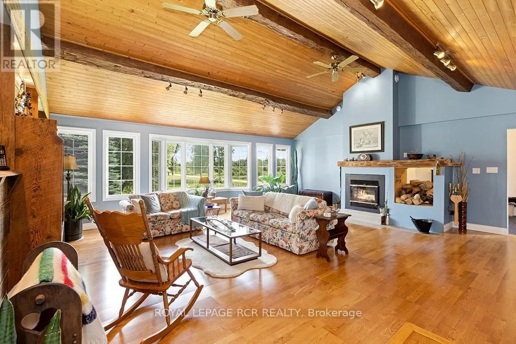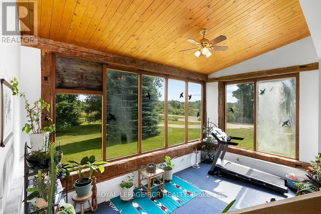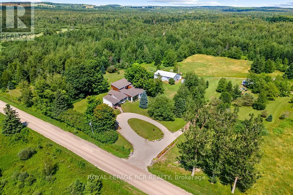 Blind Line/20th Sideroad Escape to your own private sanctuary. This beautiful 4-bedroom, 3 bathroom bungaloft rests on 150 acres of land complete with barn. It perfectly blends rustic charm with modern comfort and offerhis endless opportunities for outdoor adventures and peaceful living.This unique bungaloft design features ample space for family and guests offering over 3500 sq ft of finished living space. The main floor boasts a family room with soaring vaulted, beamed ceilings, a cozy wood burning fireplace, and expansive windows that invite natural light. Theres an eat in kitchen, an oversized living & dining area, a huge solarium, 3 bedrooms, 2 bathrooms and a laundry room but wait, theres more. The upper-level primary suite is a private retreat, complete with a unique ensuite (requires completion) a w/I closet, and a walk-out deck for enjoying your morning coffee or stargazing at night. Hardwood floors, in-floor zoned heating, and walk-in closets in all the bedrooms add to the comfort and functionality of the home. Need more room? The unfinished basement with a walk-up entrance offers potential for an in-law suite or secondary dwelling.Explore your very own network of trails for hiking, ATV riding, snowmobiling, and horseback riding. With lush hardwood forests, a tranquil creek for fishing, and open spaces for hunting, the recreational possibilities are endless.Spend warm evenings on the spacious deck, complete with 2 ornamental ponds, waterfalls, a beautiful gazebo all surrounded by gorgeous perennial gardens.Located just minutes from Orangeville and Shelburne where all of your amenities are accessible yet tucked away for ultimate privacy and tranquility. Nature, hobby farm, gardens...just imagine! Endless possibilities. (id:27476)