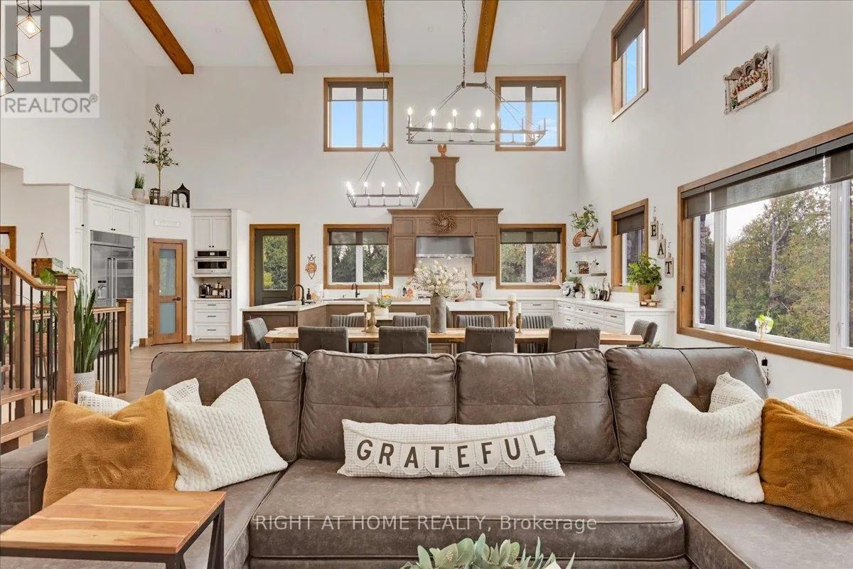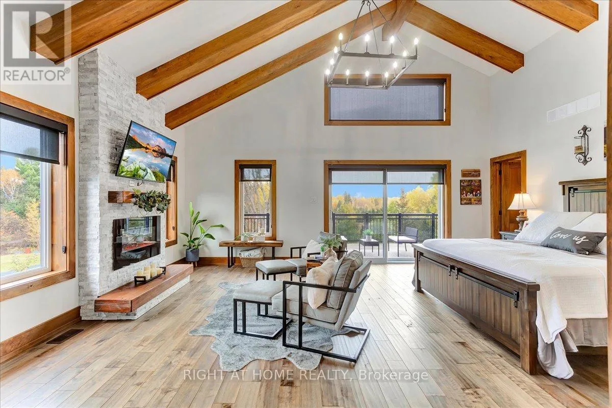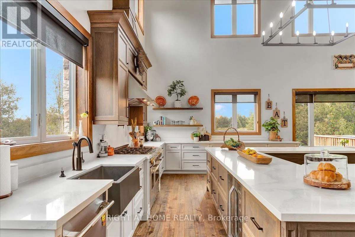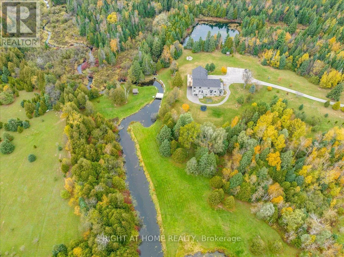 HYWY 10 North of 20th sdrd Client RemarksParadise Awaits you......Modern finish, picturesque streams and ponds, in-law suite, full gym and a private primary suite all on 49.25 Acres * This Custom built 5+1 bedroom home sits on your own park like property. Custom Built Home built in 2021 w/Tarion new home Warranty. Drive down a long winding drive to home which is set back from the road for ultimate privacy. Over 5800 sq ft of living space perfect for a large family. Main floor features vaulted ceiling in kitchen and Great room, 4 bedrooms and laundry. Massive Custom Kitchen with banquette island, 48" gas range and 48" Refrigerator, beverage fridge and built in pantry. Hardwood Floors and Wood Trim Thru-out, Each bedroom has a walk in closet and ensuite bath. Second floor master suite with vaulted ceilings with access to a large patio. Home equipped with GENERAC generator and EV charger. New underground 400 AMP electrical service to property, 200 amp to home, 200 amp remaining for potential Outdoor building (drawings previously approved by NVCA)Client Remarks **EXTRAS** Premium JennAir Appliances : 48 inch Fridge, 48 inch Range Stove, 48 inch Exhaust fan, built in Microwave oven, beverage fridge, Basement Fridge, Stove & built in Microwave/exhaust fan, 3 washers, 3 dryers, Generac generator, EV charger (id:27476)
