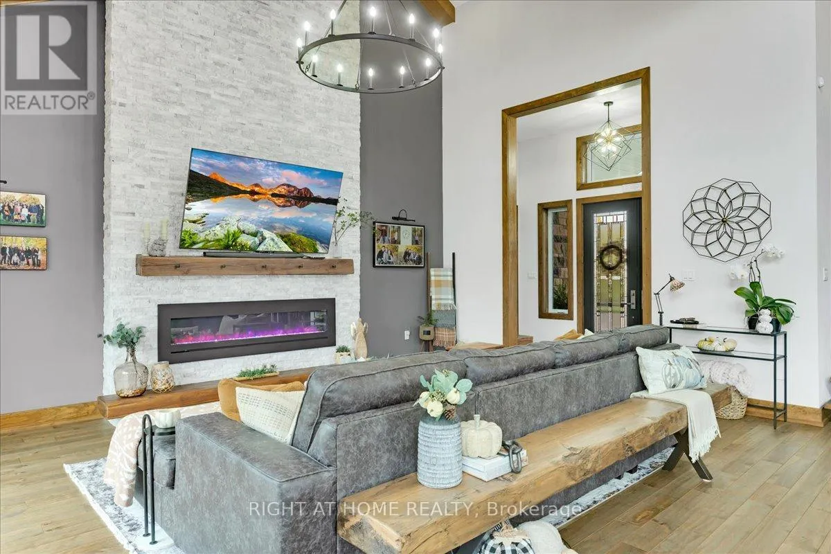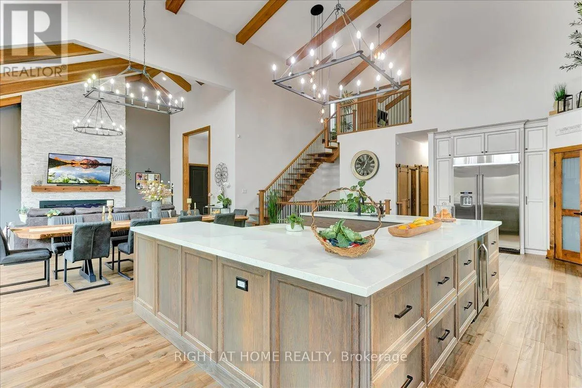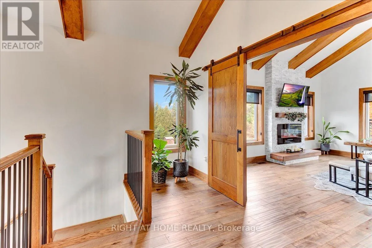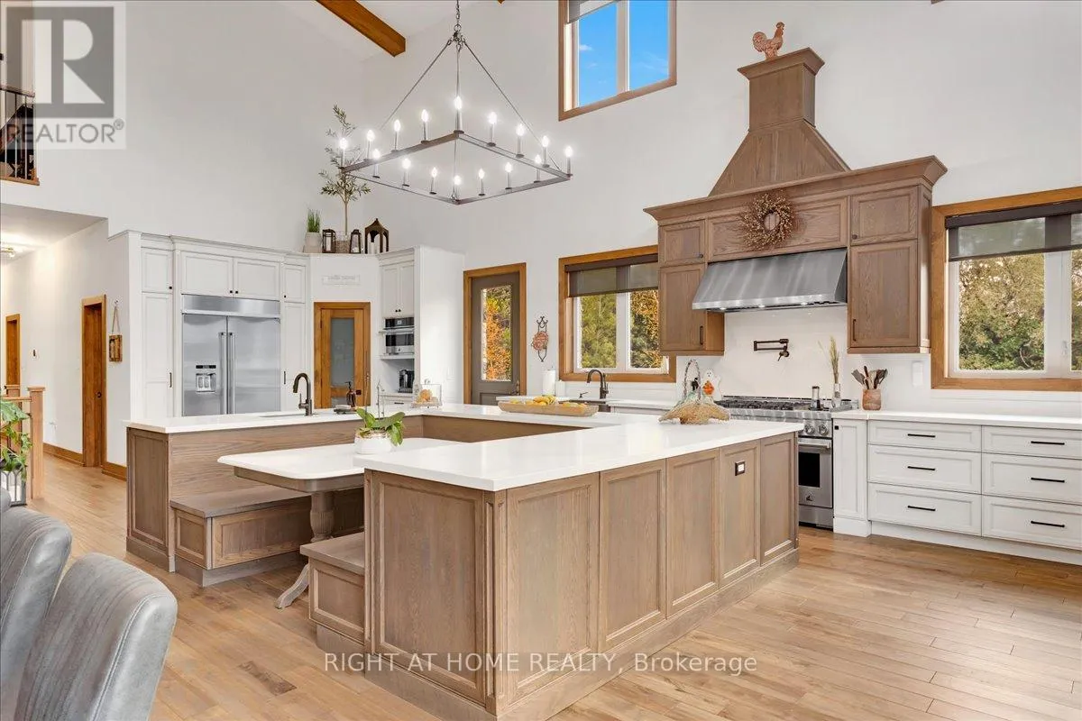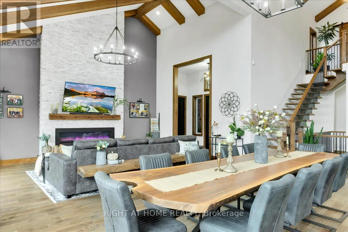 HYWY 10 North of 20th sdrd Client RemarksParadise Awaits you......Modern finish, picturesque streams and ponds, in-law suite, full gym and a private primary suite all on 49.25 Acres * This Custom built 5+1 bedroom home sits on your own park like property. Custom Built Home built in 2021 w/Tarion new home Warranty. Drive down a long winding drive to home which is set back from the road for ultimate privacy. Over 5800 sq ft of living space perfect for a large family. Main floor features vaulted ceiling in kitchen and Great room, 4 bedrooms and laundry. Massive Custom Kitchen with banquette island, 48" gas range and 48" Refrigerator, beverage fridge and built in pantry. Hardwood Floors and Wood Trim Thru-out, Each bedroom has a walk in closet and ensuite bath. Second floor master suite with vaulted ceilings with access to a large patio. Home equipped with GENERAC generator and EV charger. New underground 400 AMP electrical service to property, 200 amp to home, 200 amp remaining for potential Outdoor building (drawings previously approved by NVCA)Client Remarks **EXTRAS** Premium JennAir Appliances : 48 inch Fridge, 48 inch Range Stove, 48 inch Exhaust fan, built in Microwave oven, beverage fridge, Basement Fridge, Stove & built in Microwave/exhaust fan, 3 washers, 3 dryers, Generac generator, EV charger (id:27476)