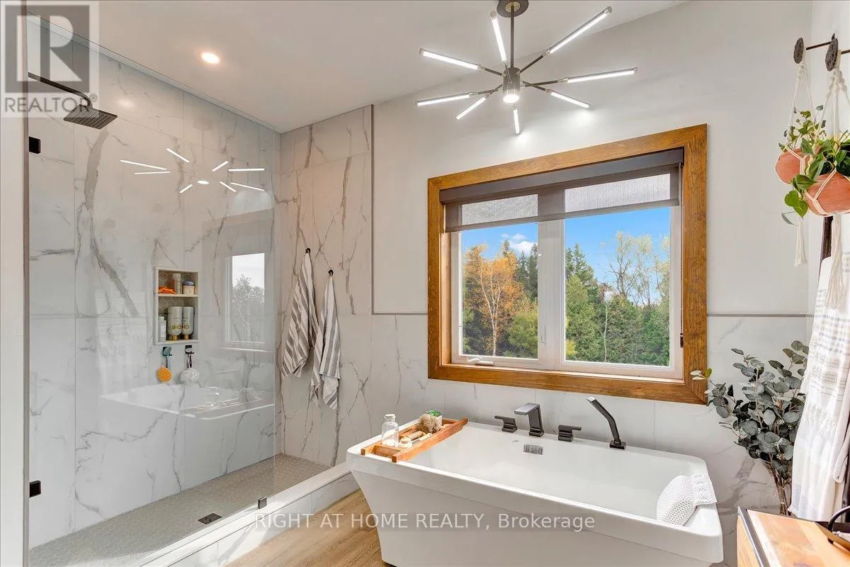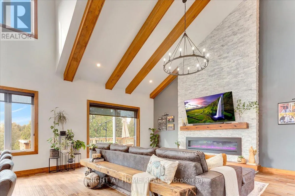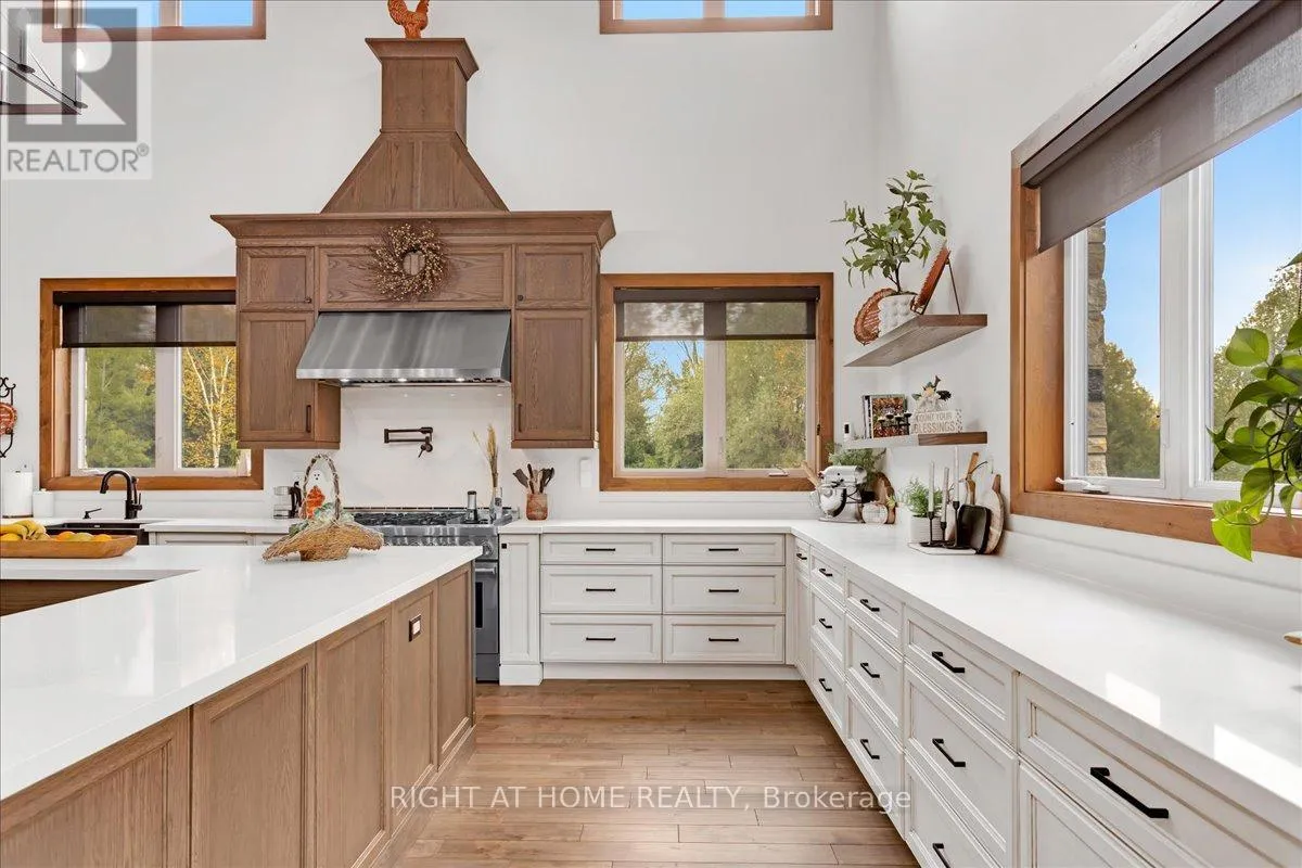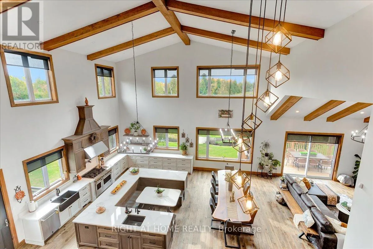 HYWY 10 North of 20th sdrd Client RemarksParadise Awaits you......Modern finish, picturesque streams and ponds, in-law suite, full gym and a private primary suite all on 49.25 Acres * This Custom built 5+1 bedroom home sits on your own park like property. Custom Built Home built in 2021 w/Tarion new home Warranty. Drive down a long winding drive to home which is set back from the road for ultimate privacy. Over 5800 sq ft of living space perfect for a large family. Main floor features vaulted ceiling in kitchen and Great room, 4 bedrooms and laundry. Massive Custom Kitchen with banquette island, 48" gas range and 48" Refrigerator, beverage fridge and built in pantry. Hardwood Floors and Wood Trim Thru-out, Each bedroom has a walk in closet and ensuite bath. Second floor master suite with vaulted ceilings with access to a large patio. Home equipped with GENERAC generator and EV charger. New underground 400 AMP electrical service to property, 200 amp to home, 200 amp remaining for potential Outdoor building (drawings previously approved by NVCA)Client Remarks **EXTRAS** Premium JennAir Appliances : 48 inch Fridge, 48 inch Range Stove, 48 inch Exhaust fan, built in Microwave oven, beverage fridge, Basement Fridge, Stove & built in Microwave/exhaust fan, 3 washers, 3 dryers, Generac generator, EV charger (id:27476)