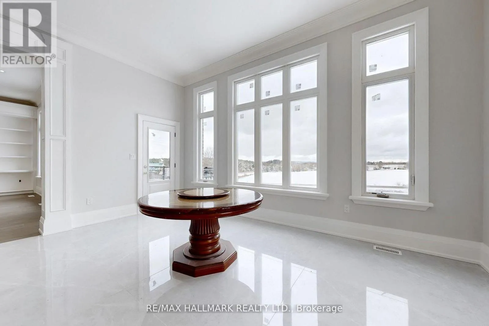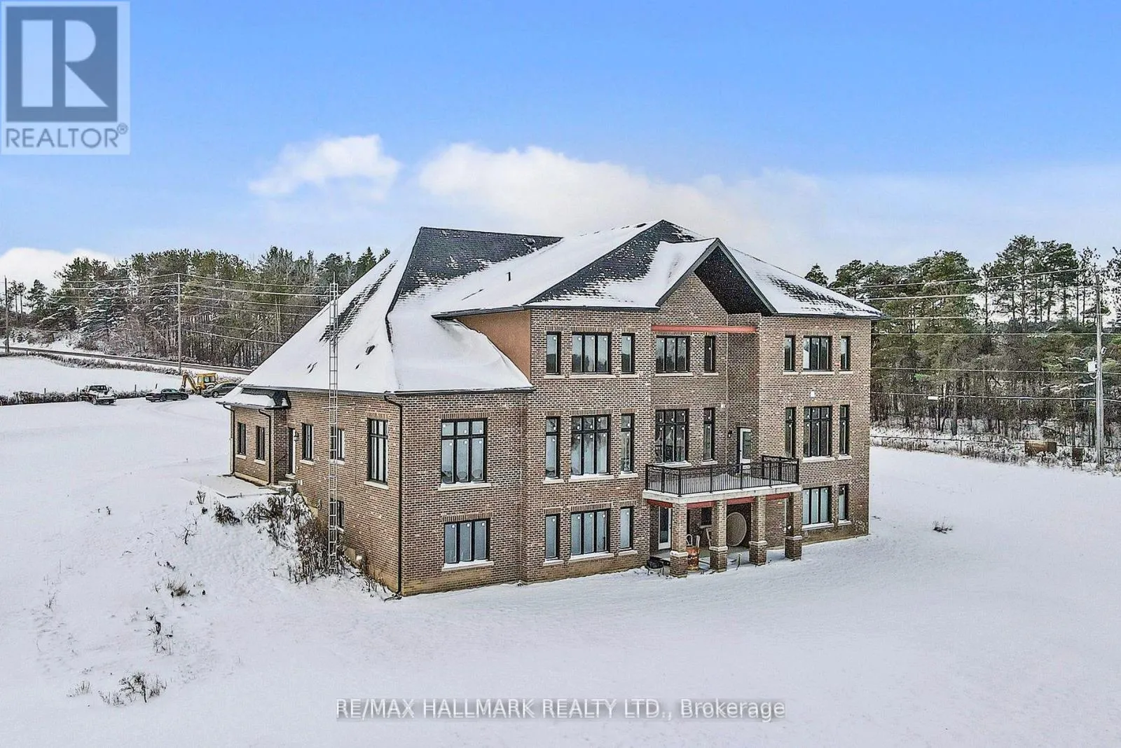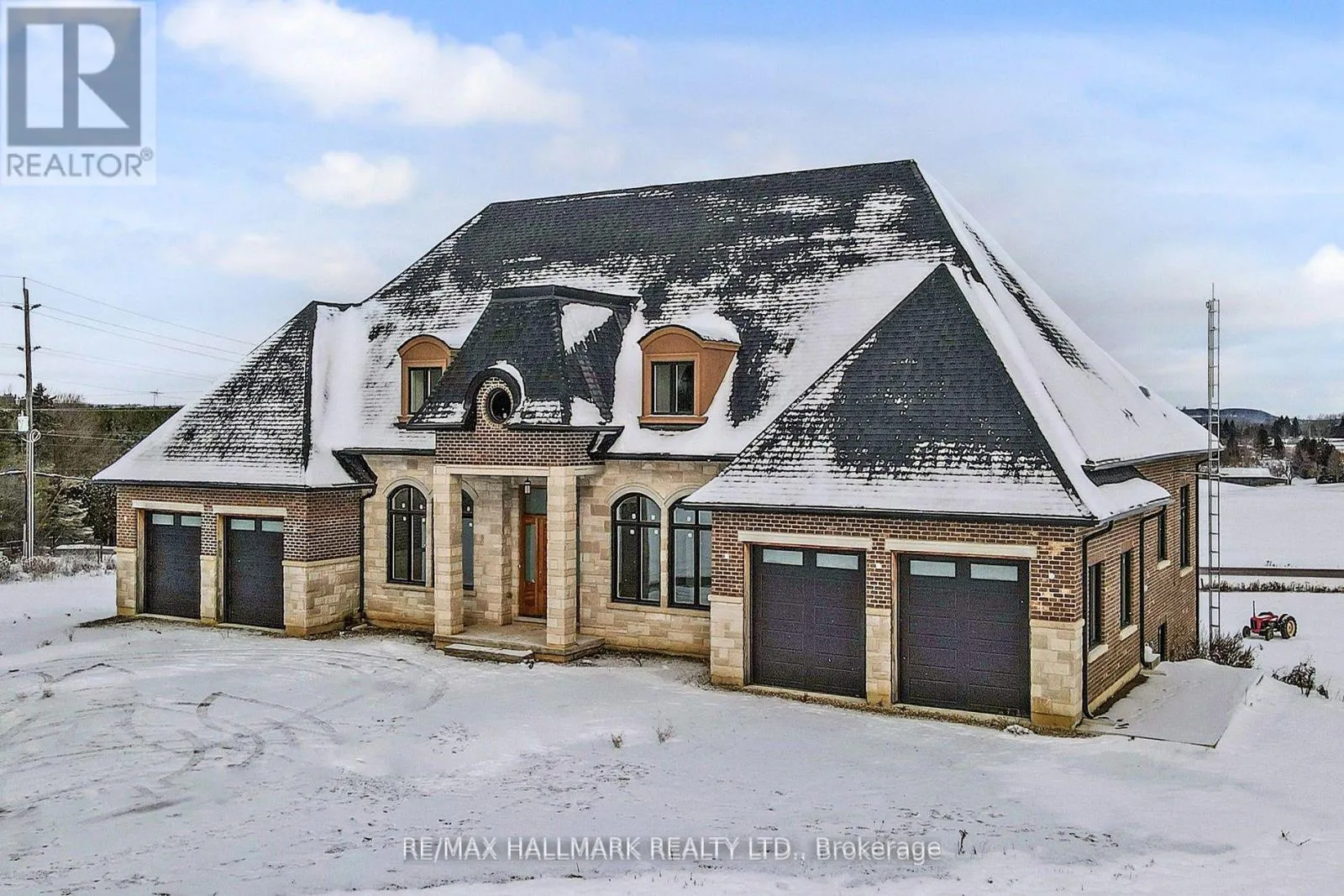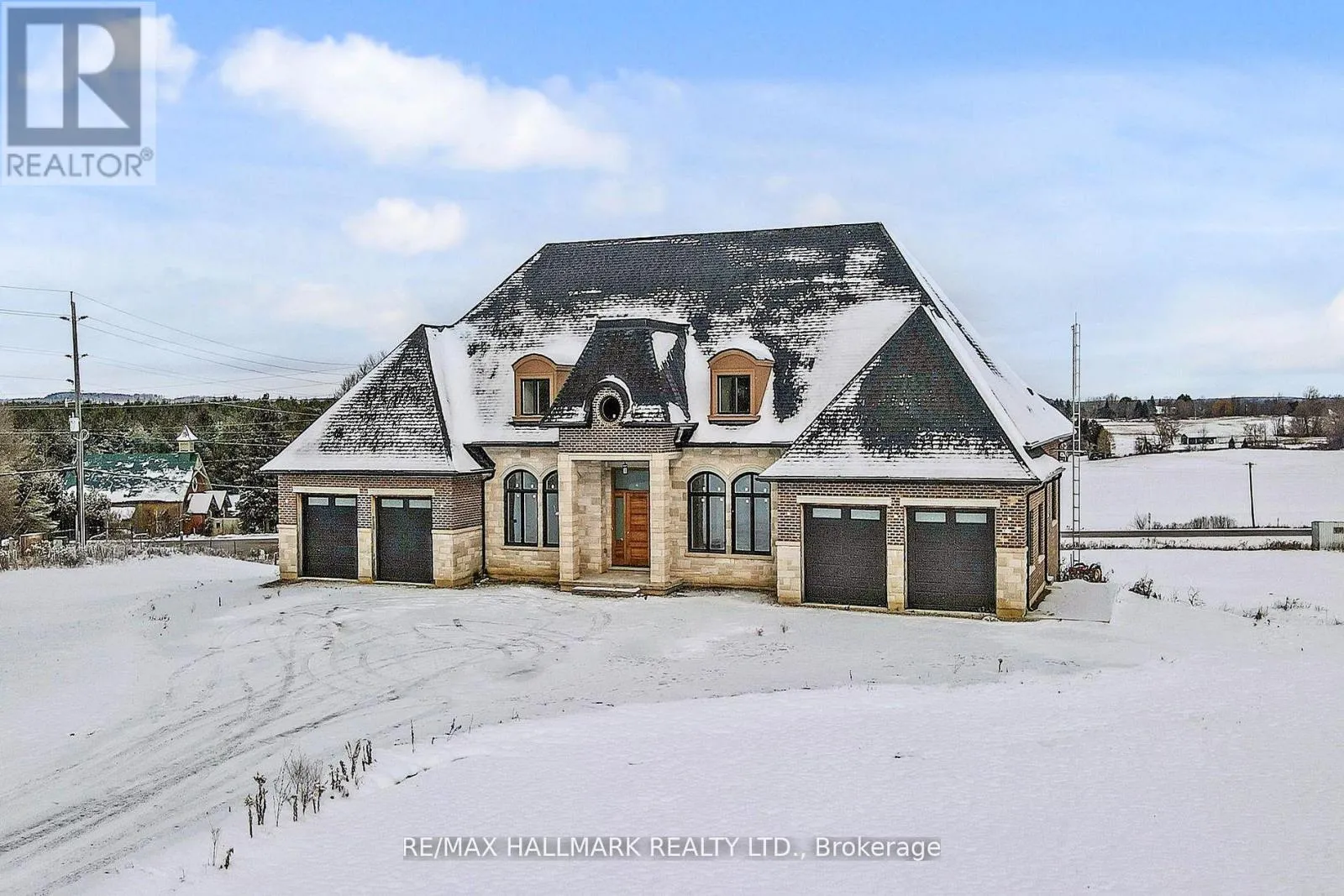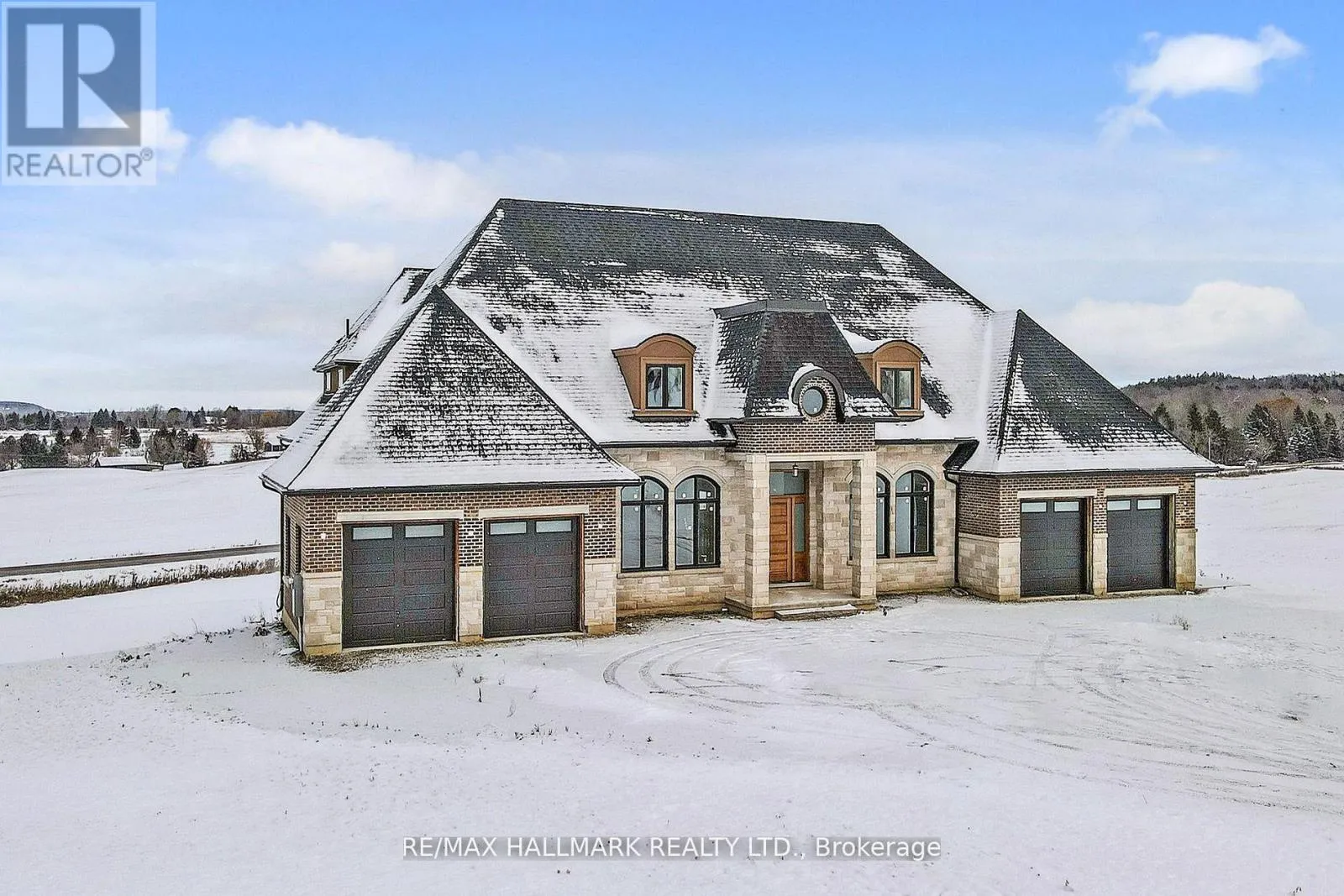 Cross Streets: Side Rd 5/ 2 Line EHS. ** Directions: South of Side Rd 5, East of 2 Line EHS. Opportunity knocks! Why not take advantage of this extraordinary, custom-built estate-like home offering over 7,000 sq ft of luxury craftsmanship, set gracefully upon 3 acres. The property boasts two road frontages and a private drive leading to dual double-car garages. Designed to capture stunning panoramic north views, the main floor features a spacious living room, elegant dining room with servery, and a gourmet chef's kitchen with premium finishes, a large eat-in area, and a walkout to a north-facing balcony. Off the kitchen, a beautiful northeast-facing sunroom provides the perfect spot to enjoy peaceful morning sunrises. Enhancing the home's functionality are a convenient secondary spice kitchen, two mudrooms, a full laundry room, and a lavish main-floor primary suite-complete with sitting area, walk-in closet, and luxurious 5-piece ensuite.The second level offers four generous bedrooms, each with its own private ensuite bath, including a secondary primary suite ideal for extended family or guests. A grand entertainment room with a vaulted ceiling anchors the upper level, creating an impressive gathering space. The home showcases flat ceilings, pot lights throughout, detailed mouldings, and a striking wrought-iron staircase that sets the tone for its refined elegance.The walkout basement, left unfinished, awaits your personal vision and offers tremendous future potential with direct access to the backyard. This exceptional residence blends thoughtful design, luxury finishes, and breathtaking views. A rare opportunity to own a truly remarkable custom home unlike any other. (id:27476)