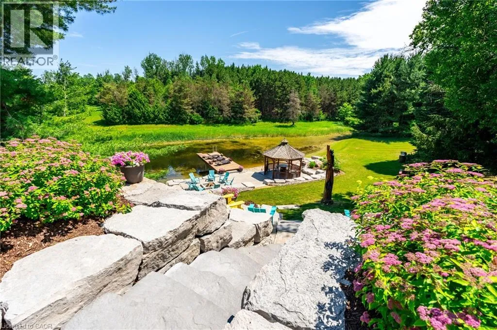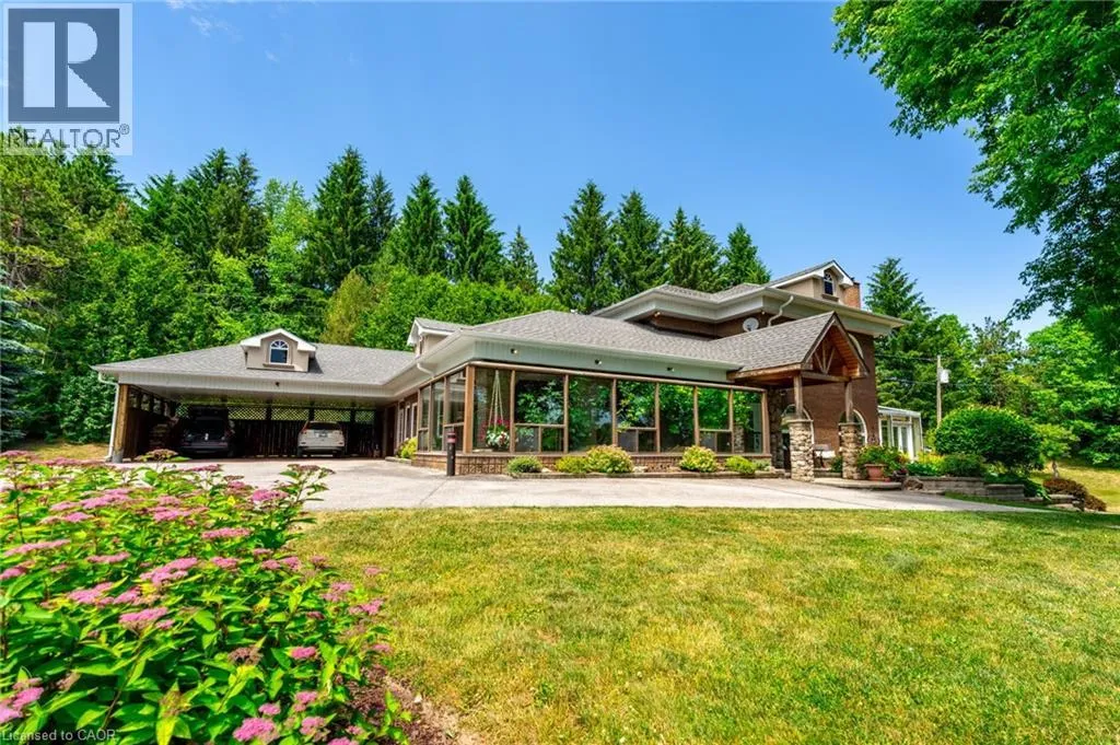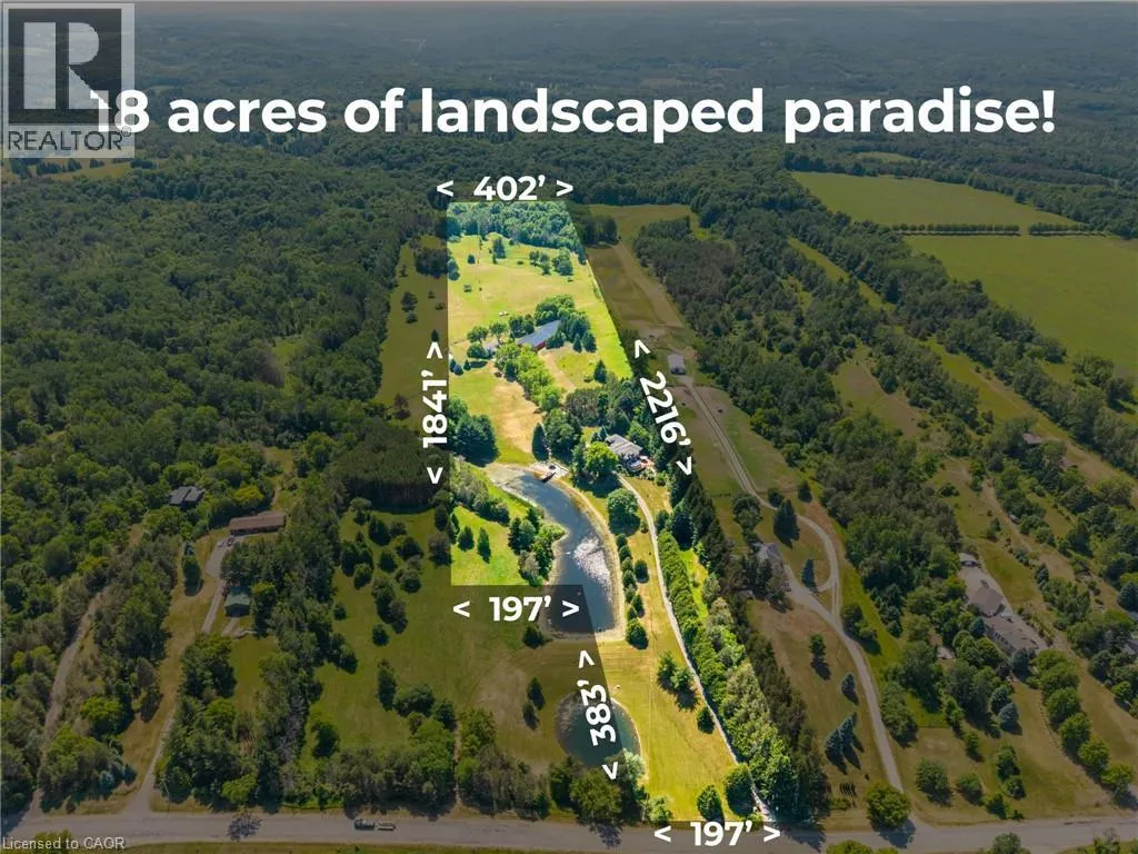 South of Hockley Road Welcome to 994030 Mono Adjala Townline - a breathtaking country estate where refined living meets natural beauty across 18 private acres. With 2 beautiful homes, plus a 9,300 sq ft outbuilding, this one-of-a-kind property offers total privacy, timeless design, and boundless opportunity - all just an hour from Toronto and minutes to Alliston or Orangeville. MAIN HOUSE: The 4-bedroom, 4-bath main residence offers over 3,100 sq ft of warm, elegant living space. Oversized windows frame postcard views in every direction, while a wood-burning fireplace, and natural finishes create a sense of calm and comfort throughout. Ideal for entertaining, hosting family, or simply enjoying the quiet rhythm of country life. GUEST HOUSE: Set privately across the property, a fully self-contained 3-bedroom, 5-bathroom, 2,900+ sq ft guest house adds unmatched flexibility. With three fully finished floors, a walk-out basement and massive deck, it's perfect for multi-generational living, visiting guests, or as a potential luxury rental income stream. OUTBUILDING: At the heart of the property stands a striking 9,300+ sq ft outbuilding with soaring ceilings, a new metal roof (2023), and 200 AMP service - ideal for a hobby farm, collectors, or just about any venture you can dream up. Outside, the landscape is pure magic: walk forested trails, explore rolling meadows, and fish in your own spring-fed pond. Spend the day paddle boarding, swimming, or lounging at your private beach, then gather by the firepit as the sun sets and stars emerge. Whether you're seeking a private family oasis, a four-season escape, or a legacy property to grow into for generations, this once-in-a-lifetime estate is ready to welcome its next chapter. Don't miss the INCREDIBLE Video Tour, and full floor plans for both homes and the outbuilding. (id:27476)