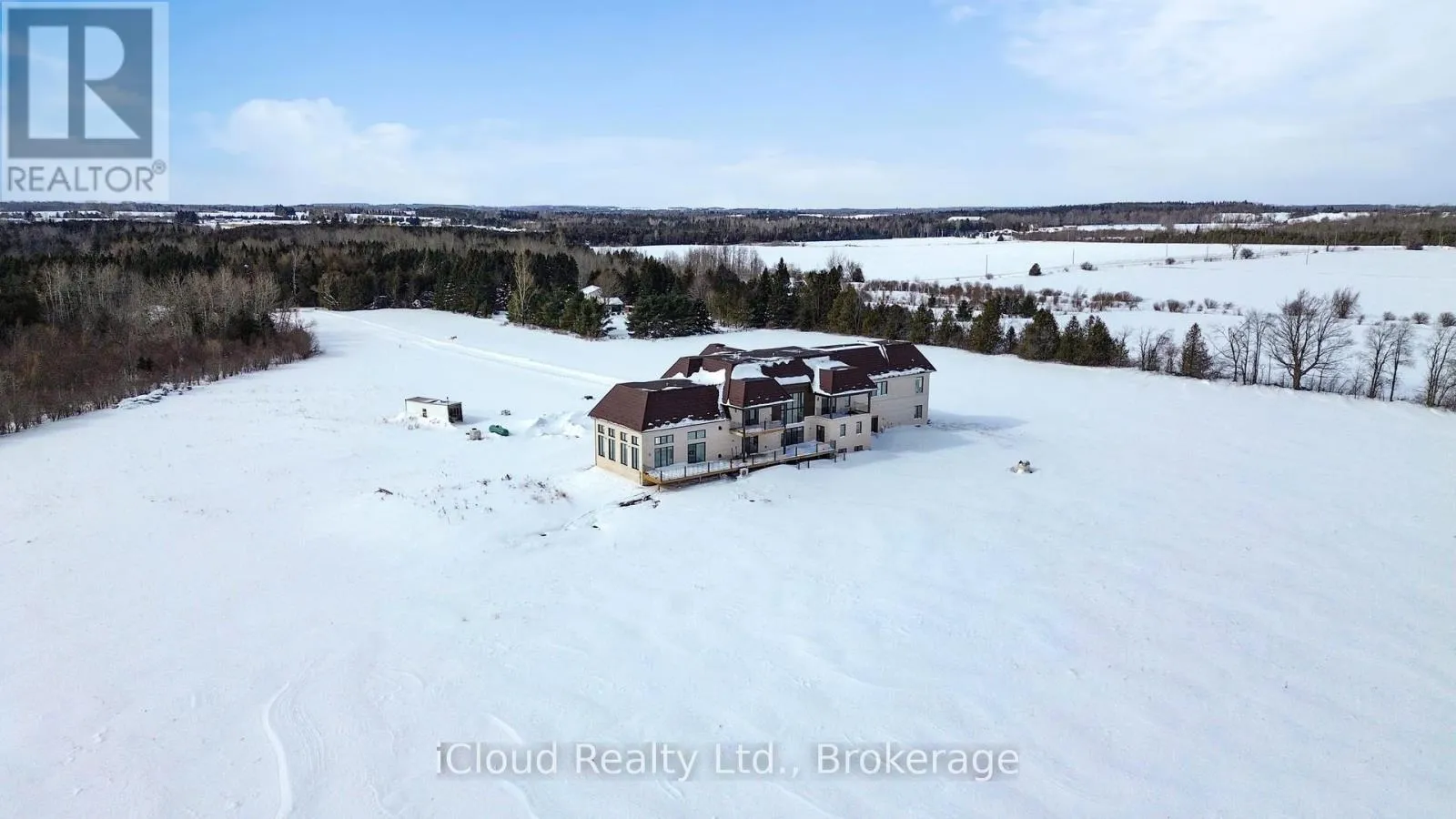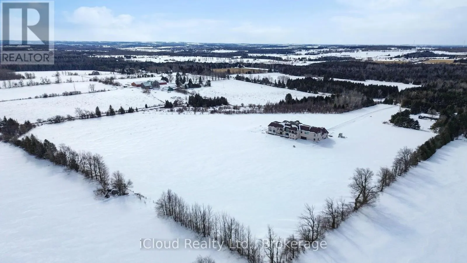 Highway 10/20th Sideroad/Mono Centre Rd Custom-built estate on 23 pristine, flat acres in the heart of Mono offering over 8,600 sq ft of luxurious living space and less than one year old. This exceptional residence features a grand open-to-above foyer and family room, expansive principal living and dining areas, and a thoughtfully designed layout including a main-floor bedroom suite and four additional bedrooms upstairs with convenient second-floor laundry. Elegant wainscoting enhances the entrance, main living areas, select rooms, and the second-floor hallway, adding timeless architectural detail throughout. The chef-inspired kitchen is equipped with premium double-door Sub-Zero refrigeration, a 48-inch gas range with pot filler, extensive custom cabinetry, and a separate spice kitchen with abundant additional storage. Custom closet organizers are installed in all bedrooms, along with built-in storage in the mudroom and laundry room for enhanced functionality. Ultra-thin electric radiant heated floors beneath high-end tile provide added comfort in the entrance, great room, and all bathrooms. A striking fireplace finished with large-format European tile creates a dramatic focal point in the main living area. A modern heat pump system and spray foam insulation in all exterior walls ensure superior efficiency and year-round comfort. The fully finished walk-up basement offers both interior and exterior access and includes a private theatre room and spacious recreation areas. Designed for elevated living, the home also features a private residential elevator and a large indoor in-ground pool for year-round enjoyment. Exterior highlights include a timeless limestone façade, classic brick siding, durable metal roof with lifetime warranty, and striking metal front and side doors with glass enclosure. Two balconies overlook the scenic countryside, while the expansive acreage offers privacy and long-term value-approximately 10 minutes from Orangeville and all essential amenities. (id:27476)