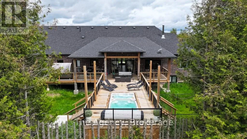 Side Rd 10 and Hwy 10 Offered for the first time, this custom-built home in Mono is a rare opportunity combining luxury, space, and privacy. With over 5,000 sq. ft. of living space, the property features a striking stone and brick exterior and an interior designed for elegance and functionality, including 10-foot ceilings, 8-foot doors, and Douglas fir beams. The chef's kitchen with a double island opens directly to a spacious deck, perfect for entertaining and seamless indoor-outdoor living. The primary suite boasts a spa-inspired ensuite and two walk-in closets. This home offers 3+2 bedrooms and 3.5 bathrooms, with a fully finished lower level featuring 9-foot ceilings, in-floor heating, a gym, and an in-law suite with a private entrance. The heated and insulated garage is versatile, with high ceilings suitable for a lift, a Tesla charger, and a backup generator. The meticulously maintained grounds include 20 years of landscaping, a mature cedar tree line, a gated entry with power available, additional parking pads, an invisible fence with a dog run, and a spring-fed river with speckled trout. The driveway has been recently paved. A one-of-a-kind property offering privacy, luxury, and a connection to nature. (id:27476)