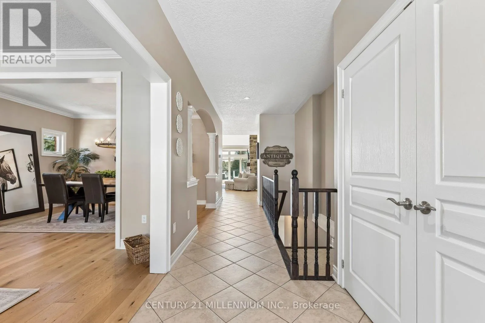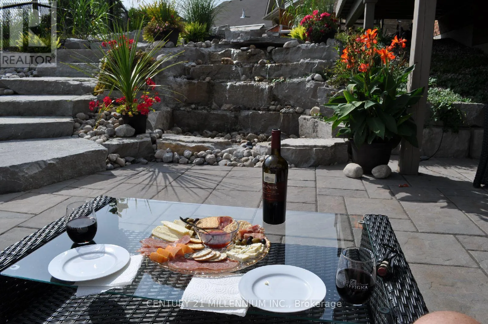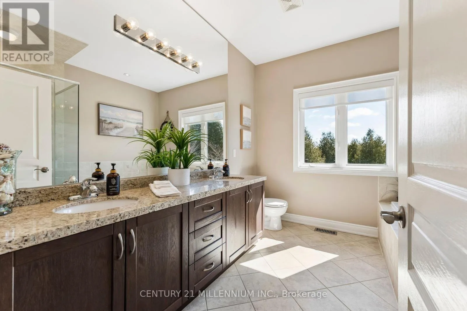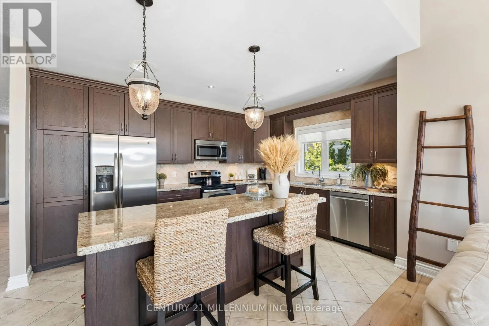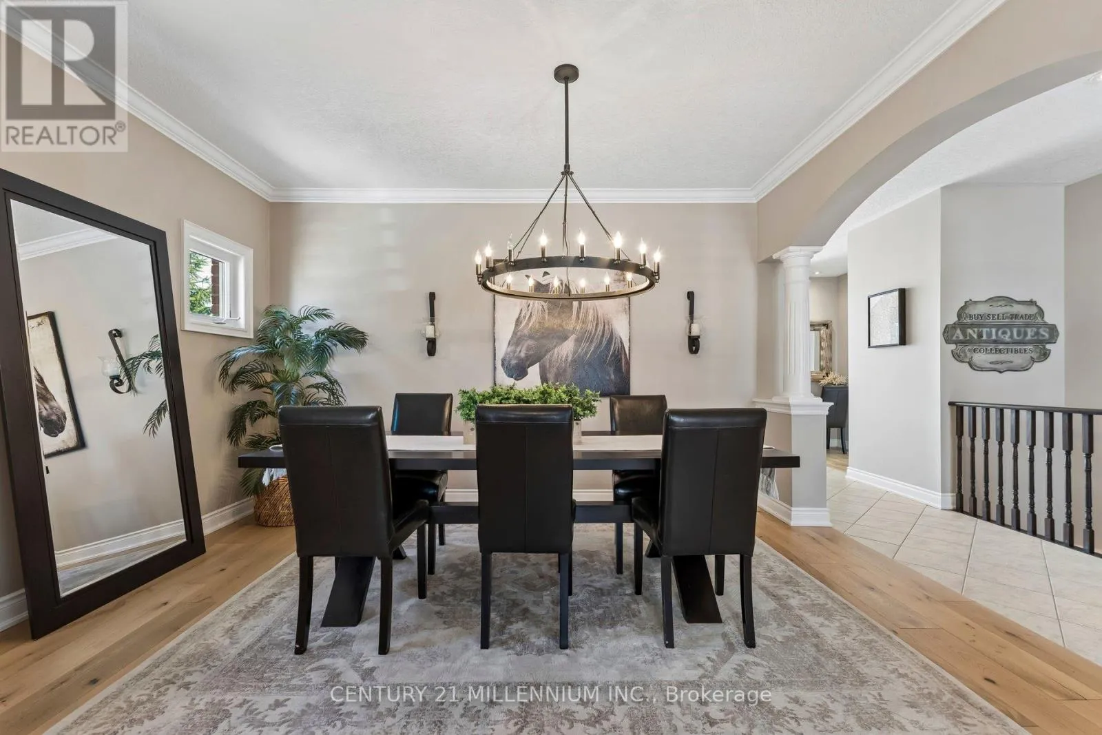 Cross Streets: AKA 123 Strathmore Way, Mono. ** Directions: Kingfisher Dr to Carolina to Strathmore Way #123. Welcome to this beautifully maintained 2+2 bedroom Strathmore Model bungalow located in the highly sought-after Watermark Adult Lifestyle Community in Mono and set on a premium ravine lot with breathtaking views over Monora Park. Offering approx. 1,983 sq ft on the main level plus a builder-finished walkout basement, this home delivers nearly 3,200 sq ft of finished living space. The main floor features 9-ft ceilings, wide-plank white oak engineered hardwood (2023), and elegant living and dining spaces with crown moulding and upgraded finishes. The stunning great room boasts vaulted ceilings, floor-to-ceiling windows with transoms, and a striking custom chandelier, creating a warm, resort-inspired feel. Two custom floor-to-ceiling gas fireplaces add both style and comfort. The upgraded kitchen offers oak cabinetry, granite counters, custom backsplash, and a functional layout. The primary suite features scenic park views and a spa-like 5-piece ensuite, while a second bedroom/office and 3-piece bath complete the main level. The bright walkout basement includes two additional bedrooms, a full bath, and a spacious open-concept living area with direct backyard access. Professionally landscaped grounds, featured in Living Spaces magazine, showcase a private backyard oasis with a water feature, stonework, and an extended deck with glass railing and retractable awning overlooking the ravine. Residents enjoy access to a private community centre with fitness, theatre, party room, and more, all steps to trails and just minutes to Orangeville amenities, Hockley Valley Resort, and Island Lake Conservation Area. (id:27476)