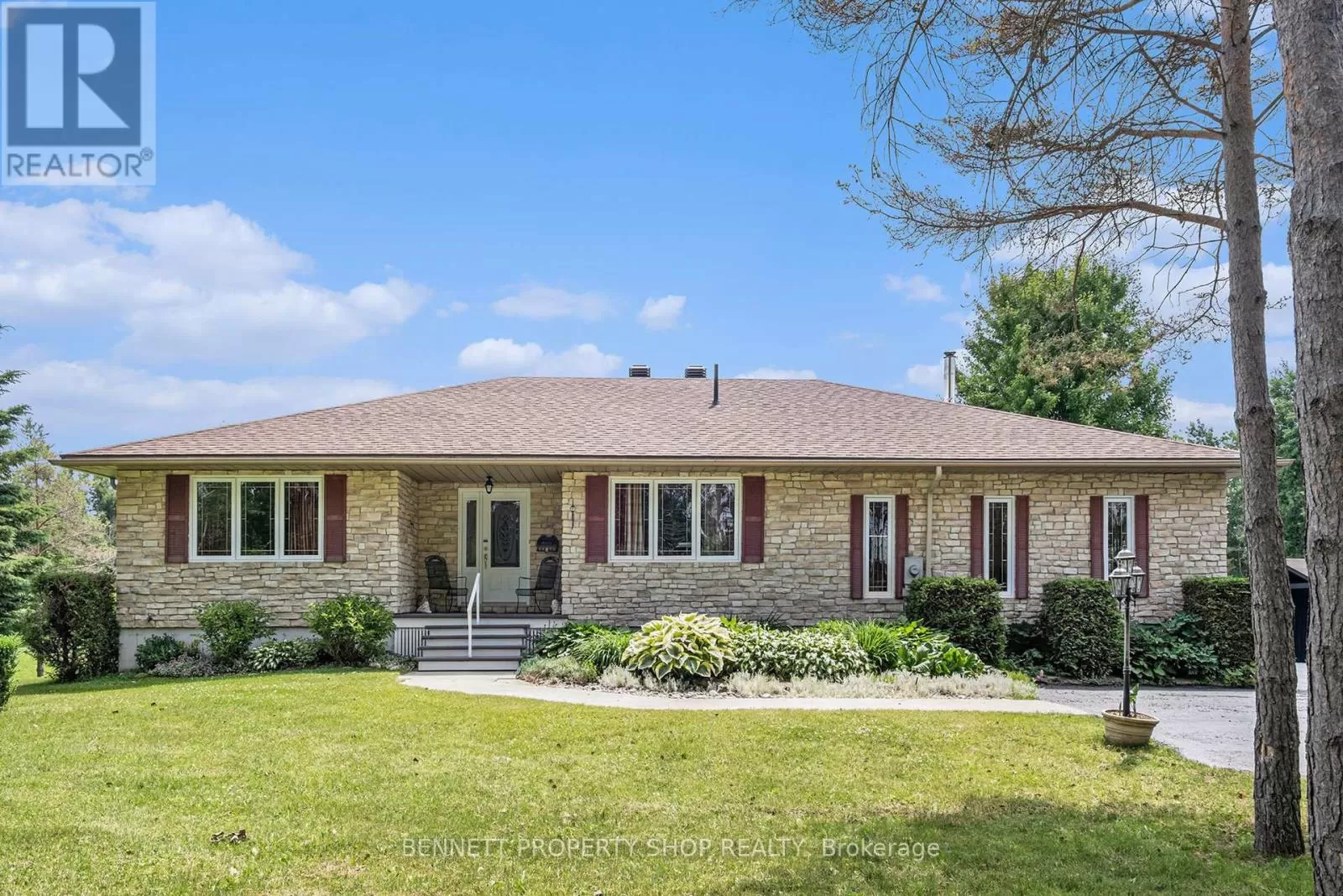 Cross Streets: HWY 15 & Ferguson Tetlock Road. ** Directions: HWY 15 to 375 Ferguson Tetlock Road. Custom-Built Home on 23+ Acres A Nature Lovers Paradise Just Minutes from Town! Welcome to this exceptional 3+1 bedroom custom-built home nestled on over 23 acres of pristine forested land with private trails - ideal for the outdoor enthusiast or avid hunter. Located just 5 minutes from Smiths Falls and 15 minutes from Carleton Place, with an easy commute to Ottawa, this property offers the perfect blend of country living and urban convenience. Step inside to discover a spacious open-concept main floor, highlighted by gleaming hardwood floors, a large great room, a formal dining area, a cozy sitting nook, and an expansive kitchen perfect for entertaining. The main floor also includes a 4-piece bath and a 3-piece bath for added convenience. The generous primary bedroom features a walk-in closet, while two additional bedrooms provide flexibility - one currently serves as an office and is equipped with plumbing for future possibilities. The fully finished lower level boasts a large family room with a wood stove, a fourth bedroom, and ample storage space - perfect for hosting guests or cozy family nights in. Outside, the beautifully landscaped grounds feature an oversized 2-car garage with plenty of storage, a fully enclosed gazebo (built in 2015), and a large patio (installed in 2014). The driveway was resealed in 2025, and the roof was re-shingled in 2021, offering peace of mind for years to come. Outdoor enthusiasts will love the private network of trails perfect for walking, snowshoeing, or cross-country skiing. Bonus features include three hunting stands and a private shooting range, making this a rare opportunity for those seeking a recreational retreat. Don't miss your chance to own this one-of-a-kind property where lifestyle, privacy, and convenience come together. 3 bedrooms above grade and 1 below grade. (id:27476)