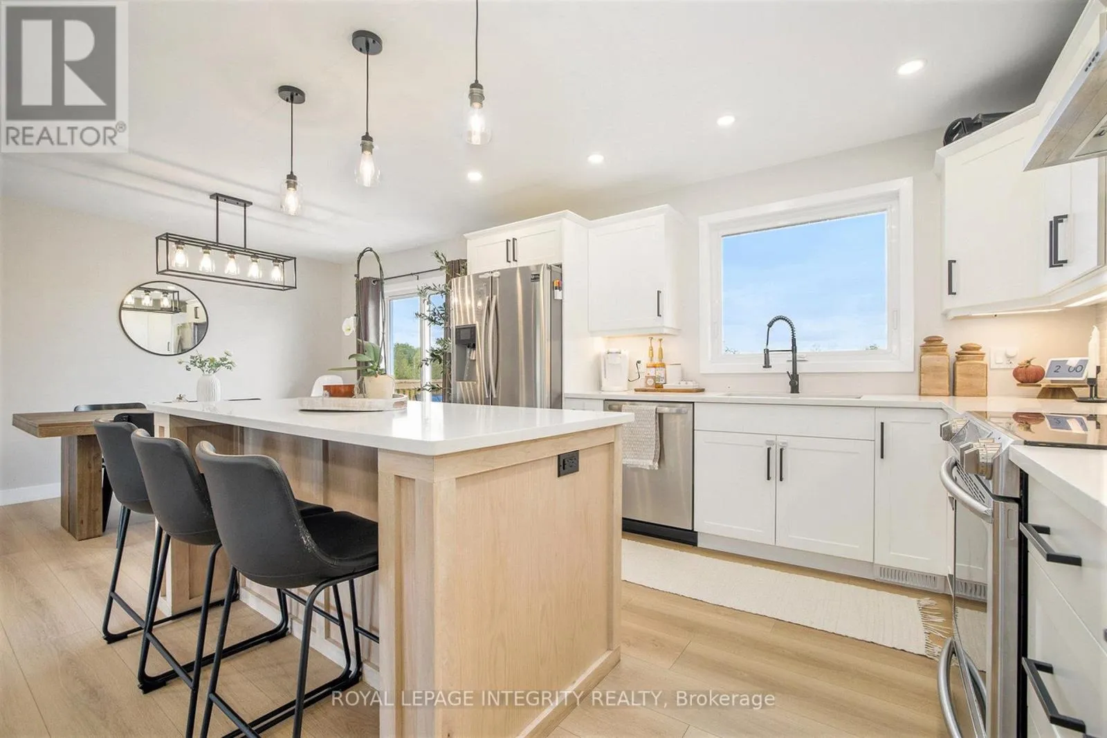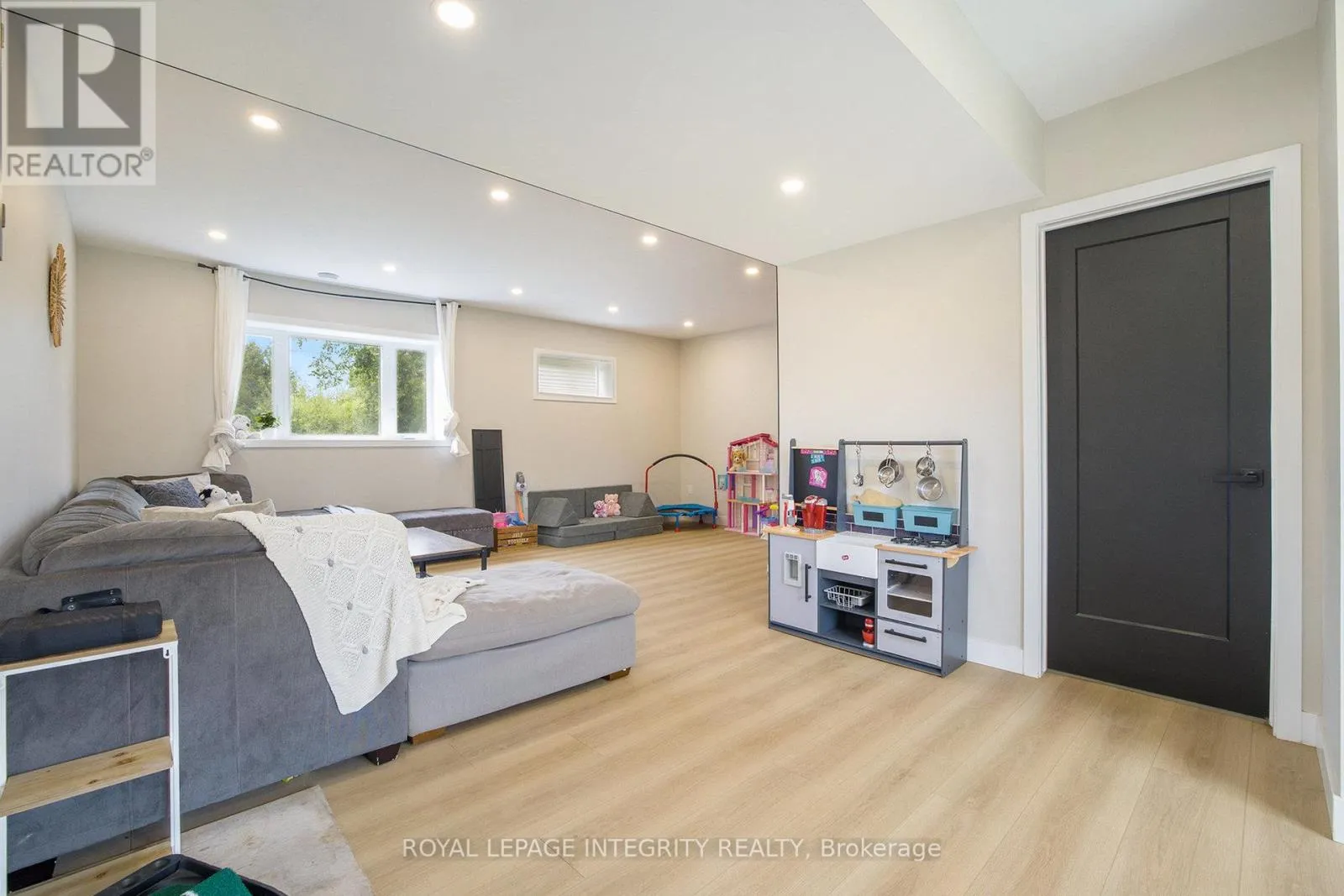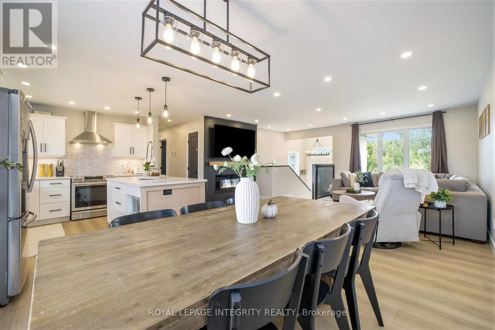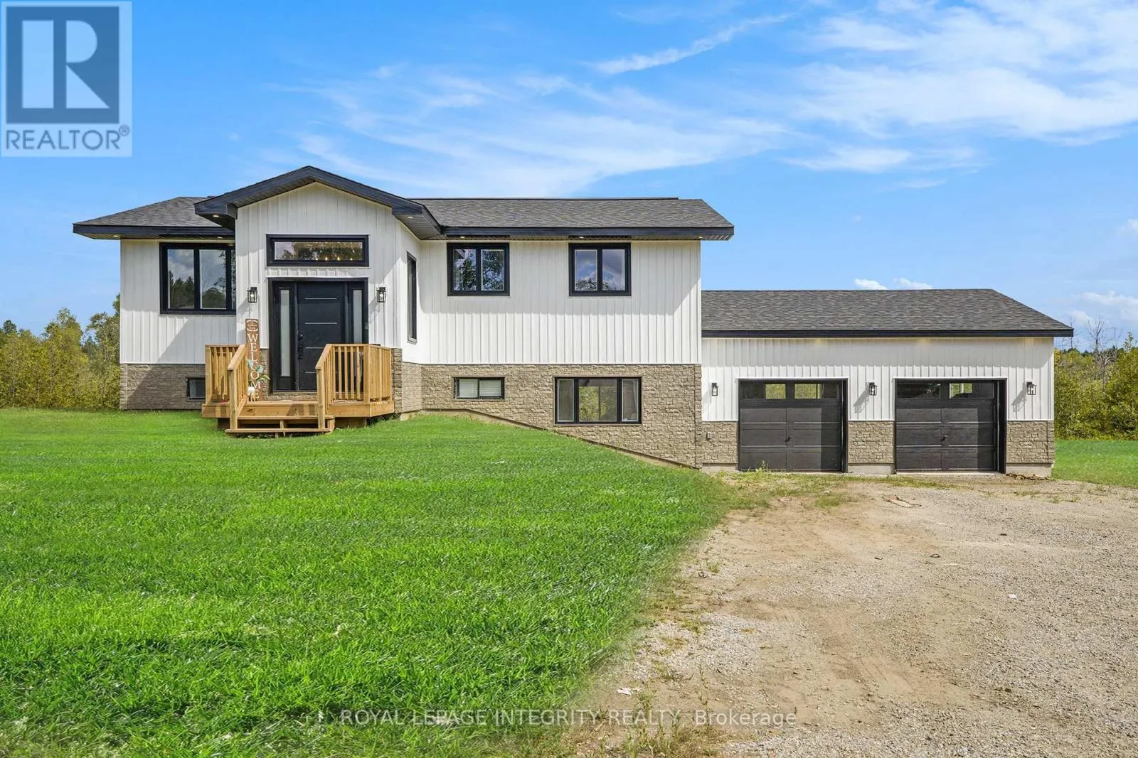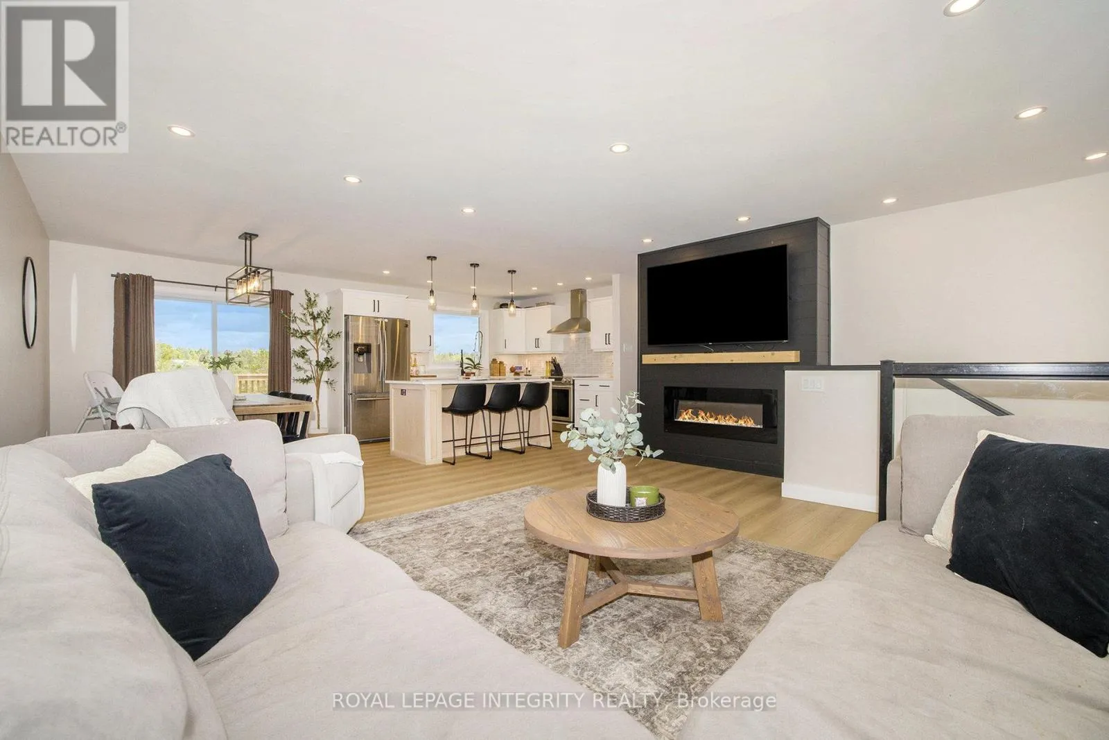 Cross Streets: Roger Stevens Drive and Code Drive. ** Directions: Hwy 15 to Roger Stevens Drive; Left on Code Drive. 915 Code Drive is where modern design meets storybook charm. Custom-built in 2024 for a homeowner with a keen eye for style, this residence now seeks its next chapter. Nestled on just over an acre at the edge of Smiths Falls, with booming Carleton Place a breezy 25 minutes away and historic Perth just 20 minutes down the road, this home offers the perfect blend of country calm and commuter convenience. Beyond the front door, sunlight cascades across thoughtful and refined finishes, illuminating every bespoke detail. The main floor's open flow is anchored by a stunning fireplace feature wall which sets the stage for cozy winter evenings and lively gatherings alike. Upstairs, three bright bedrooms await, each with its own personality and one ready to serve as the master if you choose. Downstairs, the walk-out lower level reveals a bright and airy private master suite with walk-in closet and full bath, ideal for private sleeping quarters for the adults, a guest suite to impress family and friends with comfort and style, or a quiet workspace undisturbed by the regular flow of the household. The extras delight as well: a fresh, modern exterior with soffit lighting to welcome you home, an attached double garage for your vehicles, projects, or toys, and a raised deck overlooking your private paradise. Oversized bathroom vanities, a large well-lit recreation room, and many other thoughtful touches throughout complete this masterpiece home. 915 Code Drive is more than a residence; it is an invitation to craft your lifestyle within a masterfully designed contemporary home, surrounded by boundless possibilities and ensured private by nature. (id:27476)