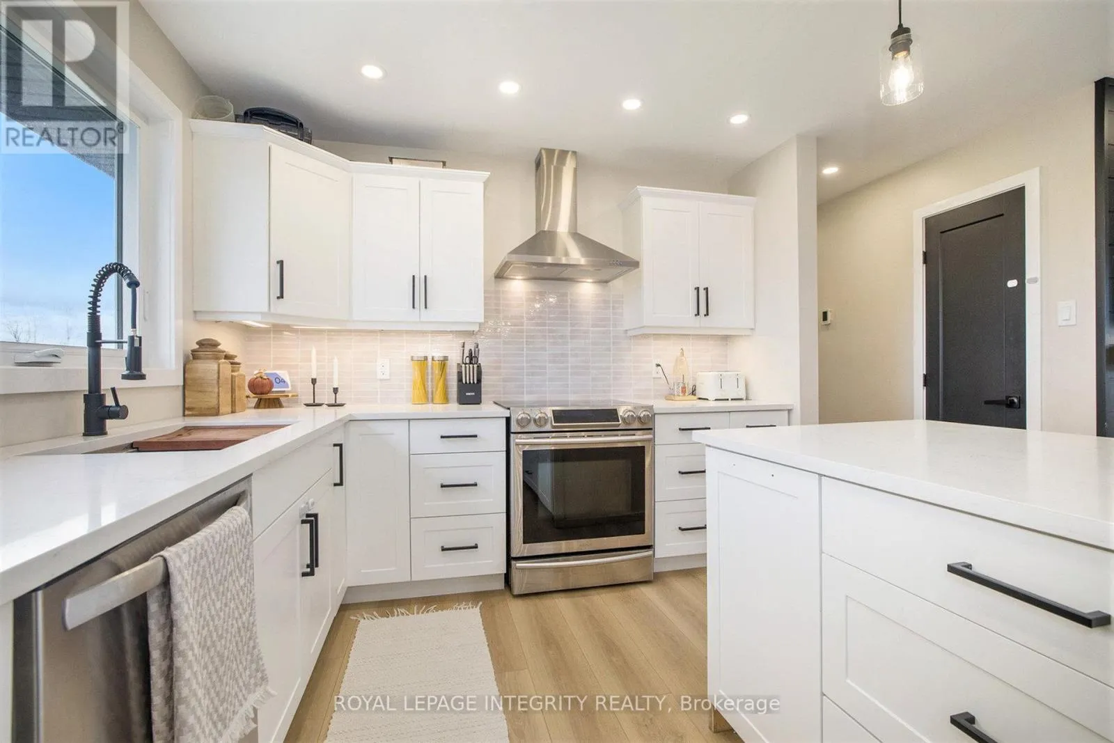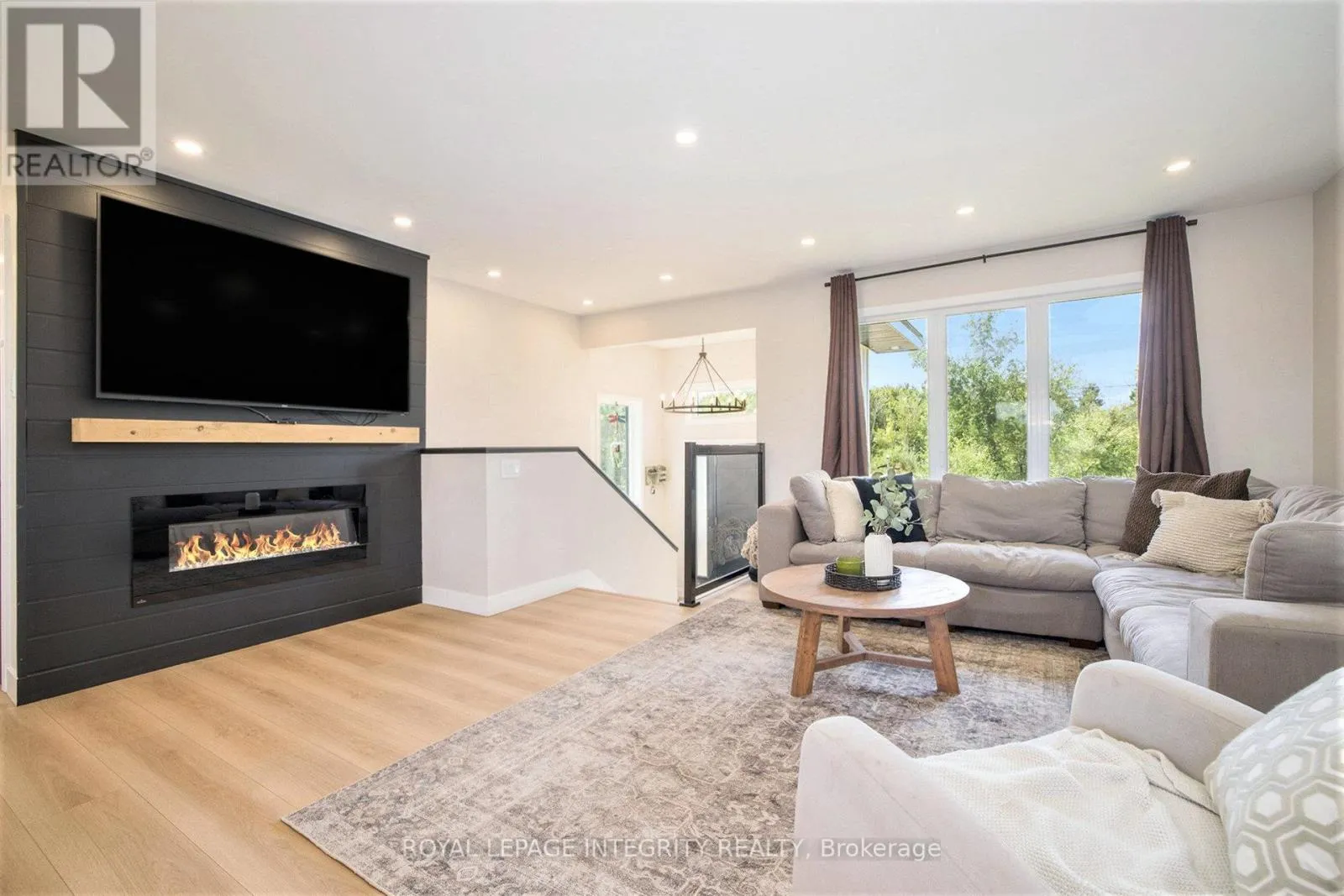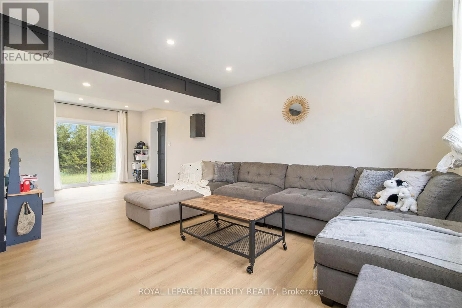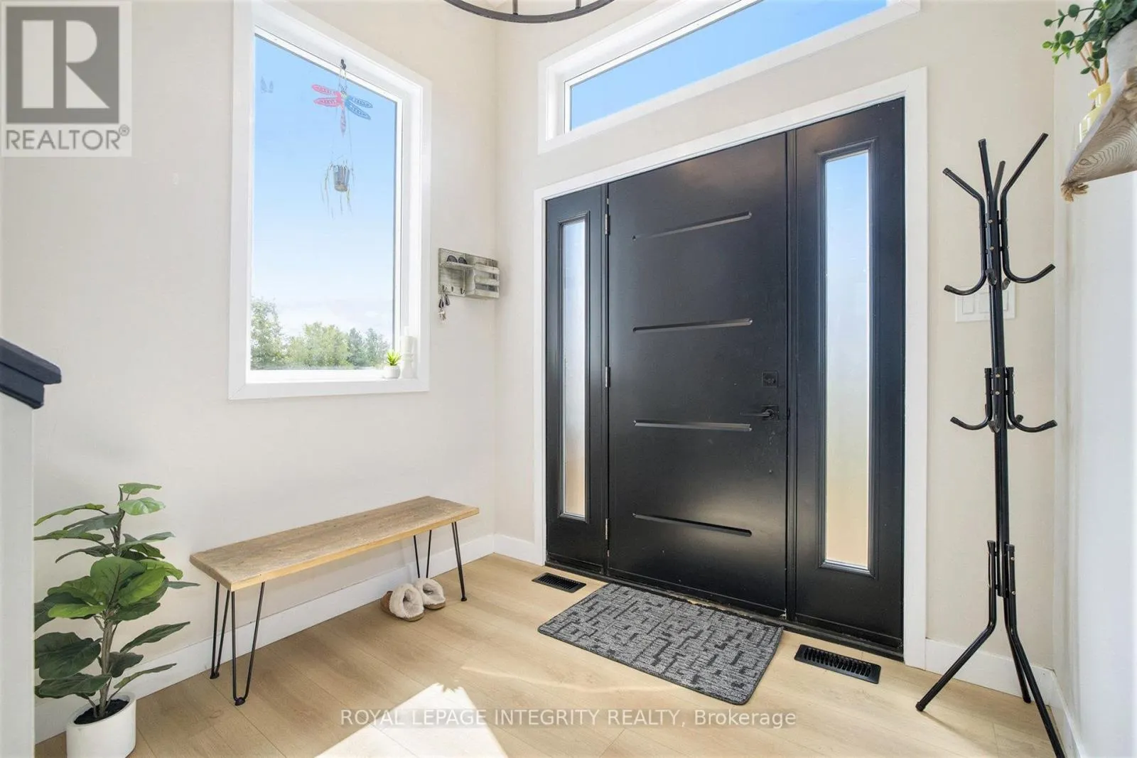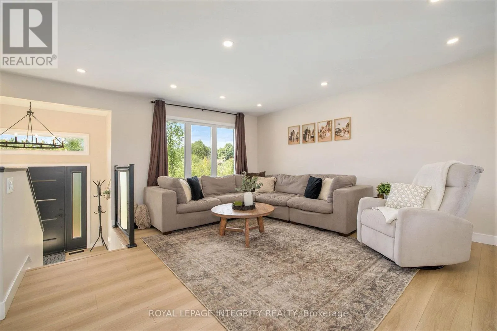 Cross Streets: Roger Stevens Drive and Code Drive. ** Directions: Hwy 15 to Roger Stevens Drive; Left on Code Drive. 915 Code Drive is where modern design meets storybook charm. Custom-built in 2024 for a homeowner with a keen eye for style, this residence now seeks its next chapter. Nestled on just over an acre at the edge of Smiths Falls, with booming Carleton Place a breezy 25 minutes away and historic Perth just 20 minutes down the road, this home offers the perfect blend of country calm and commuter convenience. Beyond the front door, sunlight cascades across thoughtful and refined finishes, illuminating every bespoke detail. The main floor's open flow is anchored by a stunning fireplace feature wall which sets the stage for cozy winter evenings and lively gatherings alike. Upstairs, three bright bedrooms await, each with its own personality and one ready to serve as the master if you choose. Downstairs, the walk-out lower level reveals a bright and airy private master suite with walk-in closet and full bath, ideal for private sleeping quarters for the adults, a guest suite to impress family and friends with comfort and style, or a quiet workspace undisturbed by the regular flow of the household. The extras delight as well: a fresh, modern exterior with soffit lighting to welcome you home, an attached double garage for your vehicles, projects, or toys, and a raised deck overlooking your private paradise. Oversized bathroom vanities, a large well-lit recreation room, and many other thoughtful touches throughout complete this masterpiece home. 915 Code Drive is more than a residence; it is an invitation to craft your lifestyle within a masterfully designed contemporary home, surrounded by boundless possibilities and ensured private by nature. (id:27476)