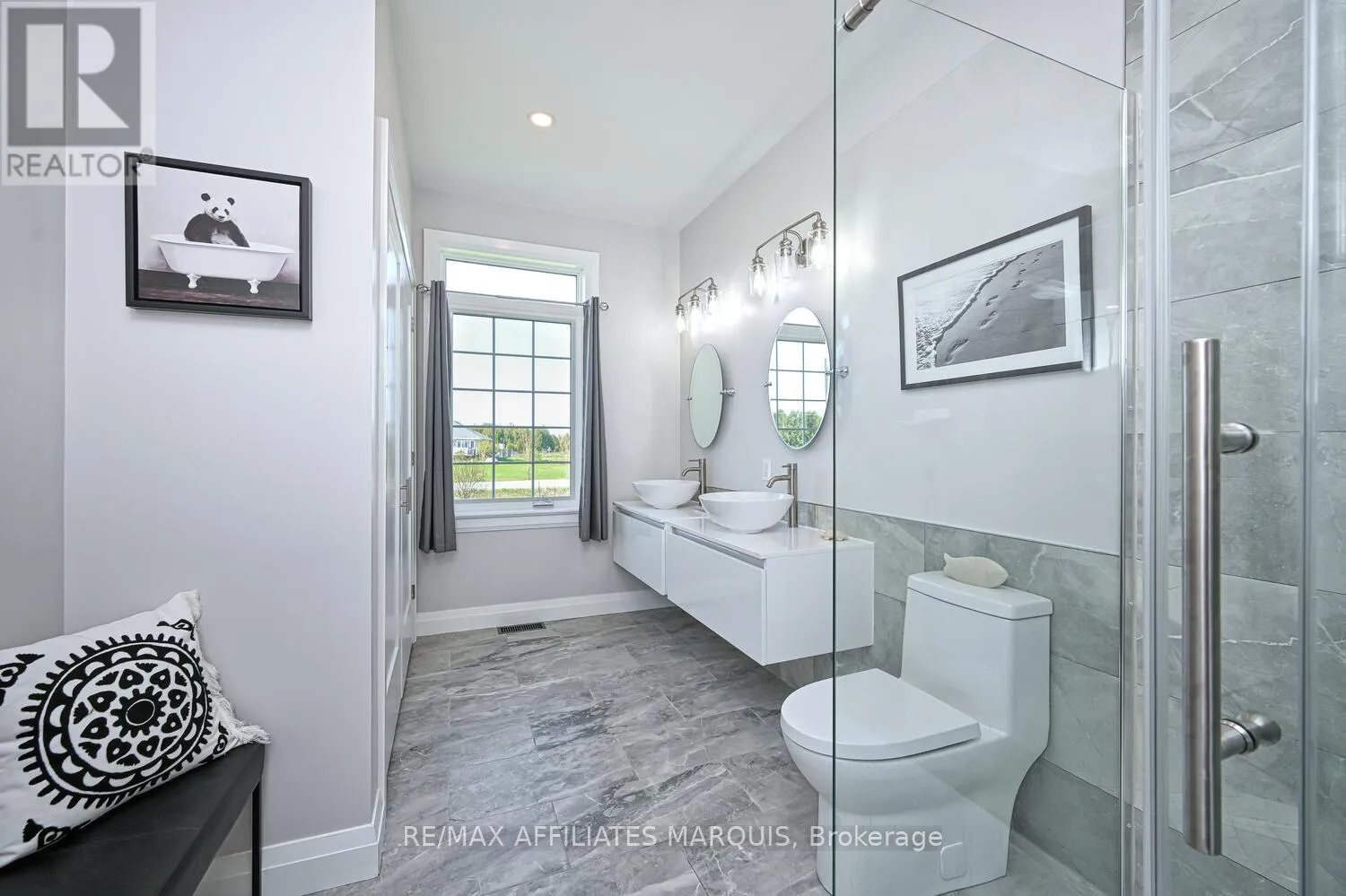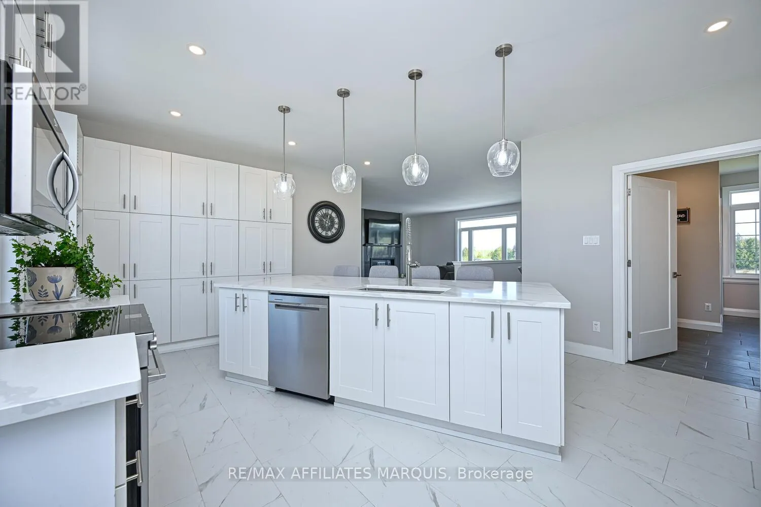 Cross Streets: Roger Stevens/Rosedale Rd N. ** Directions: Take Roger Stevens North from Smiths Falls turn left onto Rosedale Rd N look 2064 on right just over the tracks. Welcome to 2064 Rosedale Rd., in beautiful Montague township. This modern custom 2560 sq. ft. Bungalow, Completed in 2024 offers all the benefits of a modern build without the wait, this home combines thoughtful detail, high end finishings and practicality throughout with 9 - foot ceilings and many gorgeous transom windows. Step inside to a gorgeous foyer that opens to a wide, spacious and bright layout. The formal living room and dining rooms flow seamlessly into inviting family room with cozy propane fireplace open to beautiful, stunning custom kitchen - featuring classic white shaker style cabinets, sleek quartz countertops, large centre island with breakfast seating and stainless steel appliances. With plenty of counter space and smart storage, it's a functional and stylish space for preparing meals and gathering with loved ones. Family entrance provides easy access from oversized 3 - car garage complete with 2 pc bath and laundry. When it's time to unwind, the primary bedroom offers a peaceful retreat complete with a luxurious four- piece ensuite and spacious walk in closet. Two additional bedrooms are spacious and bright and provide plenty of room for family or guests. The full lower level offers endless possibilities, whether you need space for home office, gym, additional bedrooms or even potential in-law suite. Lovely 16x16 composite deck is where you will enjoy your morning coffee and entertain family and friends. Nestled on 3 + private acres just minutes from Smiths Falls and 40 minutes to Barrhaven this home offers the best of rural tranquility with easy access to schools, shopping and community amenities. 2046 Rosedale Road is the perfect place to call home! Call for viewing today! (id:27476)