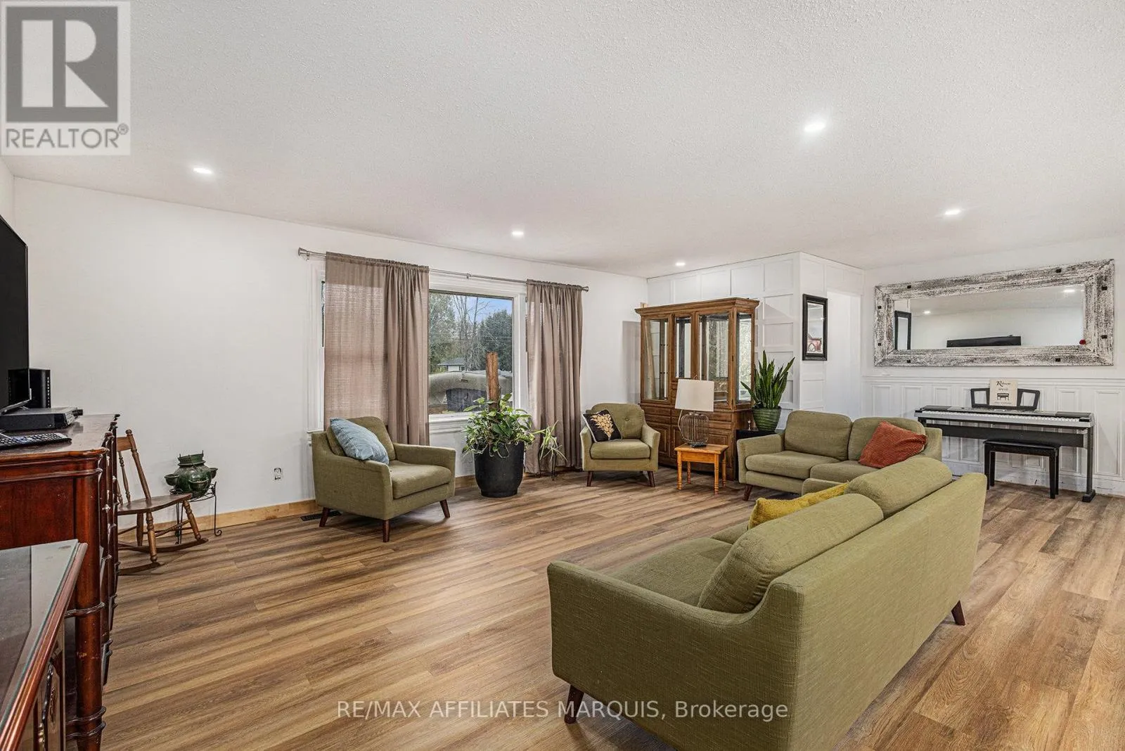 Cross Streets: Roger Stevens & Code. ** Directions: From downtown Smiths Falls, turn right onto Cornelia. Cornelia becomes Roger Stevens. End at #7349. This solid brick bungalow sits on a beautiful lot just outside of Smiths Falls, offering privacy, space, and wonderful opportunity to personalize a home to your own style. With 200 feet of frontage, mature trees, and recent landscaping that includes new shrubs, trees, and stone, the property provides a peaceful country atmosphere while still being only minutes from town. Many updates have already been completed, including new roof shingles with plywood, fascia, and eaves, a new sump pump with battery backup, new windows and doors, improved attic insulation, as well as a new furnace and central air unit. Inside, you'll find an updated bathroom, refreshed laundry area, and a redesigned kitchen ready for the finishing touches that will make it truly your own. The attached single-car garage is currently being converted into a spacious bonus room, creating the opportunity for an impressive additional living area. The lower level offers flexible space ready to be customized to suit your needs-perfect for a family room, home office or hobby area. Located just minutes from Smiths Falls amenities, schools, and recreation, and within an easy commute to Carleton Place or Ottawa, this property offers comfort, convenience, and exciting possibilities. As per signed Form 244, all offers must include a 24-hour irrevocable. (id:27476)