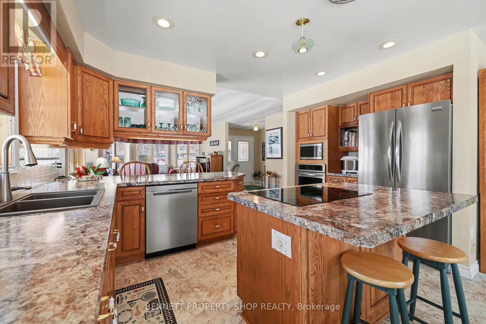 Hwy 15 This custom-built 2+1 bedroom bungalow offers the perfect blend of comfort, privacy, and functionality. Nestled on a serene lot just minutes from Smiths Falls, 15 minutes to Carleton Place, 10 minutes to Perth and close to the Rideau Water System. This home is ideal for anyone seeking peaceful living with convenient access to nearby amenities. Main Features: 2+1 Bedroom, 2 full baths, double car garage, plus secondary detached garage with workshop, bright spacious living room featuring beautiful hardwood floors and large bay window, generous size kitchen with abundant counter space, ample cabinetry, stainless steel built-in appliance, an eating area overlooking the private backyard, and a handy office nook. The primary bedroom offers hardwood flooring, a walk-in closet and a 4-piece ensuite. Convenient main floor laundry. The spacious lower-level family room offers 3rd bedroom, a cozy wood fireplace, a spacious storage area and a cold room perfect for organization. Enjoy summer gatherings in your private backyard featuring a large deck. The enclosed gazebo adds another layer of outdoor enjoyment, offering a peaceful spot to unwind with a book or enjoy a glass of wine sheltered from the elements. Perfect place to call HOME! 24 hours irrevocable on all offers. (id:27476)