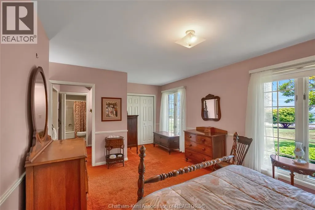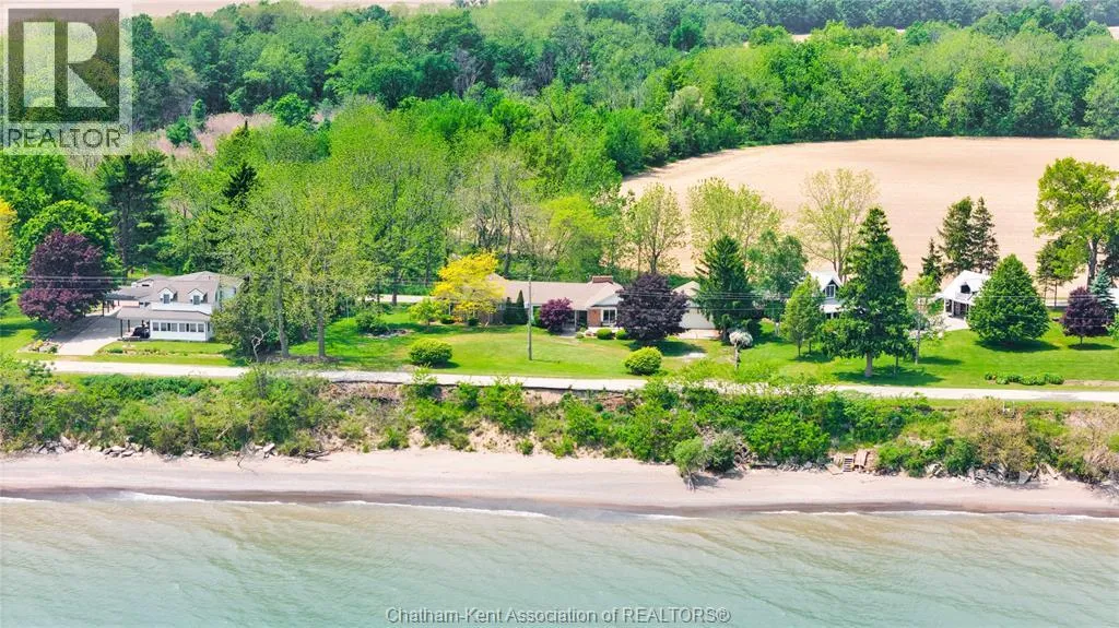 Take Hill Rd South from Talbot Trail, follow the right hand bend onto Rose Beach Line. Perched on a serene vantage point overlooking the shimmering waters of Lake Erie, this sprawling custom-built brick rancher offers an unparalleled blend of space, privacy, and scenic beauty. Spanning over 2400 sq. ft. of main-floor living, this 4+1 bedroom home is designed for those who appreciate room to breathe. The interior boasts two massive living areas and a formal dining room perfect for hosting, while the primary suite serves as a private sanctuary with a full ensuite and walk-in closet. The full basement ensures you'll never run out of room to accommodate. Outside, the dual-aspect views are breathtaking: enjoy morning coffee on the rear deck overlooking lush farmland and woods (you may even be greeted by a family of deer), and spend your evenings on the front porch soaking in that ""million-dollar"" lake view. With sandy beach access nearby and a detached workshop for your hobbies, this isn't just a house - itâs a canvas waiting to become your masterpiece. Book your viewing today! (id:27476)