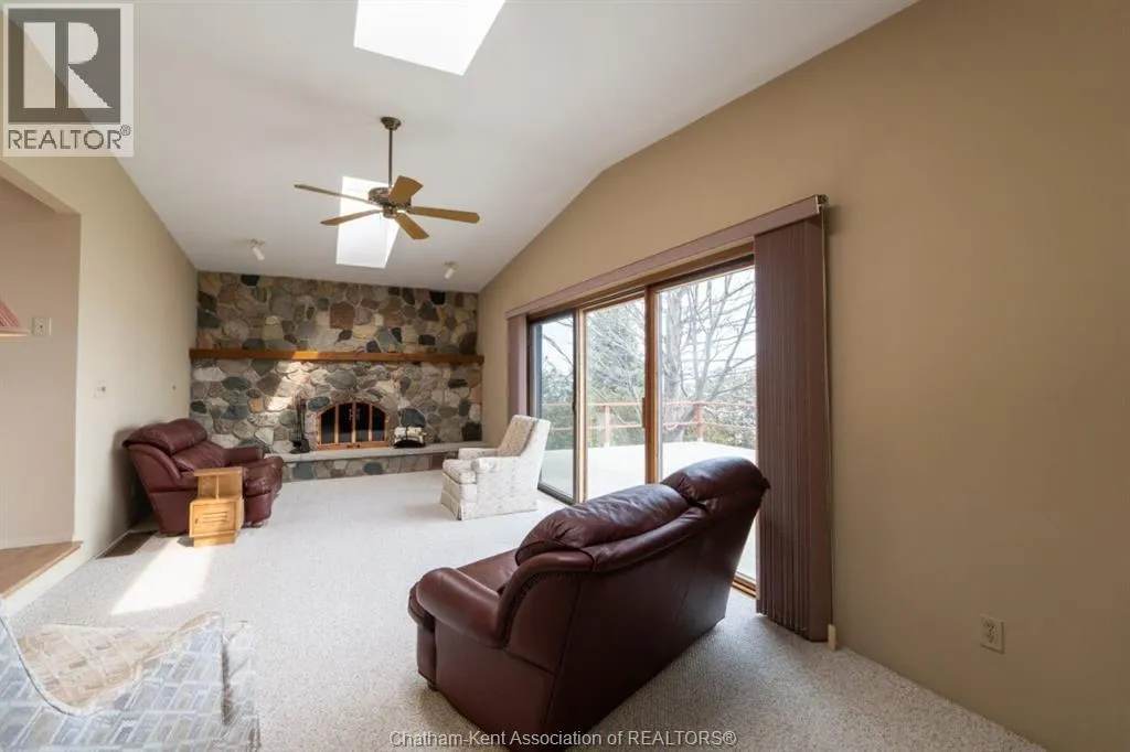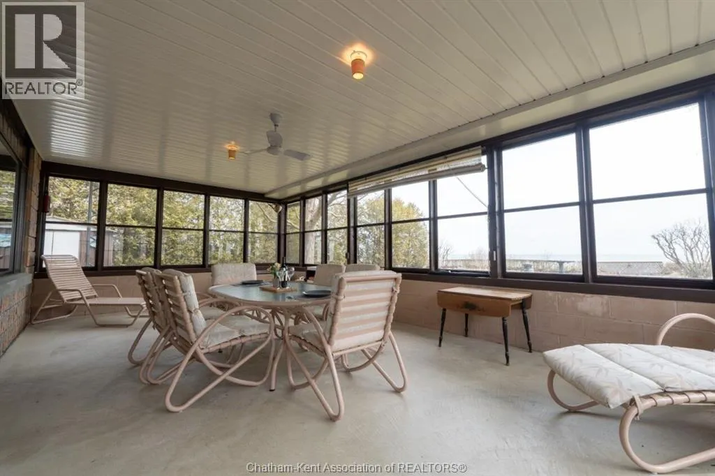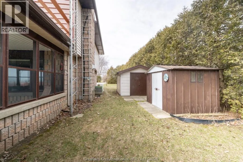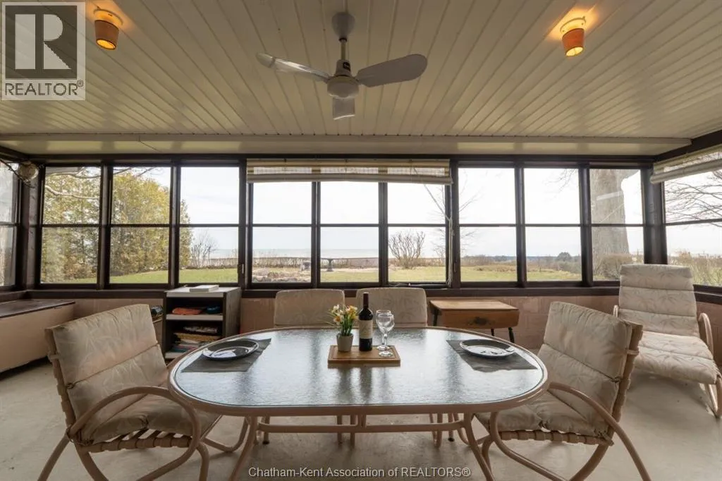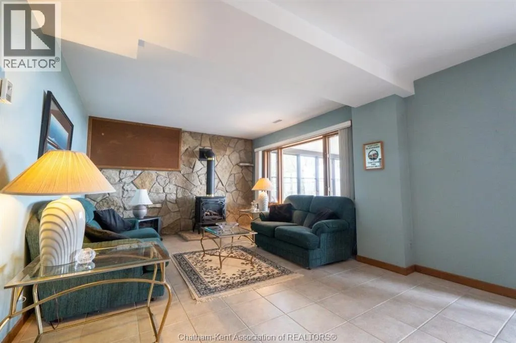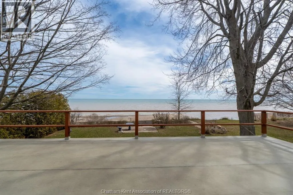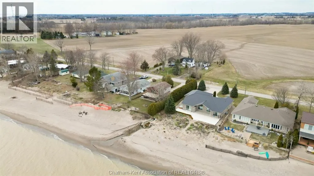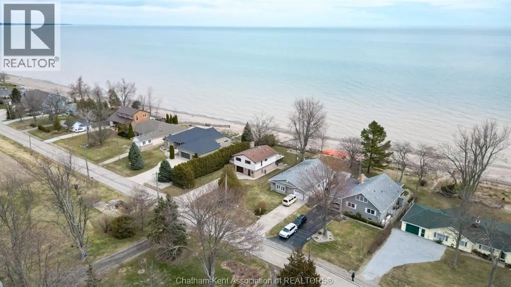 South on Kent Bridge Rd. Turn left at stop sign onto Rose Beach Line. (turning right takes you into Rondeau Park). Donât miss this rare opportunity to own a true beachfront paradise and start creating lifelong memories. This one-owner, charming raised bungalow offers the perfect blend of year-round lakefront living or an ideal summer getaway. Nestled along the shores of Lake Erie, youâll enjoy breathtaking sunrises and the calming sounds of the waves right at your doorstep. Thoughtfully designed to showcase its incredible setting, the upper level features a bright kitchen, 2 bedrooms, 1 bathroom, and a stunning living room filled with natural light from elegant skylights. Step through the sliding patio doorsâcomplete with a retractable storm shutterâonto the full balcony overlooking the yard and beach, an ideal spot for morning coffee or evening relaxation. The main level offers a 2nd bath, a spacious family room and a large sunroom, providing plenty of room to entertain or unwind while taking in the views. Additional highlights include an attached garage, Generac backup system, central vacuum, and the convenience of municipal water. Recent improvements include freshly painted exterior wood siding, along with the garage door, entry door, and storm door, plus new shingles on the shedâadding both value and peace of mind. Step outside and find yourself just moments from your own stretch of beach. Whether itâs boating, fishing, or simply soaking up the sun, this property is a dream for water lovers. Located approximately one hour from Windsor and London, and just three hours from the GTA, this home offers the perfect escape from city life. Experience waterfront living at its finest! (id:27476)