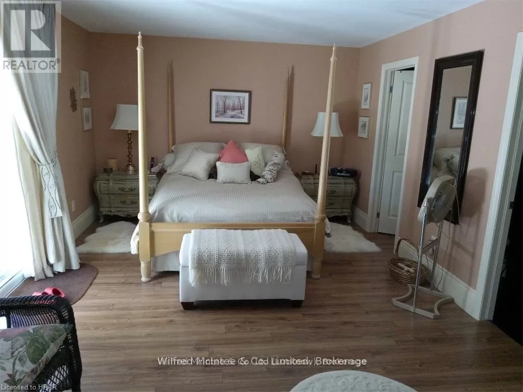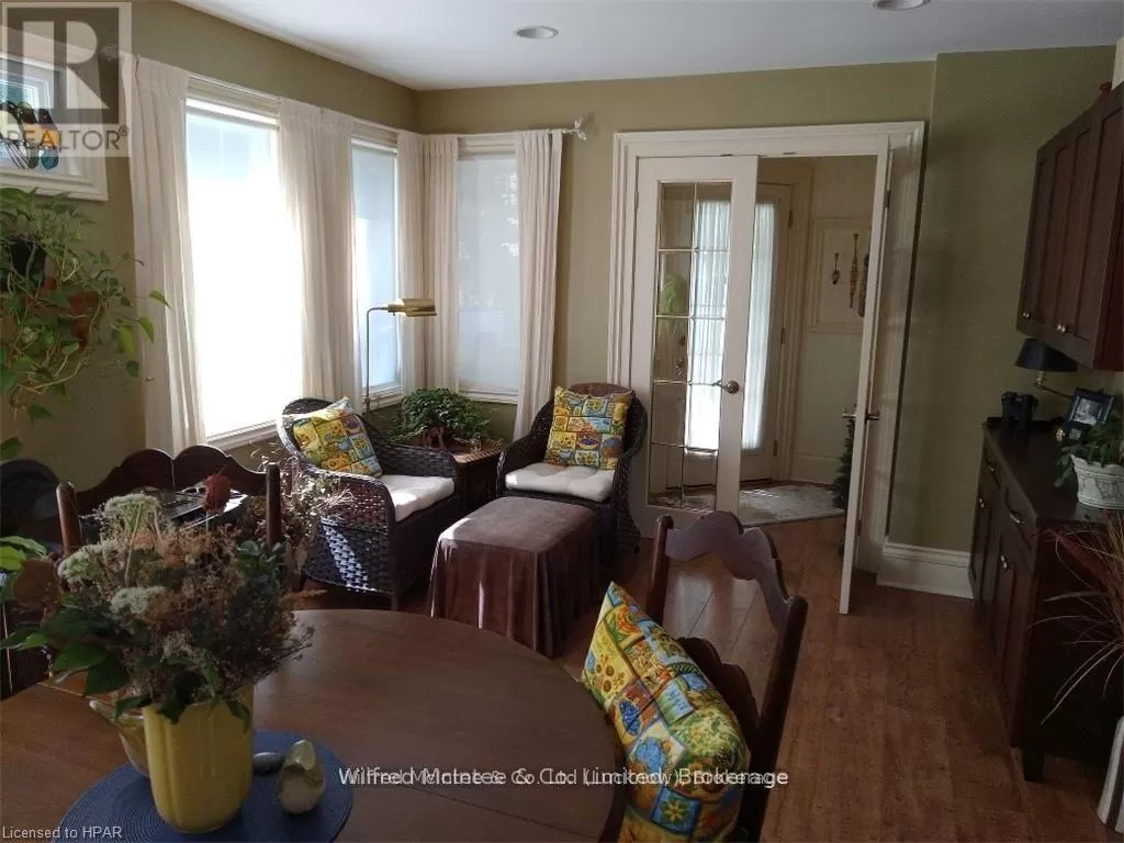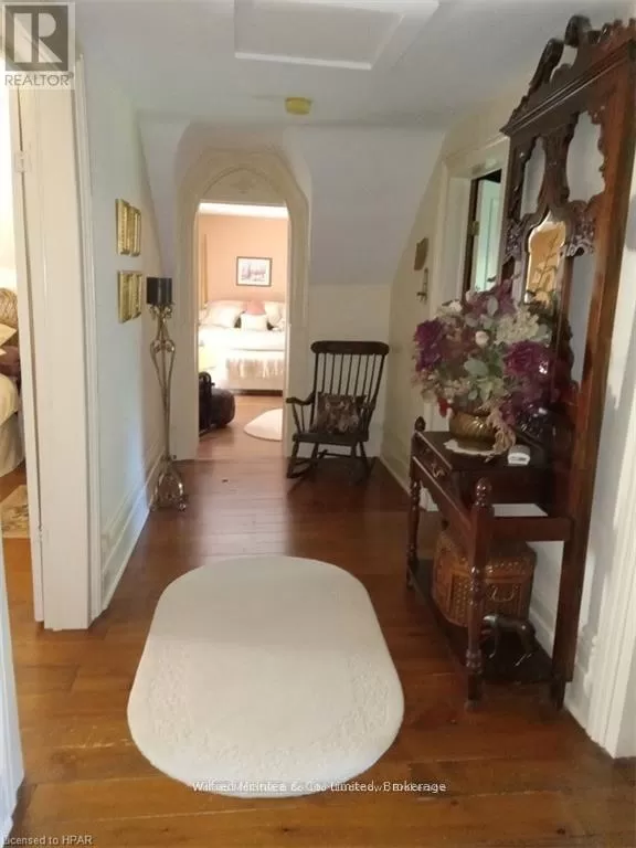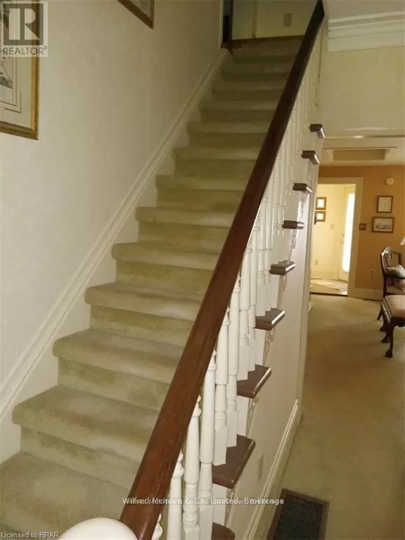 Queen This stately home, backing onto the Maitland River in Bluevale features 5 bedrooms and 3 baths. The original century home has had several additions bringing the total living space to over 3,500 sq. ft. The over one acre lot fronts on both Duncan Street and Johnston Lane and includes a two car insulated garage, original frame homestead from the 1800's, coach house and a green house. A private enclosed patio overlooks the river while an enclosed flagstone courtyard provides a further entertaining area. The main level has a kitchen/prep area with built in desk, dining area, laundry room, mud room, dining room, living room, family room, office and 3 piece bath. Upper level has 5 bedrooms and 2 bathrooms, Gas forced air heating supplemented by a gas stove in dining area, gas fireplace in the living room and a wood burning fireplace in the family room. Master bedroom has an ensuite and a walk in closet and covered balcony. There are 2 sets of stairs leading to the second level. This well-maintained home is ready for a growing family looking for room to roam both inside and out. Furnishings and appliances to be discussed to be discussed with buyer. Property is serviced by a drilled well located on the property which supplies deeded water to three neighbors. (id:27476)