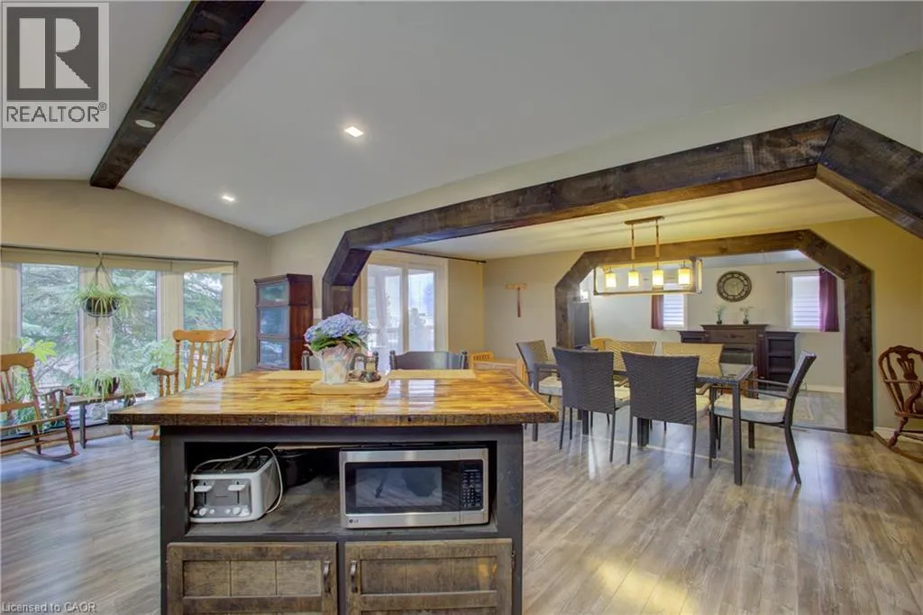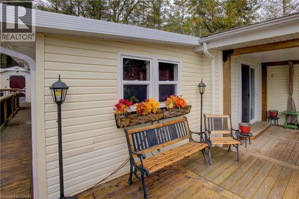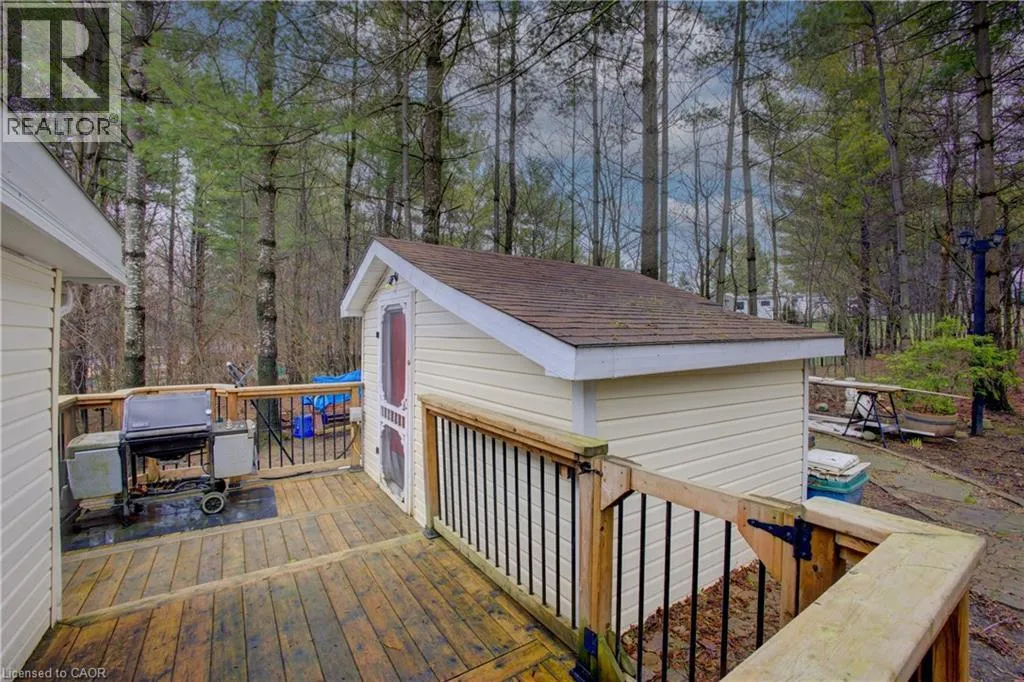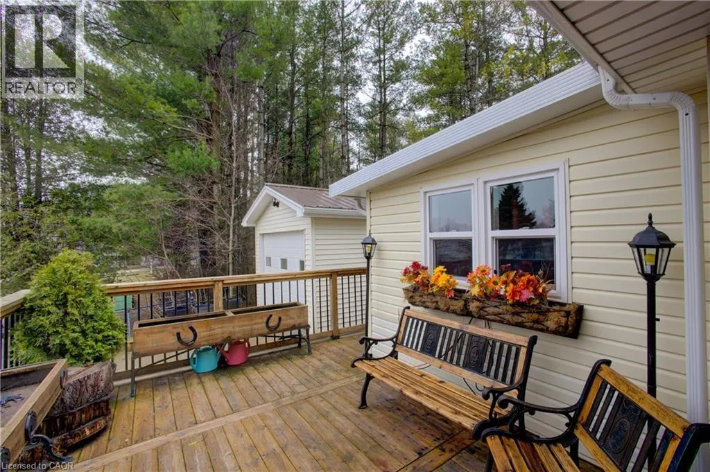 Obtain directions for 7489 Sideroad 5 East Mount Forest, enter Spring Valley Park and enter the seasonal park and follow around to 18 Maple - 18 Maple is not found on Google maps. Just minutes from Mount Forest in a peaceful agricultural setting, Spring Valley is a welcoming seasonal community where comfort meets countryside charmâaccessible for occupancy from April 1 to December 31. This fully winterized modular home offers 2 bedrooms, 1.5 baths, and a bright, open layout featuring cathedral ceilings and a carpet-free interior. The updated rustic-style kitchen with stainless steel appliances adds warmth and functionality. Enjoy morning coffee on the wrap-around deck and unwind in the evenings around the backyard firepit. The detached garage and garden shed provide excellent storage and space for hobbies or weekend projects. While the home offers all the comforts you need, the park's resort-style amenitiesâincluding a non-motorized lake, heated pools, mini golf, and a sandy beachâare available only during the warmer months. Whether you're planning weekend getaways or longer stays, this well-maintained retreat is ready for you. PLEASE NOTE: Occupancy is permitted from April 1 to December 31, and the land lease will officially reflect this 9-month season. (id:27476)