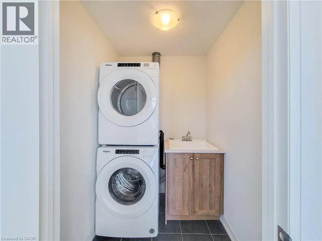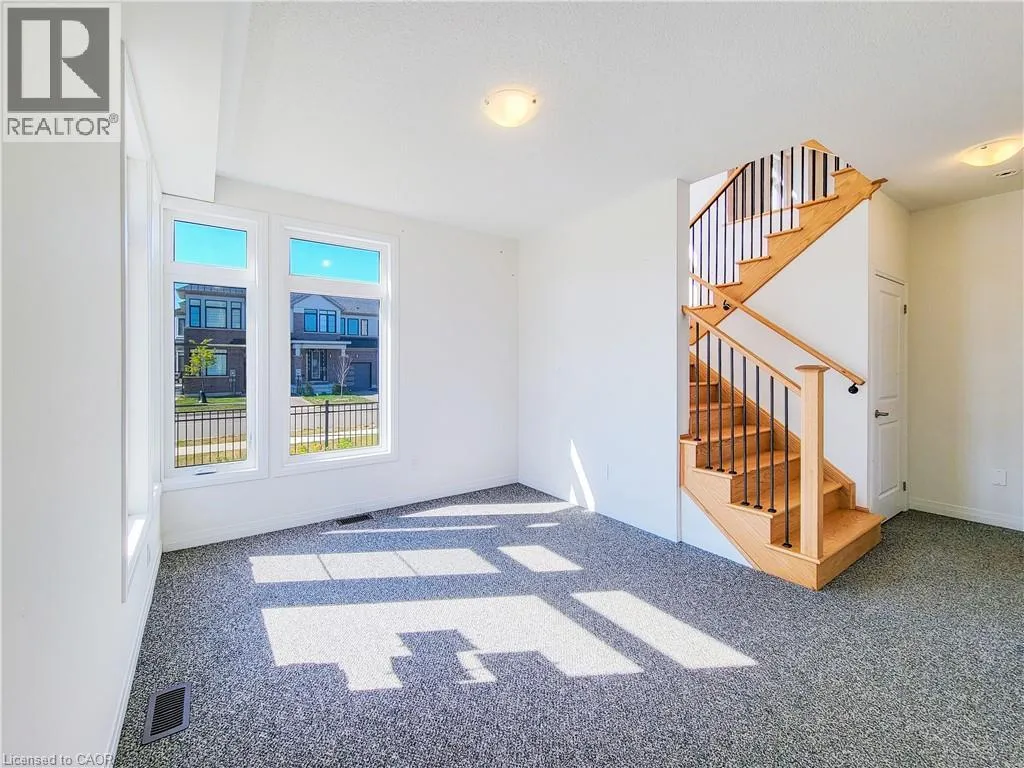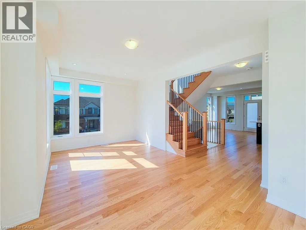 Upper James St / Airport Rd W / Provident Way. Welcome to this spacious 3-storey condo townhome offering a functional layout and rare double car garage in a sought-after, family-friendly community. The entry level features a welcoming family room with direct garage access, as well as a dedicated laundry room. The second floor serves as the heart of the home with an open-concept design that seamlessly connects the kitchen, living, and dining areas, accompanied by a modern powder room for added convenience. Double glass doors lead you out to your inviting balcony providing a private outdoor extension to the main living space. On the upper-level, you'll find three bedrooms, including a well-appointed primary suite with walk-in closet and ensuite. The additional two bedrooms are served by a full 4-piece bathroom, providing comfort for family or guests. An unfinished basement offers additional proximity to amenities, and excellent community appeal, this property presents an ideal opportunity for families who don't want to sacrifice comfort, space, or location! Taxes estimated as per city's website. Property is being sold under Power of Sale. Sold as is, where is. RSA. (id:27476)
