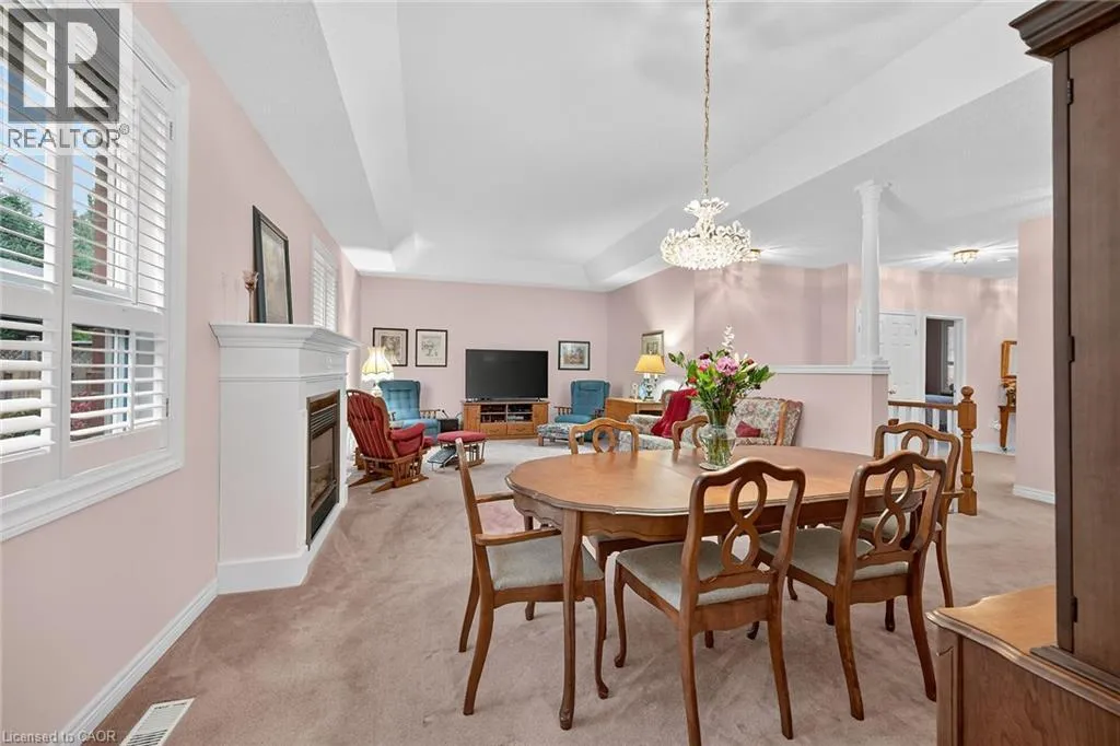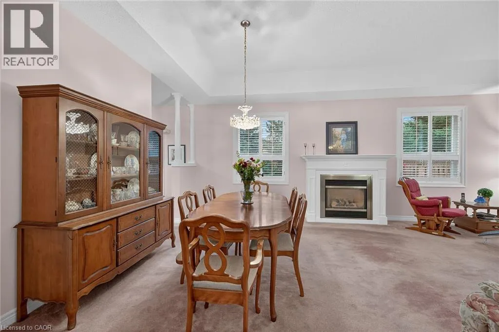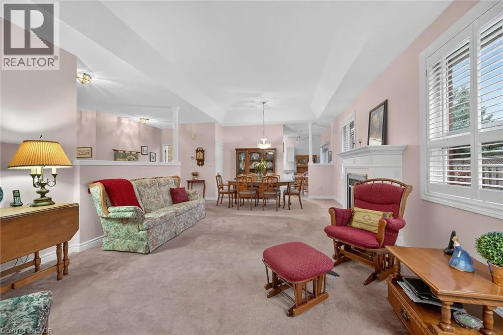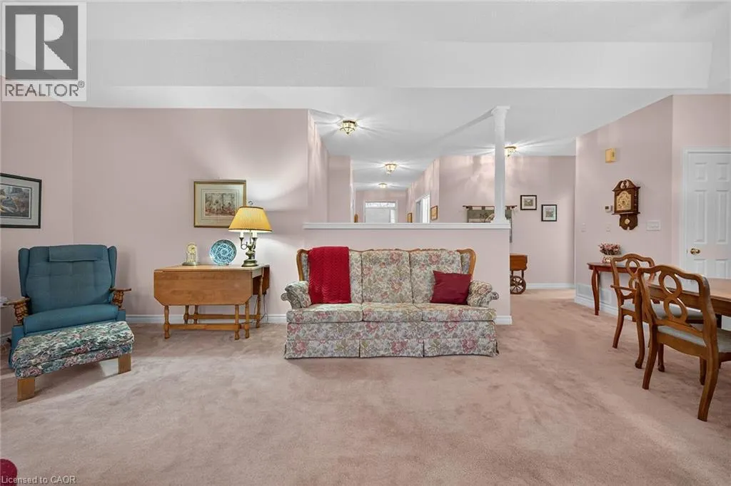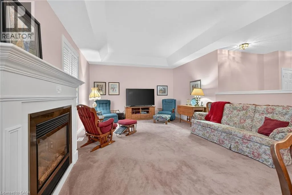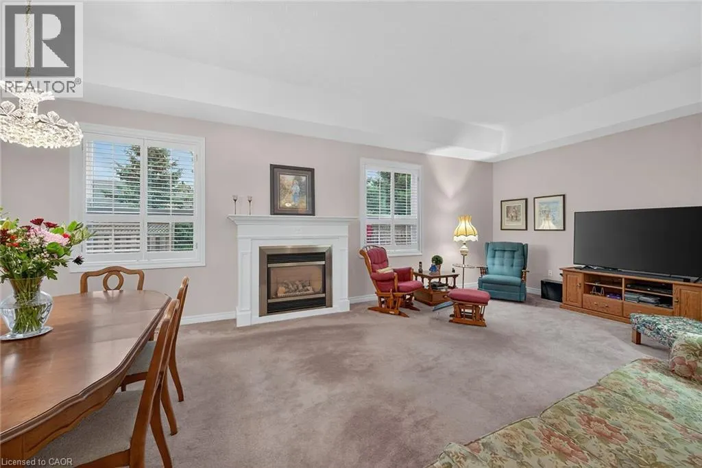UPPER JAMES SOUTH TO TWENTY RD W, TO TWENTY PLACE BLVD, TO RIVEROAKS DRIVE WELCOME TO TWENTY PLACE! One of Southern Ontarioâs most sought-after adult-lifestyle communities. Enjoy low maintenance living in this friendly, active community! This spacious end unit bungalow features a double garage with a window, and a large, unfinished, unspoiled basement which awaits your finishing. There are 9 foot ceilings throughout the main floor, with the living room and dining room featuring a 10 foot coffered ceiling and a lovely gas fireplace. Youâll love the large, bright, eat-in kitchen, custom designed to provide great access to the laundry room. There is a 3 year new patio door in the kitchen leading to the private backyard, a side window offering lots of natural light, and ample cupboards including a pantry. The laundry room has inside entry from the double garage. Both bedrooms are a good size, with the primary featuring a lovely bay window, good closet space and a 4 piece ensuite bathroom with soaker tub and separate shower. Another 4 piece bathroom is conveniently located close to the second bedroom. All main floor windows were replaced about 2 years ago and the furnace and air conditioning unit are approximately 3 years old. Youâre just steps away to the spectacular residentsâ clubhouse which has indoor pool, sauna, whirlpool, fully equipped gym, large party room, games and craft rooms, tennis/pickle ball court, putting green, shuffleboard and more! This is turn-key living at its best! (id:27476)