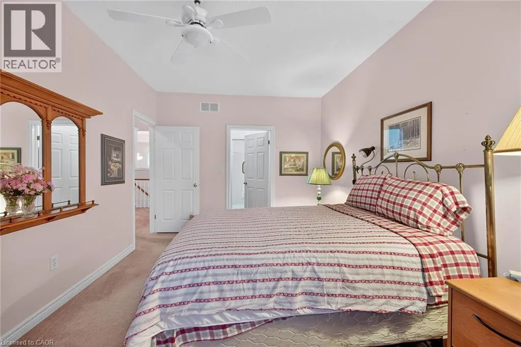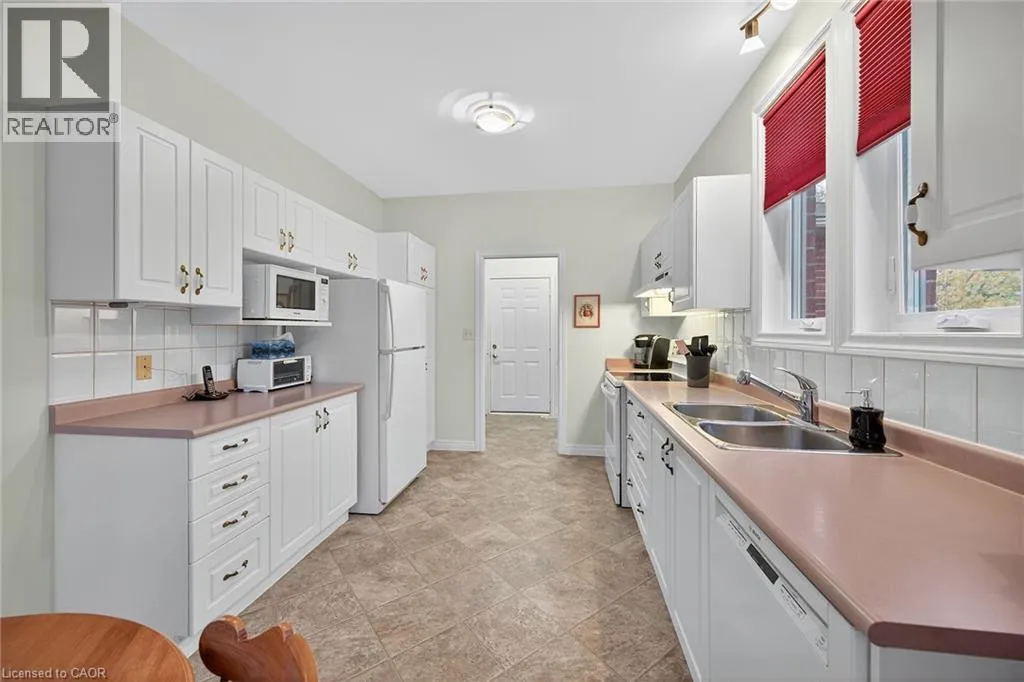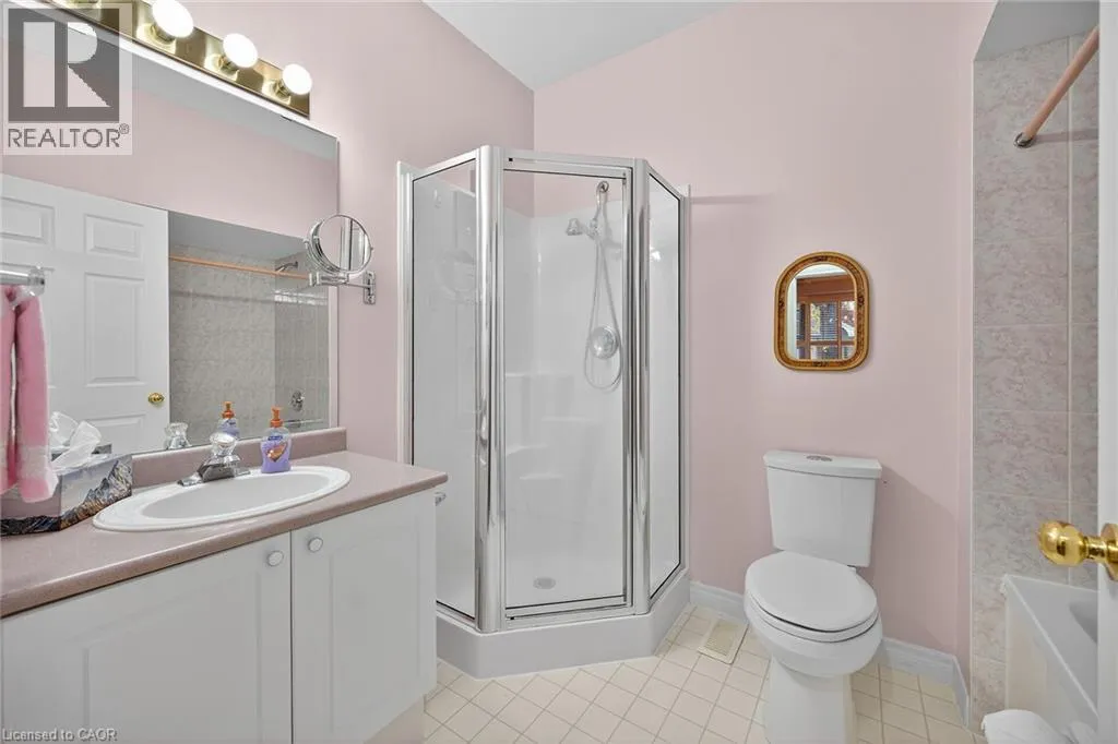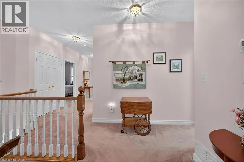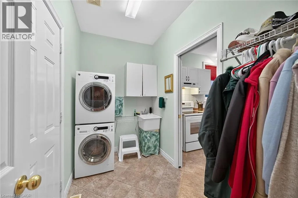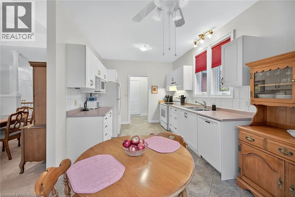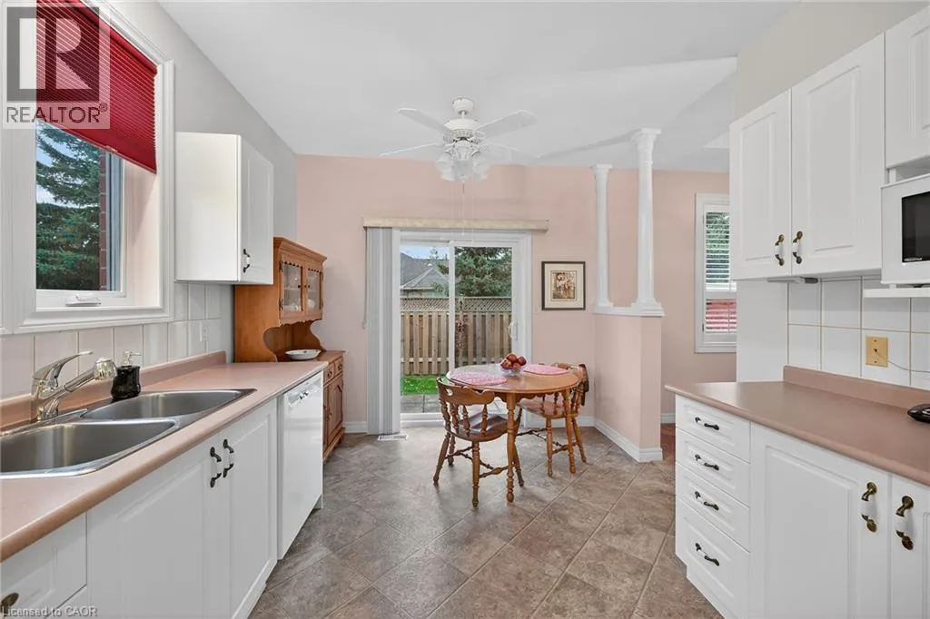 UPPER JAMES SOUTH TO TWENTY RD W, TO TWENTY PLACE BLVD, TO RIVEROAKS DRIVE WELCOME TO TWENTY PLACE! One of Southern Ontarioâs most sought-after adult-lifestyle communities. Enjoy low maintenance living in this friendly, active community! This spacious end unit bungalow features a double garage with a window, and a large, unfinished, unspoiled basement which awaits your finishing. There are 9 foot ceilings throughout the main floor, with the living room and dining room featuring a 10 foot coffered ceiling and a lovely gas fireplace. Youâll love the large, bright, eat-in kitchen, custom designed to provide great access to the laundry room. There is a 3 year new patio door in the kitchen leading to the private backyard, a side window offering lots of natural light, and ample cupboards including a pantry. The laundry room has inside entry from the double garage. Both bedrooms are a good size, with the primary featuring a lovely bay window, good closet space and a 4 piece ensuite bathroom with soaker tub and separate shower. Another 4 piece bathroom is conveniently located close to the second bedroom. All main floor windows were replaced about 2 years ago and the furnace and air conditioning unit are approximately 3 years old. Youâre just steps away to the spectacular residentsâ clubhouse which has indoor pool, sauna, whirlpool, fully equipped gym, large party room, games and craft rooms, tennis/pickle ball court, putting green, shuffleboard and more! This is turn-key living at its best! (id:27476)