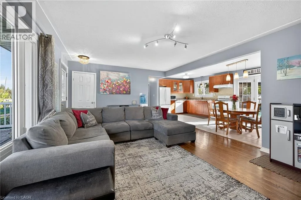 From Hamilton - Highway 6 to 3951. Property on east side, last house before Chippewa Road. Enjoy country living minutes from the city. This home is conveniently located with quick access to Hamilton Airport, Hwy 6 bypass and Hwy 403. This well maintained traditional bungalow has 3 good size bedrooms, 2 full baths, open living room kitchen and huge family room with kitchenette - could easily have in-law potential. Over 2200 sq ft of living space on a large fenced 75' x 200' lot. Main floor has beautiful hardwood throughout with ceramic tile in kitchen and bath. Downstairs has laminate flooring - easy care - carpet free! Tastefully decorated, open spacious rooms and country views - help make this home perfect for your family to just step into - nothing to do here! Home has had many updates, including 200-amp service, new a/c 2025, garage door 2024, and large private rear deck with gas bbq hook up and hot tub - perfect for entertaining and family gatherings! Cistern is 3500 gallon and new septic 2019. So much space in the private back yard it's like your own park. If you've been thinking about a move to the country but want to still be close to city amenities - this one could be it. If you require extra parking - this one has that too! Don't miss seeing this one. (id:27476)