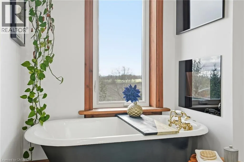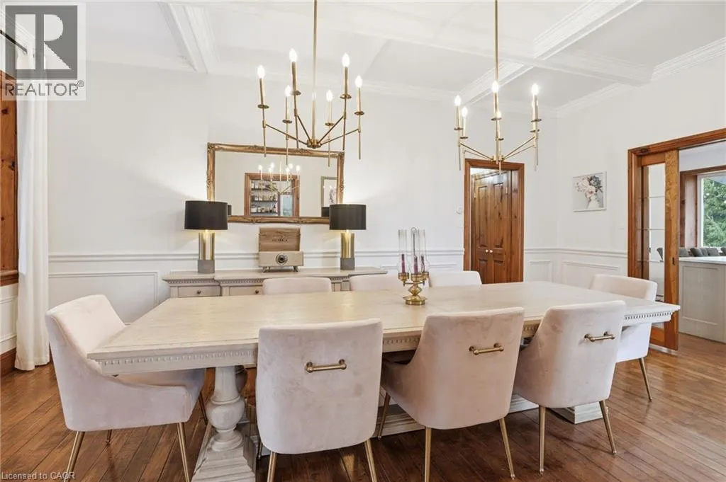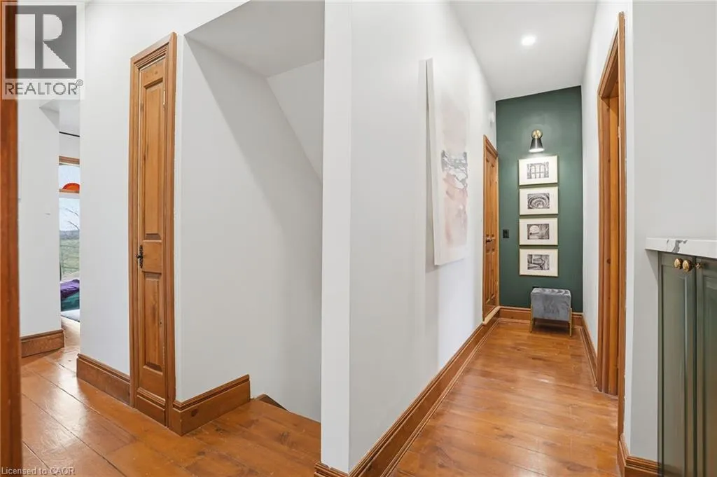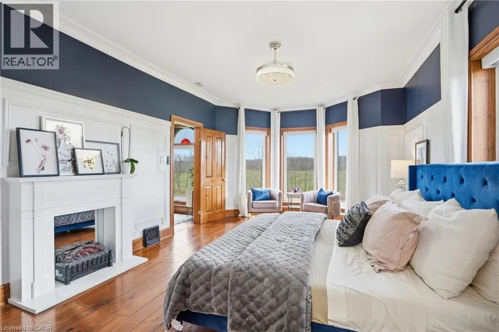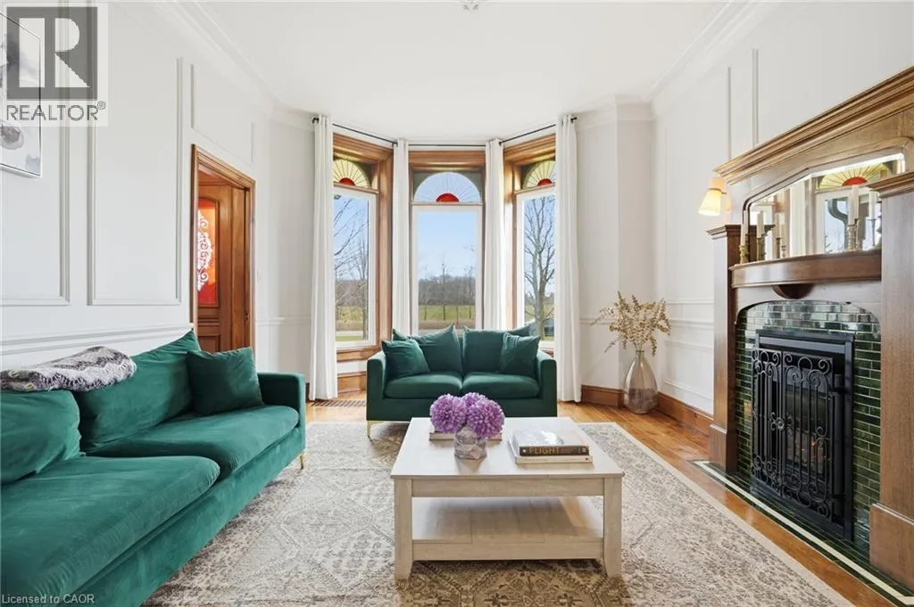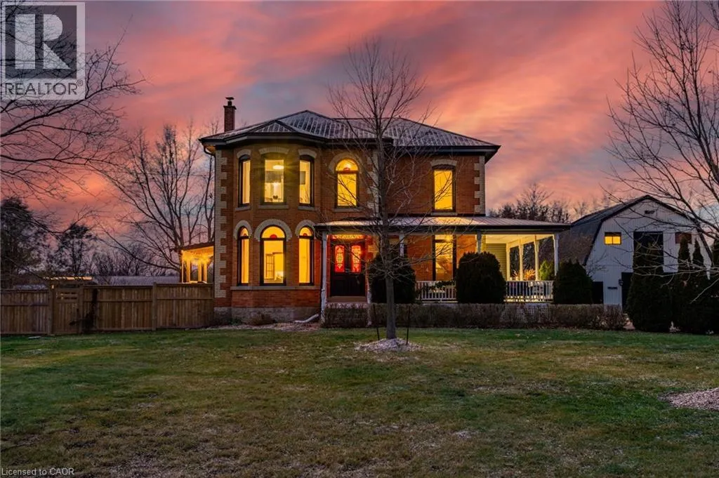 Rymal Road turn south on Nebo This updated red brick century home is sure to stun you with its beauty! Drive up the long interlock drive and be greeted by the wrap around porch and the handcrafted mahogany exterior doors. This stately home has original character details you'll love â 10â main floor ceilings, stained glass windows, the original front doors, beautiful glass pocket doors, pine and maple tongue and groove floors throughout, stained solid wood trim work, decorative ceiling medallion, the original fireplace (converted to gas), claw foot tub, the library chandelier is an original Hamilton gas street light converted to electric, and 2 staircases to the second floor. But, itâs been updated to elevate the home and fit the modern family - adding crown molding, coffered ceiling, wall trim, a new kitchen, new bathrooms (including an ensuite with a double shower), second floor laundry, a large walk-in pantry/prep-kitchen, a library that could double as an office, and brick flooring in the mudroom. This home has the original character we all crave in homes while meeting the modern family lifestyle. Set upon approx. 1.38 acres this is country living at its best while still being just a short drive to amenities and commuter access routes. With almost half of the property fully fenced off you can enjoy the backyard privacy and safety letting children and dogs run freely. The backyard also boasts an elegant 50âx50â raised bed garden with a greenhouse, a new âchicken coop mansionâ, large wood storage shed, an inground pool and hot tub. The detached garage, a full 2 storeys + a loft, functions as both a garage and a workshop. Adjacent concrete pad for RV/trailer parking. Updated electrical, new windows (2025), new soffit/fascia/eaves (2025), new siding (2025). The other half of the basement could be finished to add more room and includes 3-pc bathroom rough-ins. A full staircase to the loft is installed and loft could also be finished to add another room. Visit URL for more photos, floorplans, etc. (id:27476)