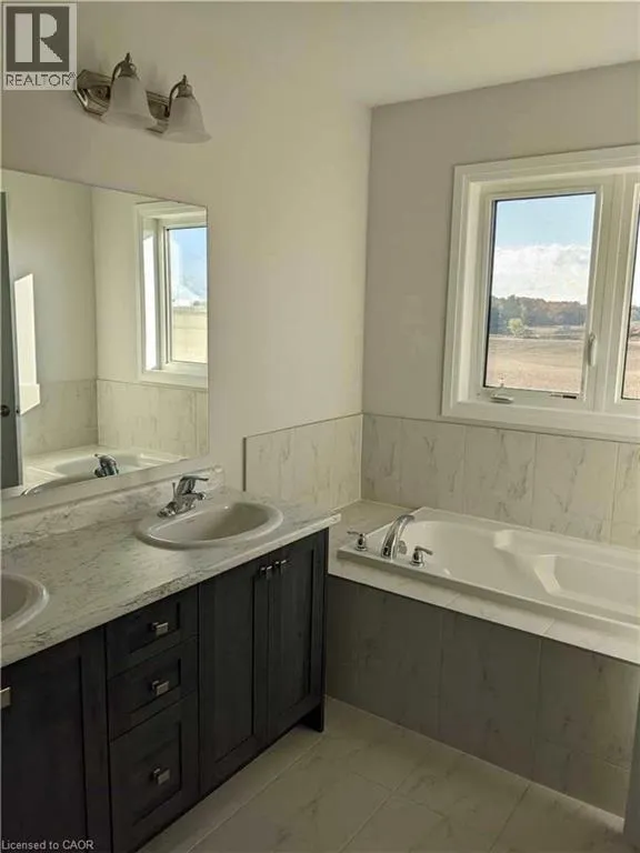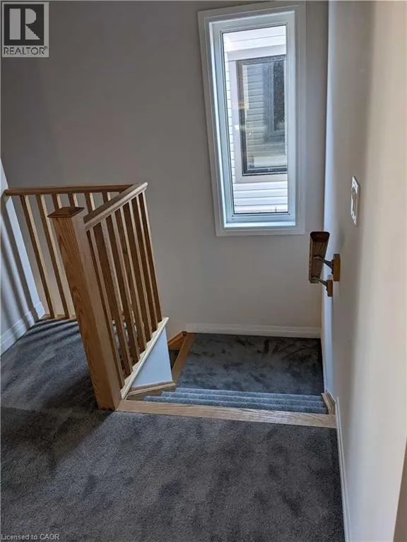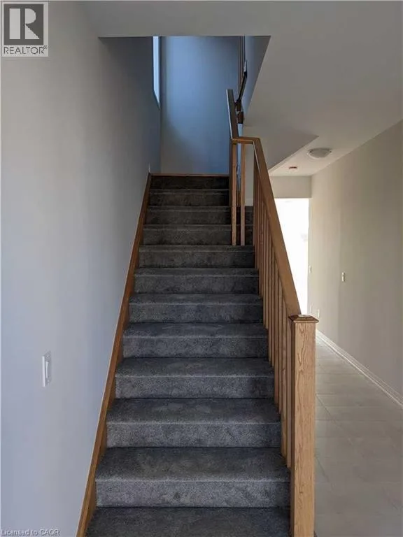 Welcome to this newer, four-year-old two-storey end-unit townhome located in Mount Hope. Enjoy added privacy with no rear neighbours and the benefits of an end unit. The main floor features a bright, modern kitchen with white cabinetry, quartz countertops, and stainless steel appliances, flowing into a spacious living room with hardwood flooring. Upstairs offers four generous bedrooms and three bathrooms, providing plenty of space for family living. The unfinished basement provides ample storage. February 20th possession available. Tenant to pay all utilities. Tenant responsible for lawn maintenance and snow removal. (id:27476)