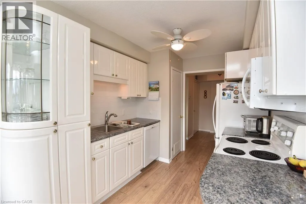 Glancaster Road, onto Twenty Road West, left on Silverbirch Blvd, turn right at the main entrance where you see the Country Club. Take ring road to back of complex to the 2 low rise apartment buildings. 500 on right. Prime top floor end unit in lovely low rise building. Enjoy sunrise and sunsets from your balcony surrounded by mature trees. Adult lifestyle community in Villages of Glancaster provides easycare living with lots of activities at the Country Club. Enjoy the indoor saltwater pool, organized social activities or crafts, cards, a gym, outdoor pickleball courts, tennis, putting green, shuffleboard, and more. Lots to keep you as busy and active as you would like to be. A great way to downsize. (id:27476)