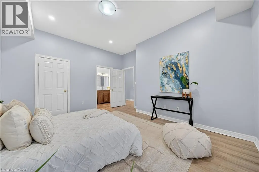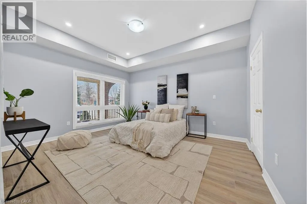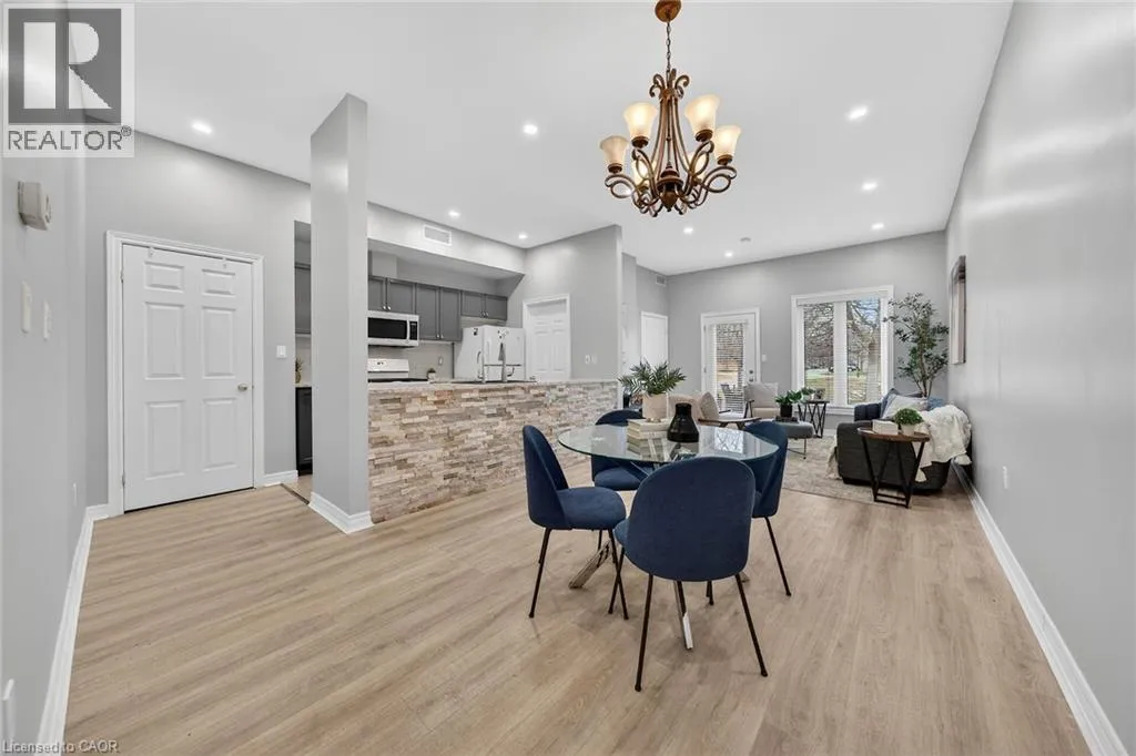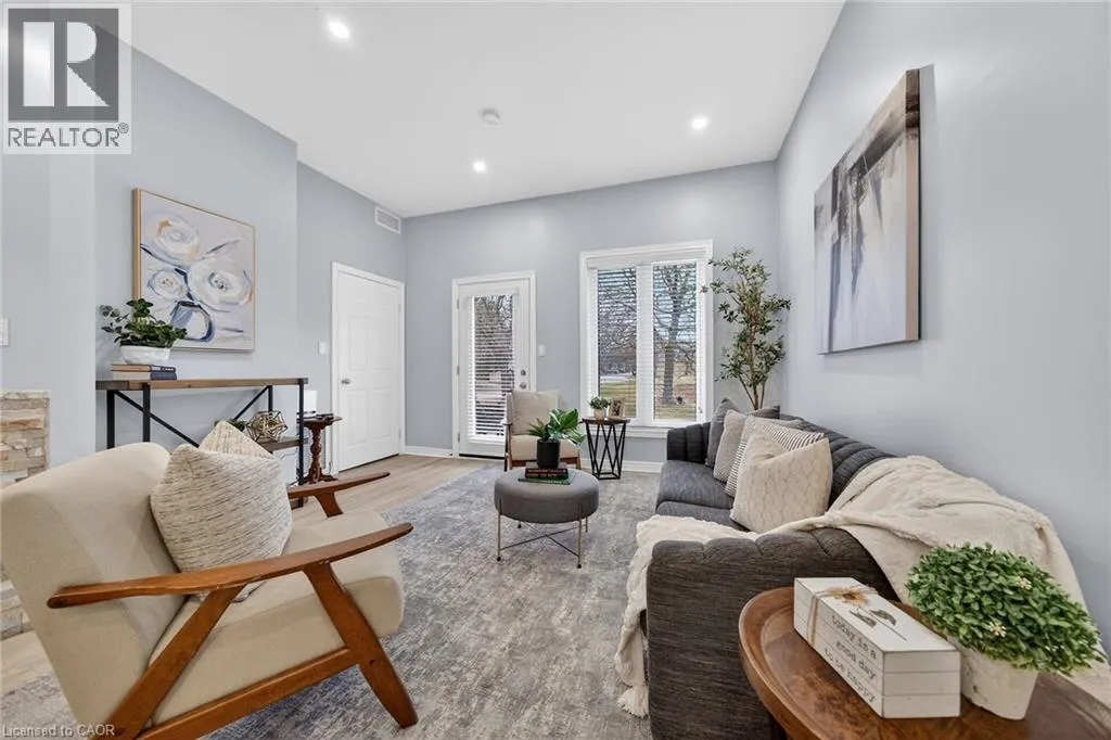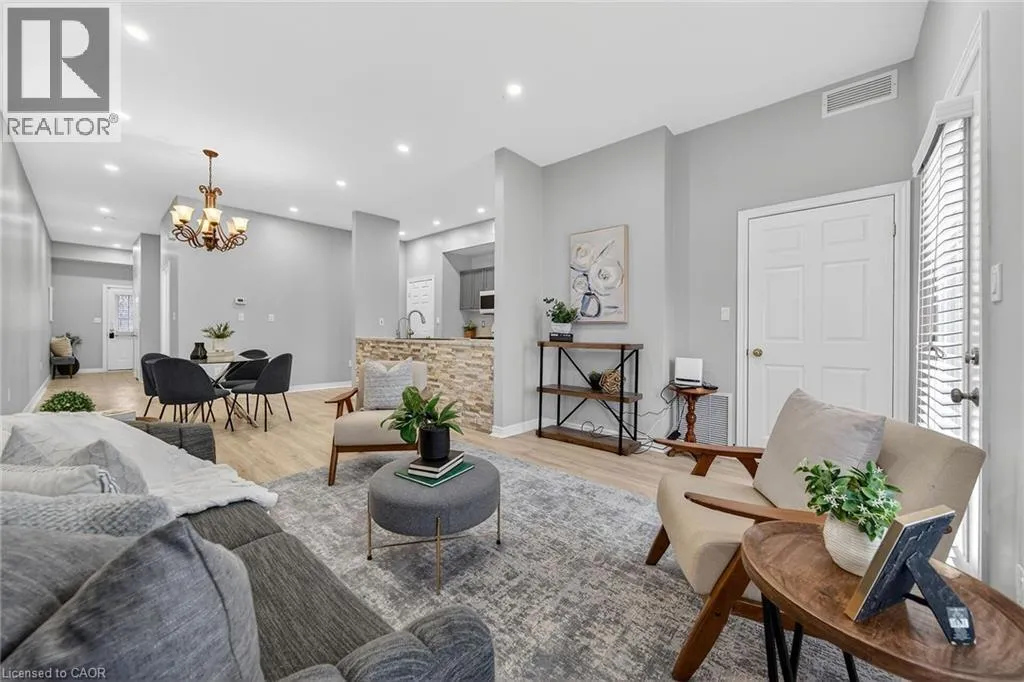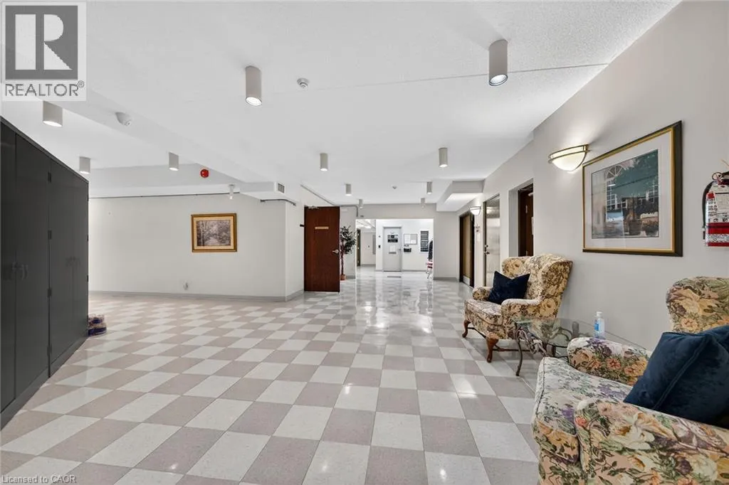 Upper James to Twenty Road go west and turn right on Natalia Recently renovated and move-in ready! This stunning Twenty Place condominium features a complete modern transformation, including fresh paint and upgraded light-bleached laminate flooring throughout. The kitchen shines with contemporary grey cabinetry, updated counters, and a stylish backsplash, while the main ensuite boasts a premium full-glass shower, new tiling, and designer lighting. With 23 added pot lights, the space is bright and airy, leading out to a peaceful rear sitting area overlooking a scenic pond. Residents enjoy a reserved parking spot and easy access to the vibrant Community Centre with indoor pool and hot tub, offering daily activities like pickleball, tennis, and billiards. A perfect retreat for downsizers! (id:27476)