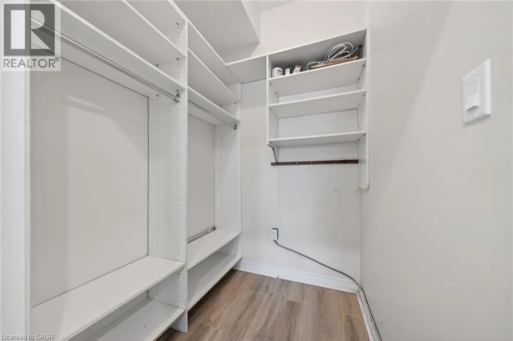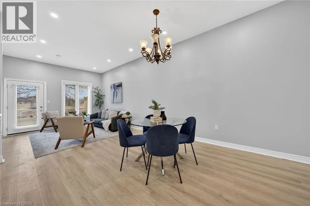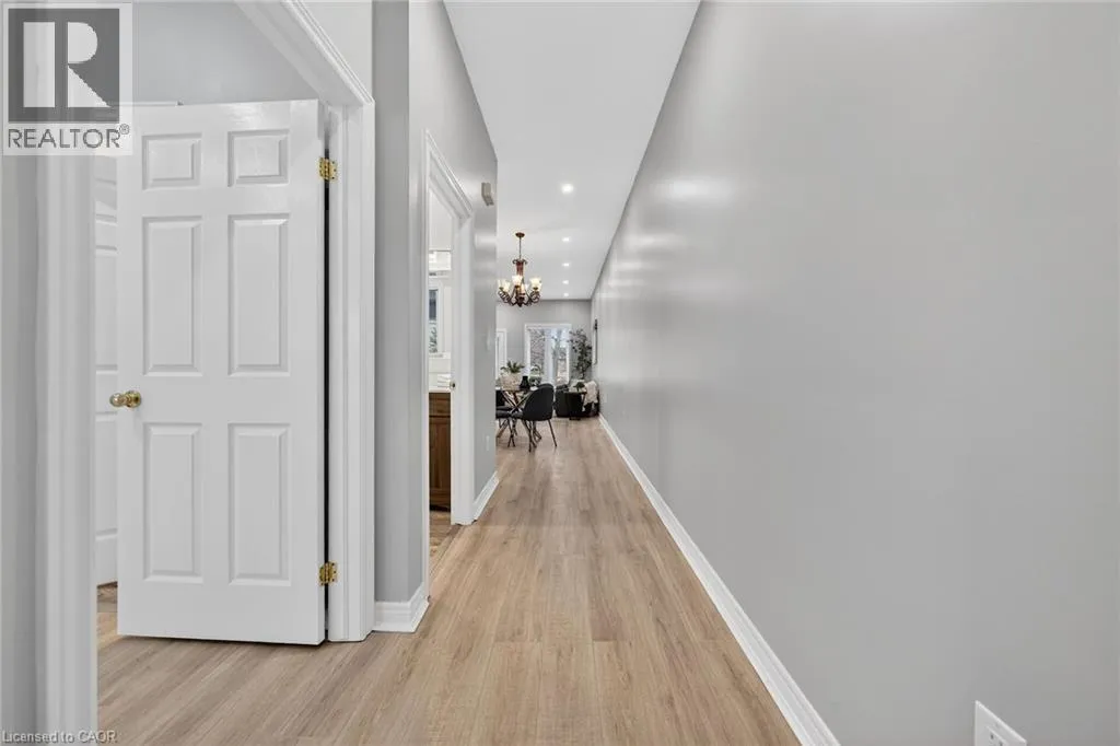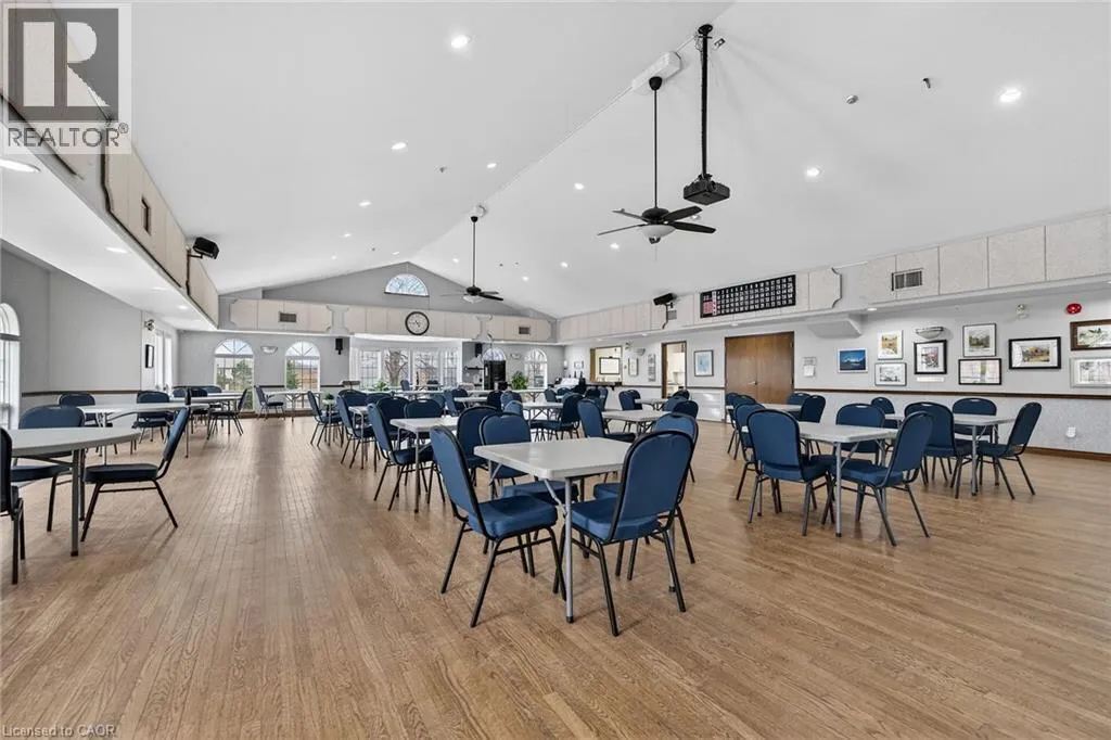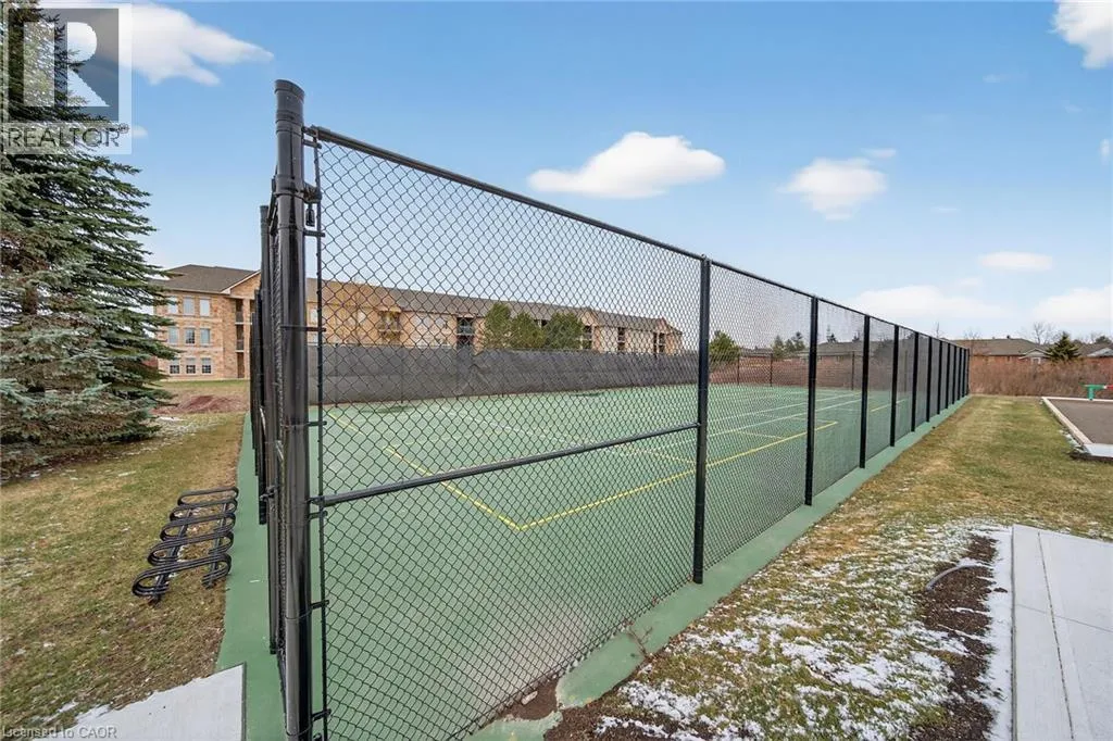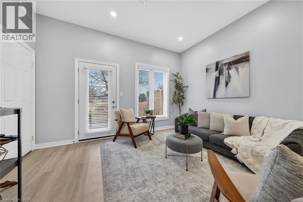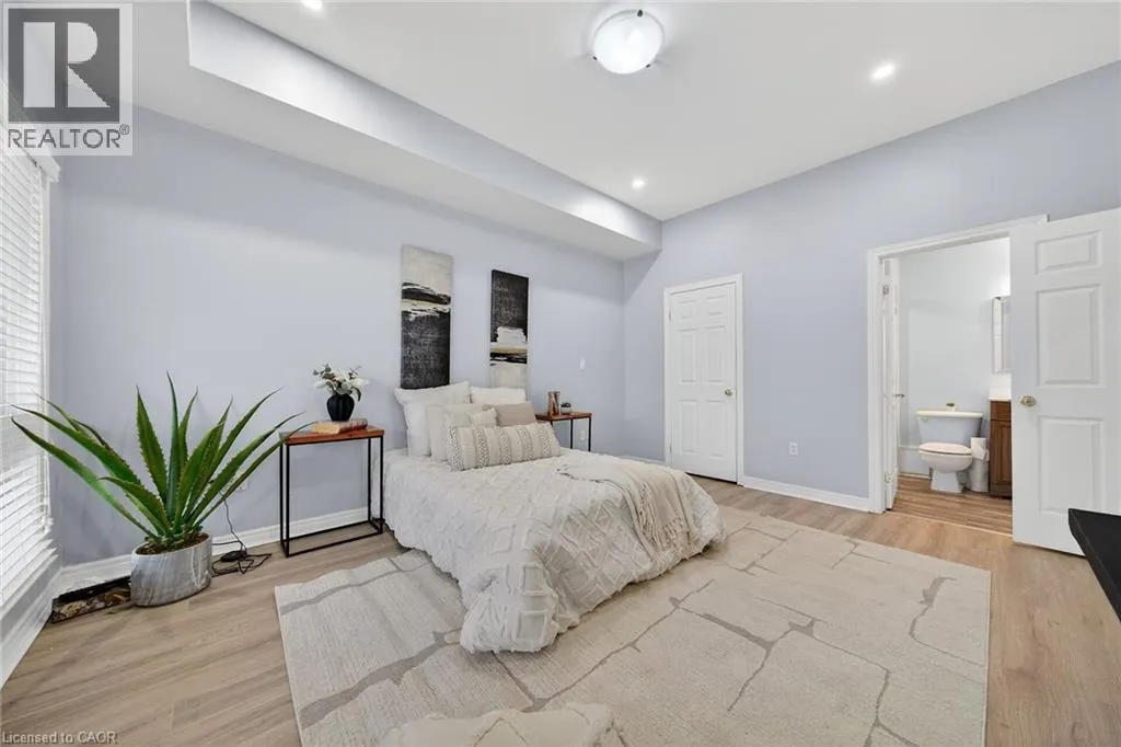 Upper James to Twenty Road go west and turn right on Natalia Recently renovated and move-in ready! This stunning Twenty Place condominium features a complete modern transformation, including fresh paint and upgraded light-bleached laminate flooring throughout. The kitchen shines with contemporary grey cabinetry, updated counters, and a stylish backsplash, while the main ensuite boasts a premium full-glass shower, new tiling, and designer lighting. With 23 added pot lights, the space is bright and airy, leading out to a peaceful rear sitting area overlooking a scenic pond. Residents enjoy a reserved parking spot and easy access to the vibrant Community Centre with indoor pool and hot tub, offering daily activities like pickleball, tennis, and billiards. A perfect retreat for downsizers! (id:27476)