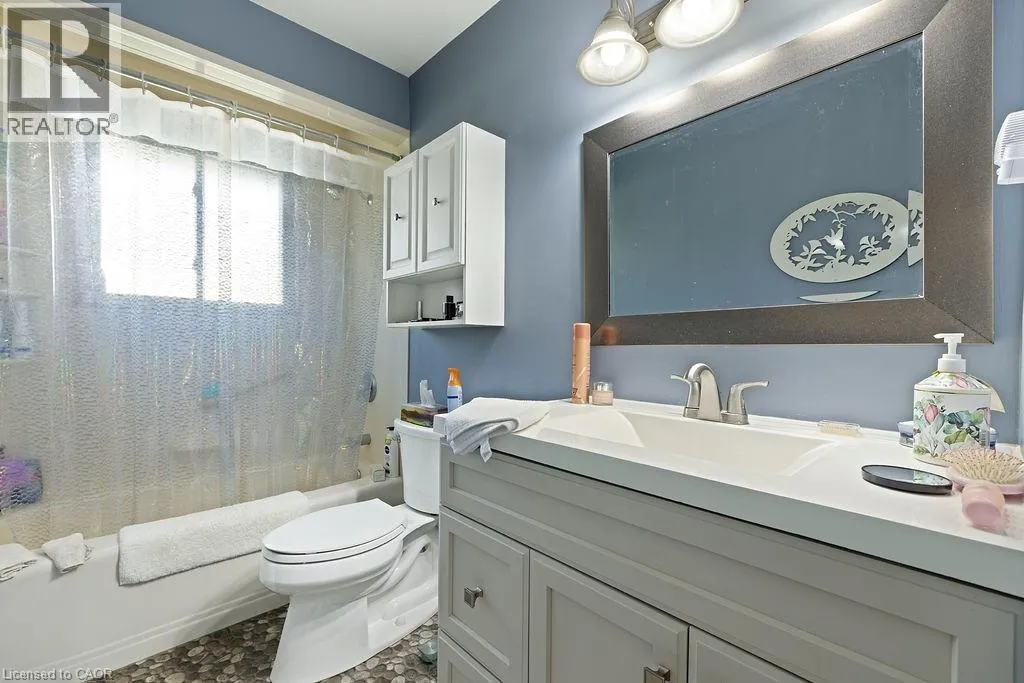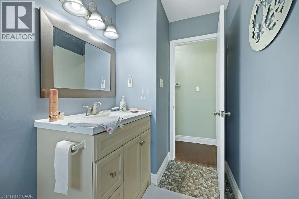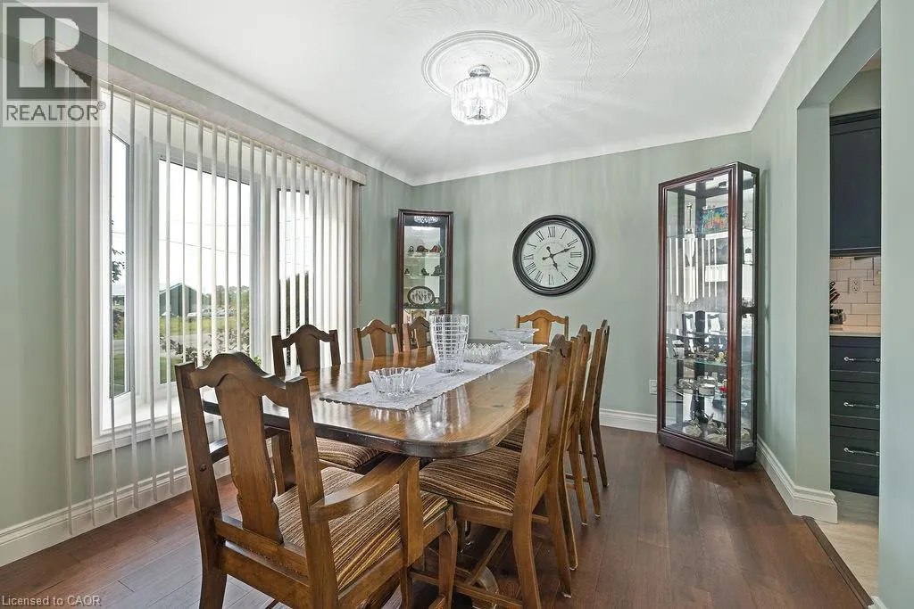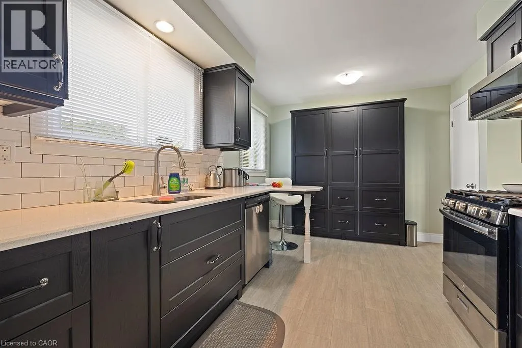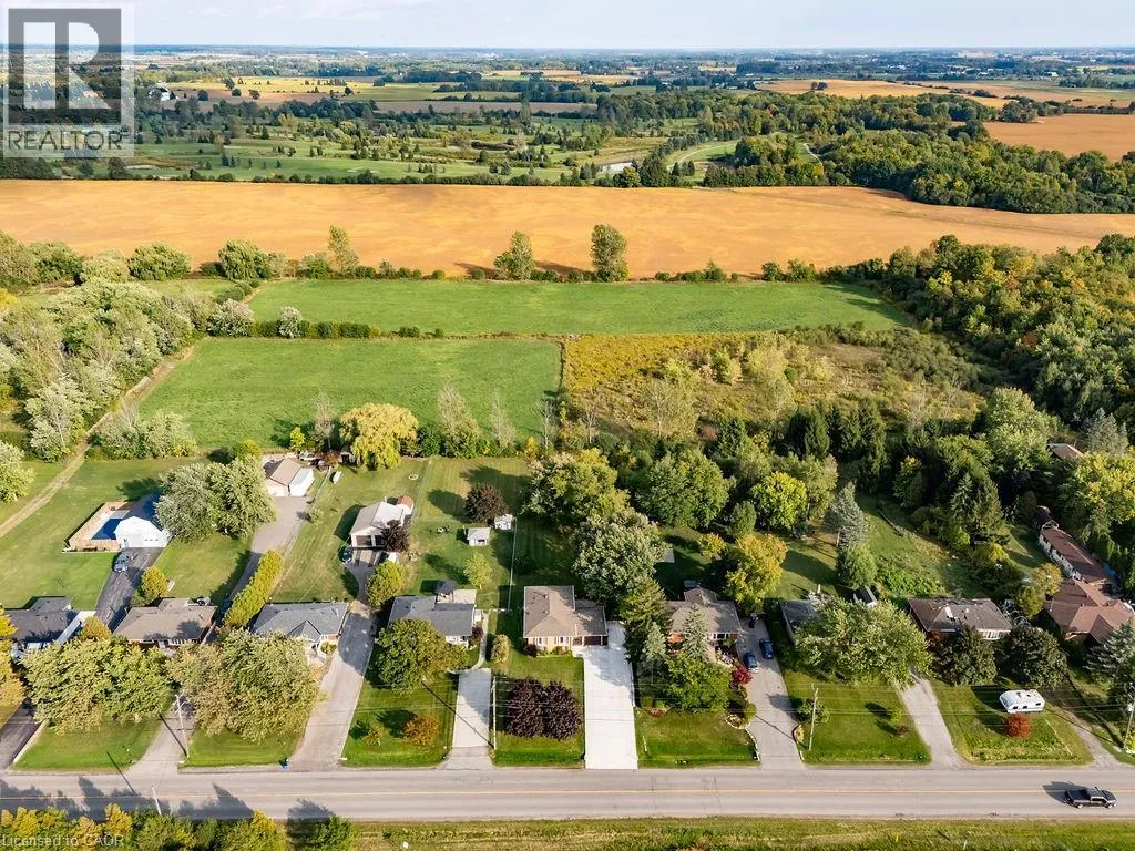 Nestled in the peaceful rural community of Mount Hope, this beautifully updated raised ranch offers the perfect balance of country charm and modern convenience. Surrounded by rolling farmland and wide-open skies, the property provides privacy and space while being just minutes from Ancaster, Binbrook, Hamilton, and easy highway access. Local parks, schools, and the Canadian Warplane Heritage Museum add to the unique character of the area, while Hamilton International Airport ensures connectivity. Approximately half an acre lot with natural gas (no propane) and around 100k in updates. Step inside to discover a thoughtfully renovated interior, blending style and comfort. The upper level features a stunning kitchen renovation (2021) with custom cabinetry, quartz countertops, stainless steel appliances, and durable vinyl flooring. Hardwood floors (2022) flow seamlessly through the main level, while the bathroom has been refreshed with a modern vanity and updated flooring. All closet, entry, and garage doors have been replaced, elevating the homeâs curb appeal and function. Additional highlights include an 8 car concrete driveway and retaining wall (2023, approx. $50k), a newer AC (2023), and an owned water softener. The finished lower level offers a cozy retreat with a natural gas stove, laundry with a new washer (2024) and dryer (2025), and the potential for a wet bar. Move-in ready and meticulously maintained, this home is ideal for those seeking space, tranquility, and a welcoming community â all with modern updates already in place. (id:27476)