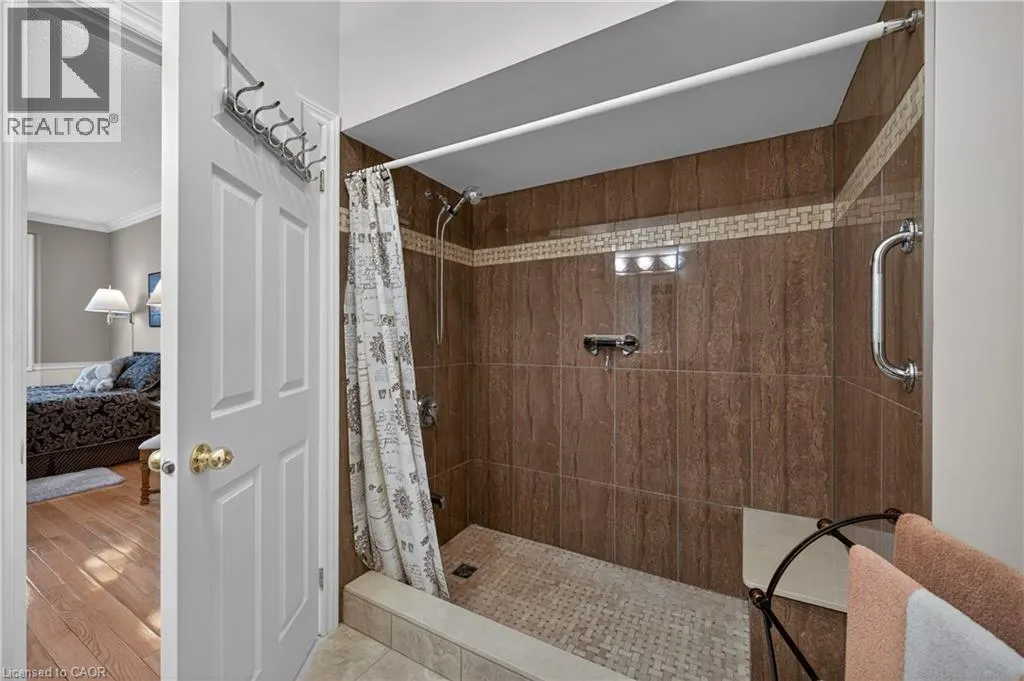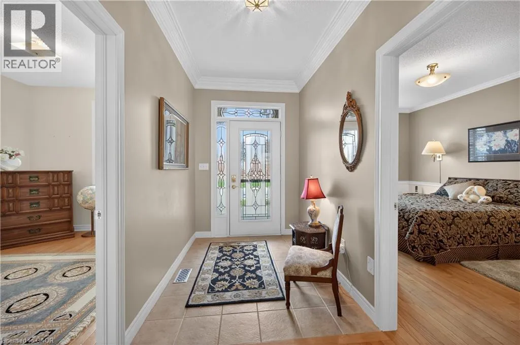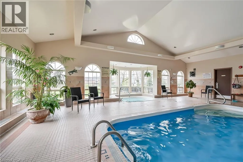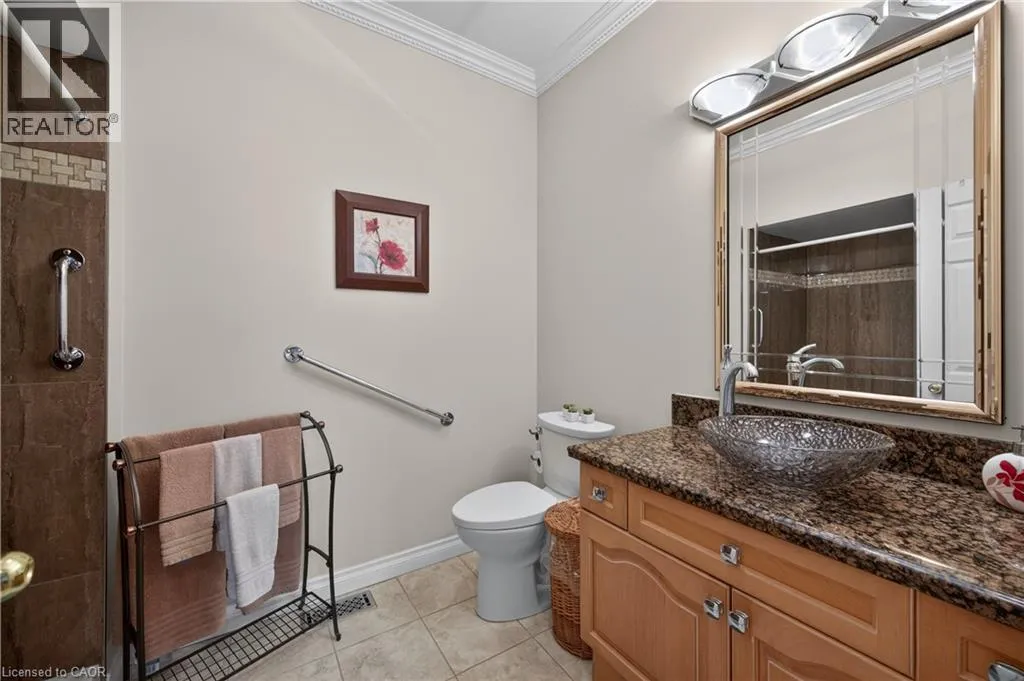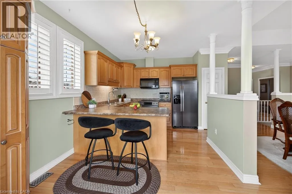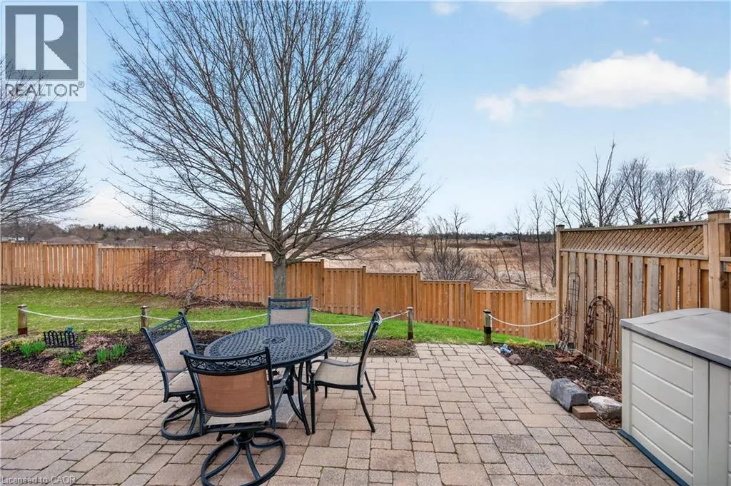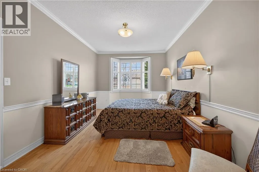 Highway 6 (Upper James) west on Twenty Road, Right at first entrance to Twenty place Rarely offered in the highly desirable Twenty Place; an adult lifestyle community, this fully detached home provides the perfect blend of comfort, space, and community living. Featuring a double car garage with inside entry, this well-maintained home is beautifully finished with an inviting open-concept main floor with a large living room with fireplace, a dining room, and a spacious eat-in kitchen. Enhanced by hardwood flooring, California shutters, and crown moulding throughout the main living areas. The functional layout includes 2 bedrooms, 2.5 bathrooms, and a fully finished lower level with abundant storage space. Step outside to enjoy a generous yard backing onto green space, offering a peaceful and private backdrop. Residents of Twenty Place enjoy access to exceptional amenities, including a pool, hot tub, sauna, exercise room, library, party room with kitchen, shuffleboard courts, and tennis/pickleball court. A wonderful opportunity to enjoy relaxed, low-maintenance living in a vibrant and well-established community. (id:27476)