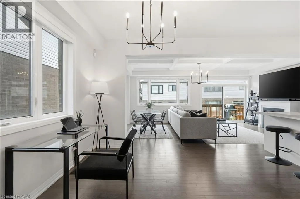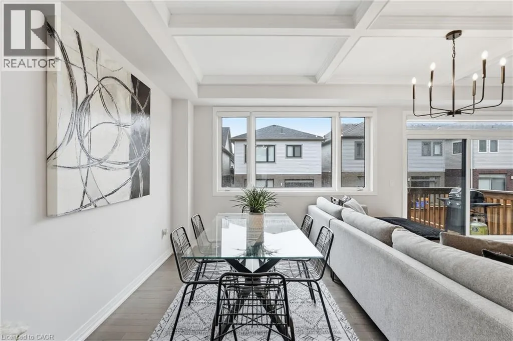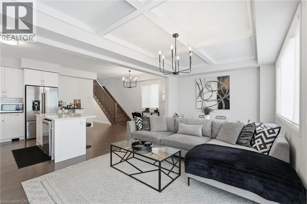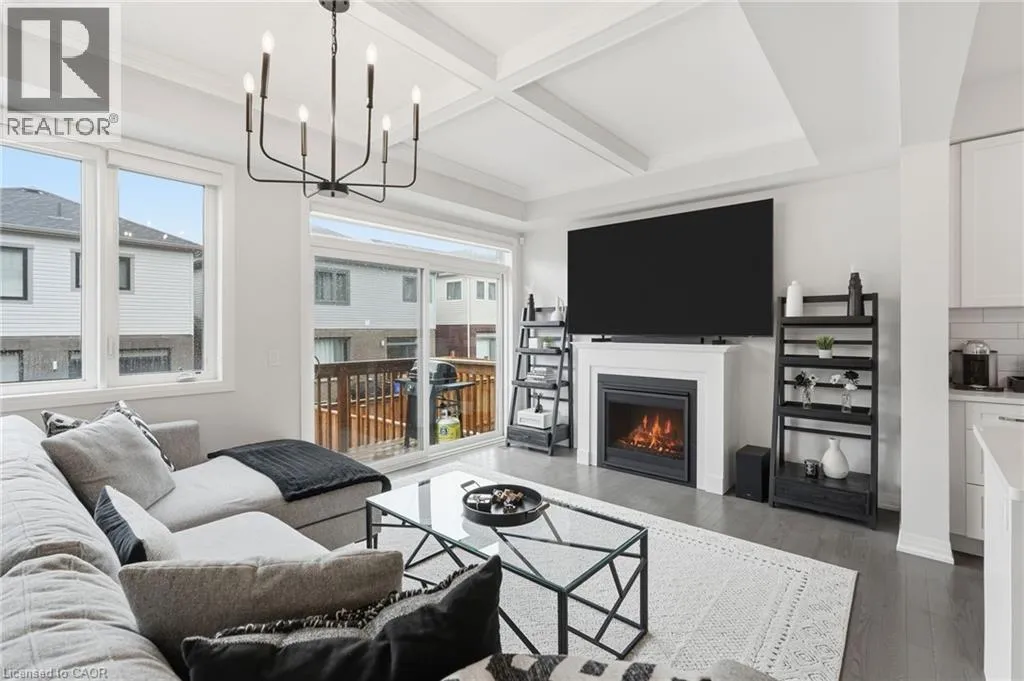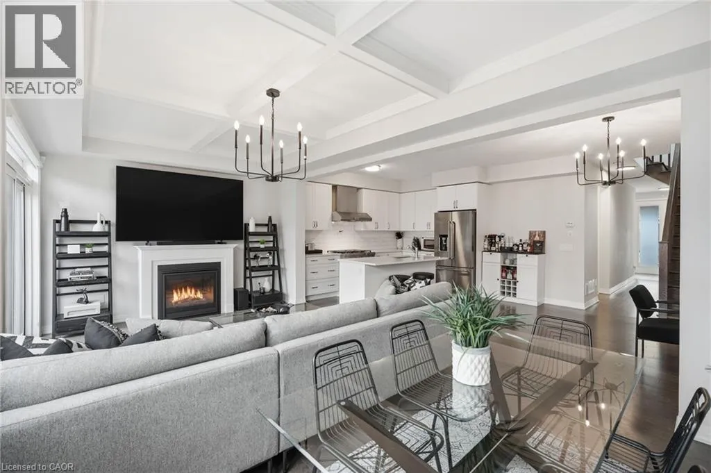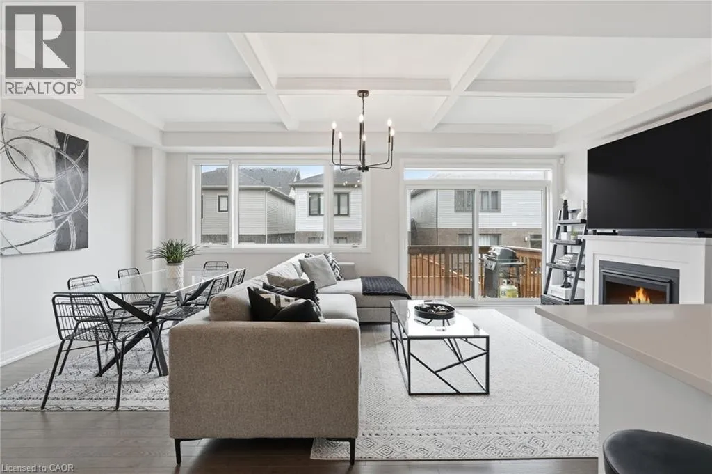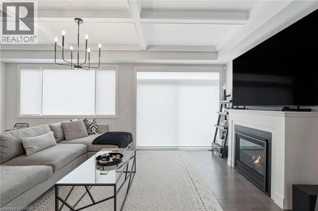 AIRPORT RD TO PROVIDENT WAY TO SPITFIRE DR Welcome to this exceptional 2023-built residence, where refined design meets modern sophistication. This stunning 4-bedroom, 3-bathroom home offers an abundance of natural light through expansive windows, creating a bright and airy atmosphere throughout. The main living space is thoughtfully designed for both comfort and elegance, featuring striking coffered ceilings and a beautiful fireplace that serves as a captivating focal point. Every detail has been carefully curated, from the high-end finishes to the designer light fixtures, delivering a truly elevated living experience. The primary suite is a private retreat, complete with a spacious walk-in closet and a spa-inspired ensuite. Generously sized additional bedrooms provide flexibility for family, guests, or a home office. A bedroom-level laundry room adds everyday convenience and practical functionality. Step outside to a fully fenced, private backyard oasis featuring a cement padâperfect for outdoor entertaining or quiet relaxation. An attached single-car garage and an unfinished basement offer both convenience and endless potential for customization. Impeccably finished and beautifully presented, this turnkey home embodies modern luxury and effortless living. (id:27476)