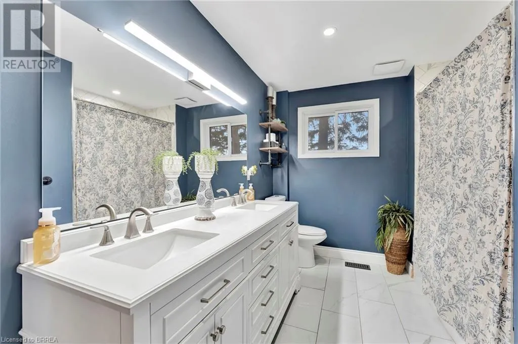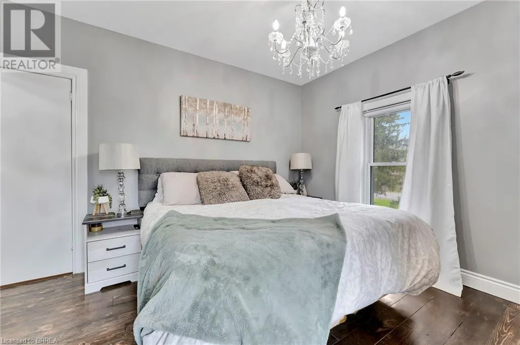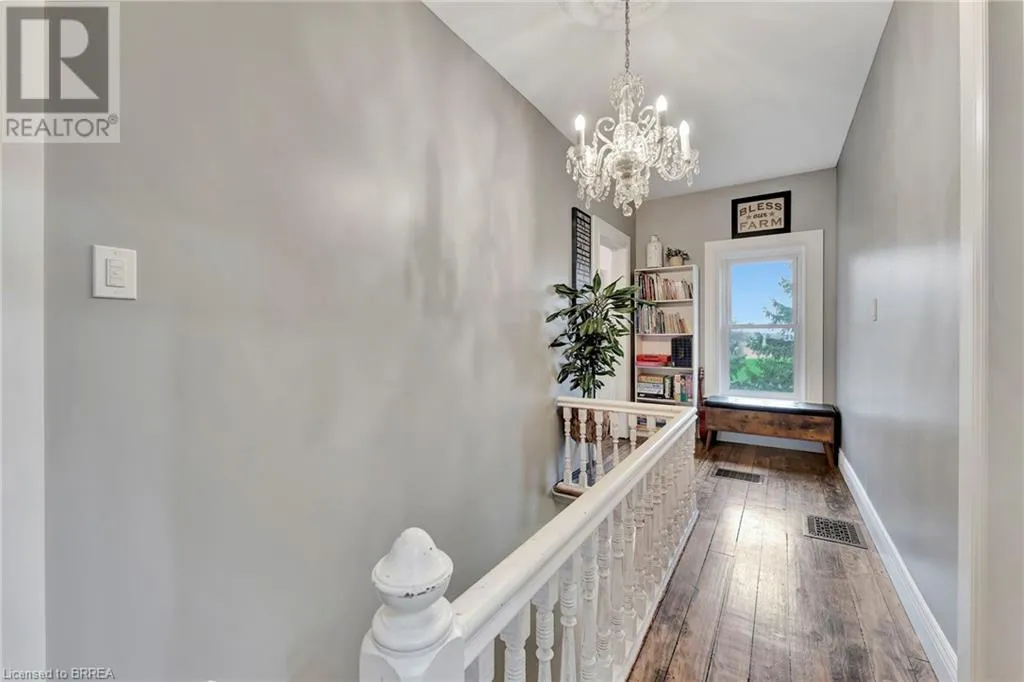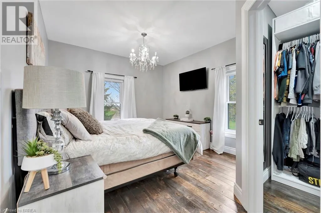 Cockshutt Rd to Sour Springs Rd. to #149, Property is on South Side of Sour Springs Escape to the country at 149 Sour Springs Road in beautiful Brant County! Tucked just minutes from Brantford, this stunning rural property spans approximately 25 acres, more or less, with roughly 20 acres of workable land â perfect for hobby farming, gardening, or simply enjoying wide-open space. This solid brick 4-bedroom, 2-bath home has been extensively and thoughtfully updated throughout. The custom kitchen (2021) is a showstopper, featuring a Princess White granite waterfall island, pot lights, and an open-concept flow to the living room thanks to a professionally installed engineered beam. The main floor also includes a spacious bedroom, full bathroom, walk-in pantry (2024), and laundry. Upstairs, the beautifully renovated primary suite boasts a new walk-in closet, electric fireplace, and a brand-new 2-piece ensuite (2024). Move-in ready with all the big-ticket items done â including a new roof (2021), furnace (2020), central air (2022), updated windows and doors (2020), new stamped concrete patio and side deck (2024), Nest smart thermostat, and more. Dual heating sources for this home offer flexibility and peace of mind. Outdoors, the opportunities are endless: a 40' x 80' barn with a 28' x 13' finished office, a steel grain silo repurposed for storage, two upgraded driveways, and plenty of parking. Water supply includes both a drilled and dug well, and the septic was pumped and inspected in 2023. Whether you dream of a quiet family homestead, a place to grow your own food, or land to run a business from home, this exceptional property offers space, style, and freedom to make it your own. (id:27476)