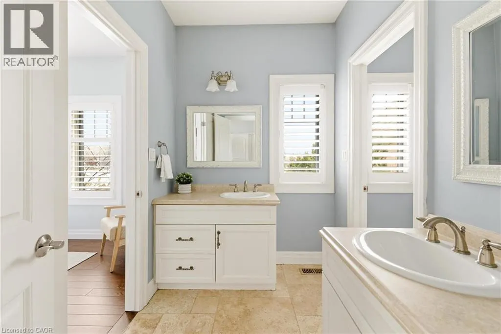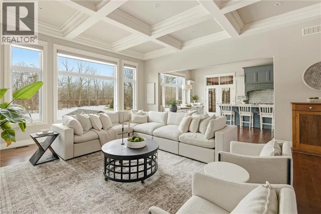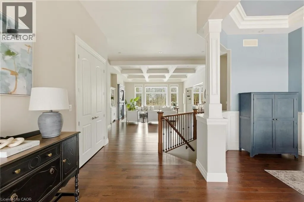 Welcome to 46 Woodside Drive in the prestigious community of Mount Pleasant, where craftsmanship, space and lifestyle come together on an expansive 0.75 acre property. Offering 5,218 square feet of beautifully finished living space including a fully finished walkout basement, this impressive home delivers the perfect balance of luxury, comfort and thoughtful design. From the moment you arrive, the homeâs striking curb appeal makes a lasting impression with its elegant stone exterior, architectural detailing, landscaped grounds, full lawn irrigation system and spacious driveway leading to the double car garage. Inside, the home offers an elegant yet inviting atmosphere designed for both everyday living and entertaining. The main living area is highlighted by a stunning coffered ceiling that adds warmth and character while creating an impressive gathering space for family and guests. Large windows throughout invite natural light and showcase views of the surrounding nature. With 3 bedrooms on the main level and 2 additional bedrooms in the fully finished walkout basement, the layout provides exceptional flexibility for families, guests or multi generational living. A total of 5 bathrooms ensures comfort and convenience throughout. The primary suite offers a private retreat featuring a spa inspired ensuite complete with heated floors. A bright 3 season sunroom provides the perfect place to enjoy morning coffee or unwind in the evening while overlooking the beautifully maintained grounds. Outdoors, the backyard has been transformed into a professionally designed private oasis with over $200,000 invested to create a resort style setting ideal for relaxing or hosting gatherings. Located in the sought after community of Mount Pleasant, this property offers the rare combination of privacy, space and convenience close to nearby amenities. Opportunities like this are rare. 46 Woodside Drive is more than a home, it is a lifestyle defined by space, comfort and timeless design. (id:27476)