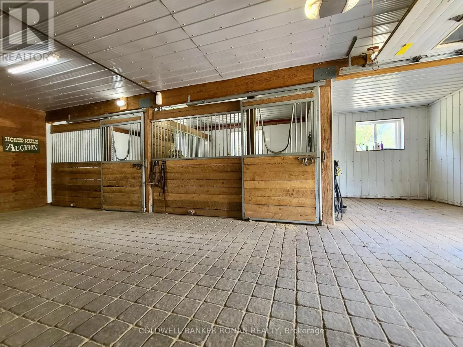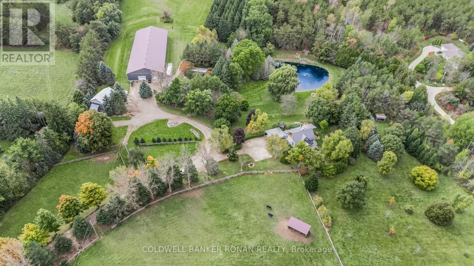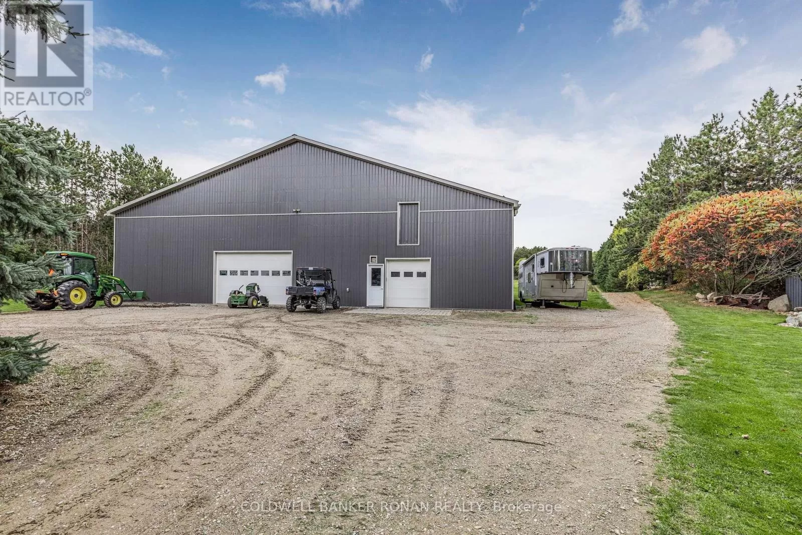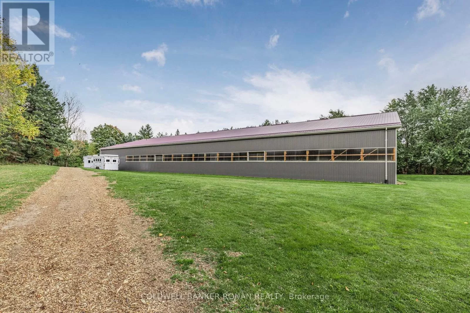 Highway 89 & 4th Line E Discover a blend of heritage and refined country living on this remarkable 44.89-acre estate, where timeless craftsmanship meets peaceful seclusion. Set at the end of a long, private driveway, this extraordinary property offers unmatched privacy, scenic beauty, and a lifestyle of elegance and purpose. At its heart is a stunning Ottawa Valley Log Home, handcrafted initially in the mid-1800s and thoughtfully relocated to its current site in 1976. The home has been beautifully updated while preserving its historic charm, creating a warm, inviting atmosphere that blends rustic character with modern comfort. Ideally suited for equestrian lovers, hobby farmers, or those dreaming of a wellness retreat, the property features three spacious paddocks and a 70' x 150' indoor riding arena with an adjacent heated workshop and three 12' x 12' soft-stall horse stalls providing everything needed for year-round training, events, or personalized care. A classic bank barn and large driveshed both add additional storage and flexibility. The grounds are equally captivating, with rolling trails, mature trees, and open meadows that invite exploration and serenity. A private trout pond adds to the picturesque setting, ideal for moments of reflection or scenic enjoyment from the home's vantage point. Whether your vision includes a tranquil retreat, sustainable farm life, or a luxurious escape from city living, this property delivers the perfect canvas. It's not just a home, it's a rare opportunity to own a piece of Canadian history in a setting that embodies privacy, beauty, and rural sophistication. (id:27476)